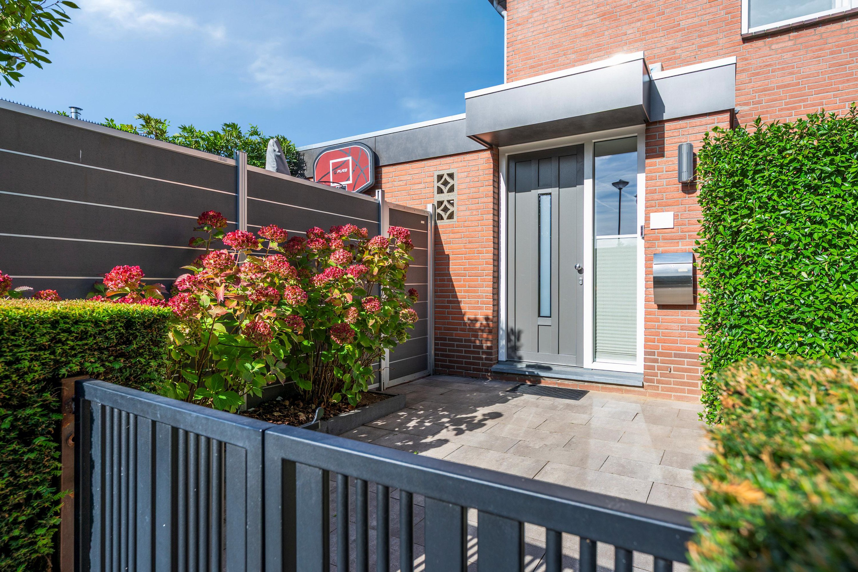 De woning is voorzien van kunststof kozijnen met HR ++ glas. Enkel de deur en het raam in de garage is van hout.