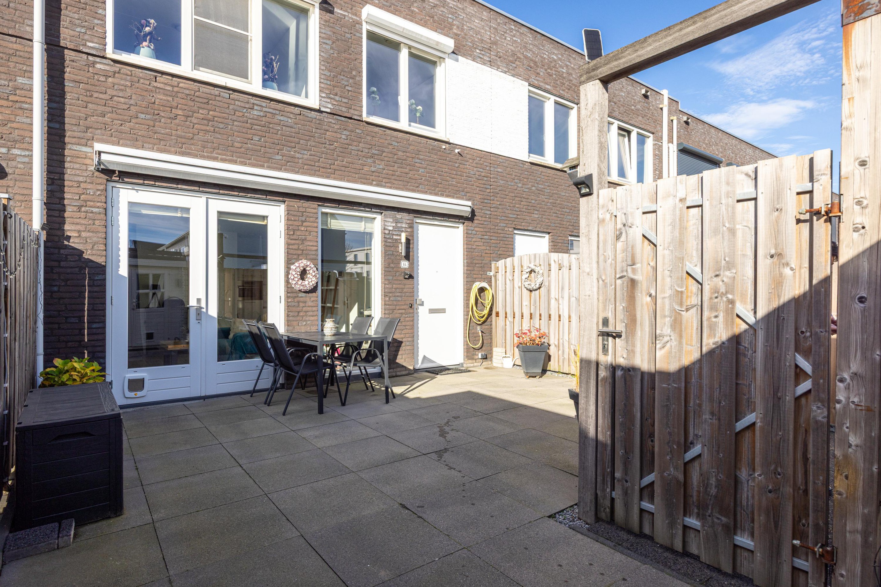 Door de gunstige ligging geniet je hier volop van de zon, terwijl het zonnescherm op warme dagen juist zorgt voor een aangename schaduwplek. Er is meer dan genoeg ruimte voor een eettafel of een comfortabele loungeset, waardoor dit de perfecte plek is om te ontspannen, te barbecueën of gezellig met familie en vrienden buiten te zitten.