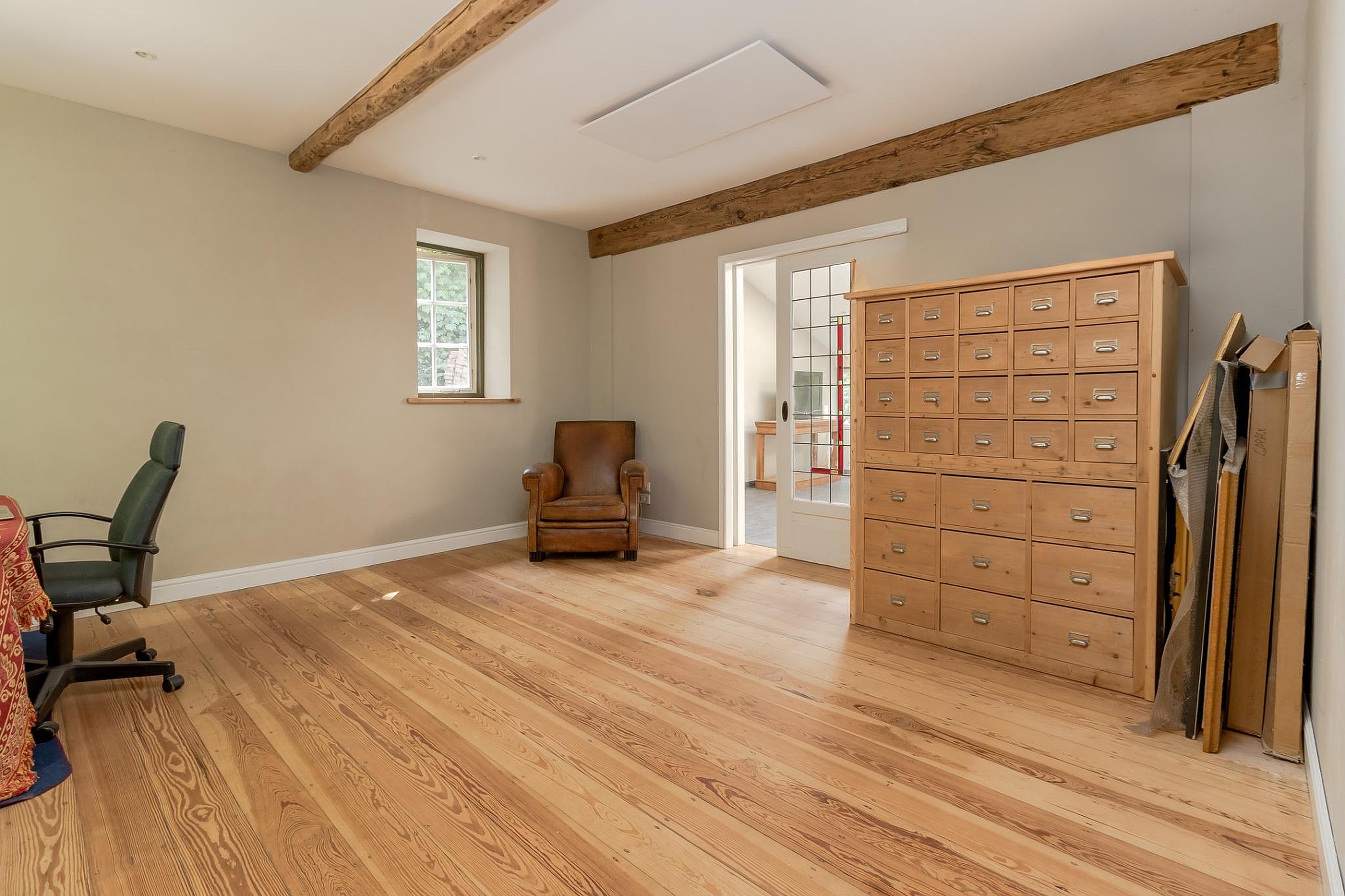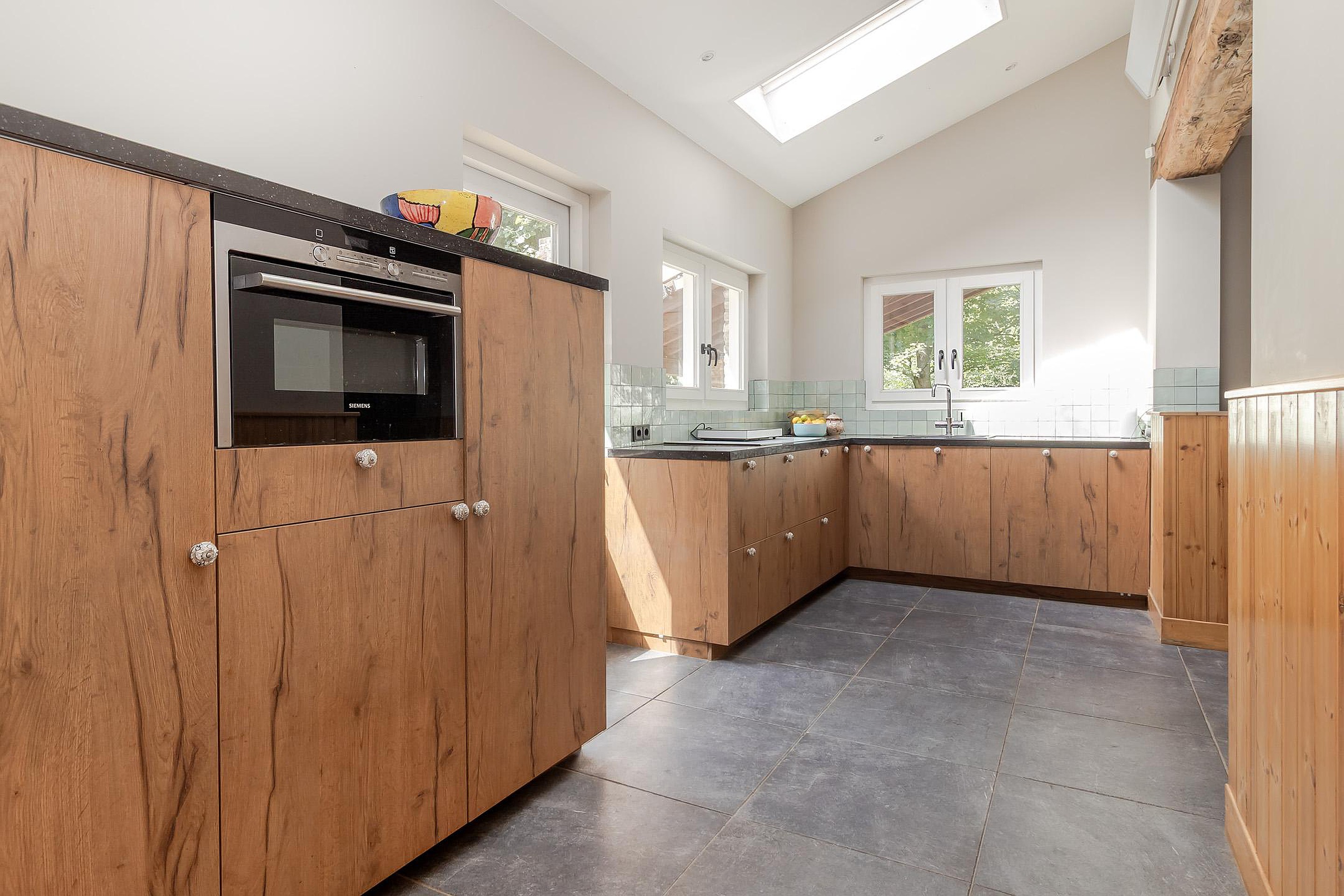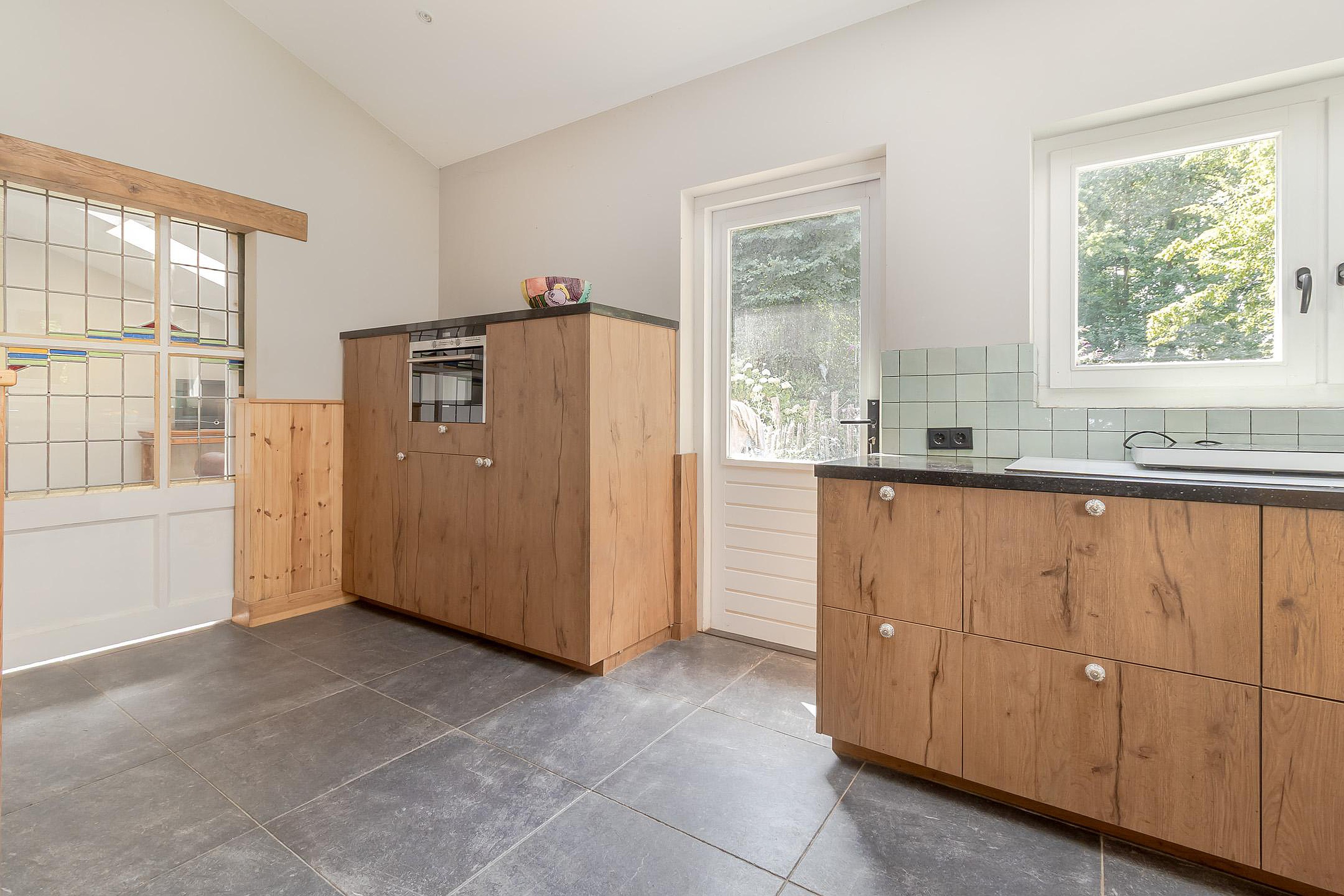 De bijkeuken beschikt over een extra keukenblok en aansluitingen voor witgoed en kan eveneens dienen als werkplaats of extra badkamer.