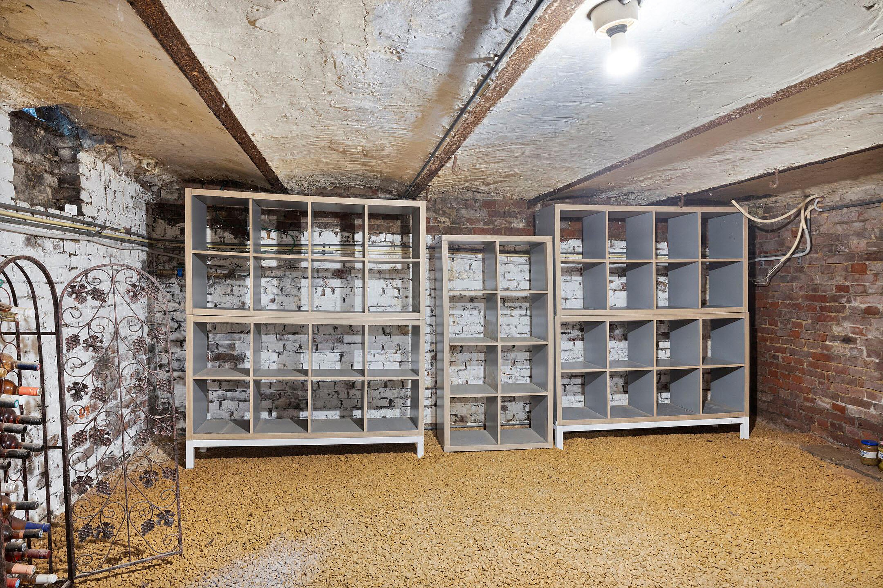 Vanuit de eetkamer toegang tot de kelder. De kelder heeft een nieuwe vloerafwerking (Ardense mergelsplit) en geïsoleerd gewelfd plafond, waardoor deze optimaal geschikt is als wijnkelder of opslagruimte.