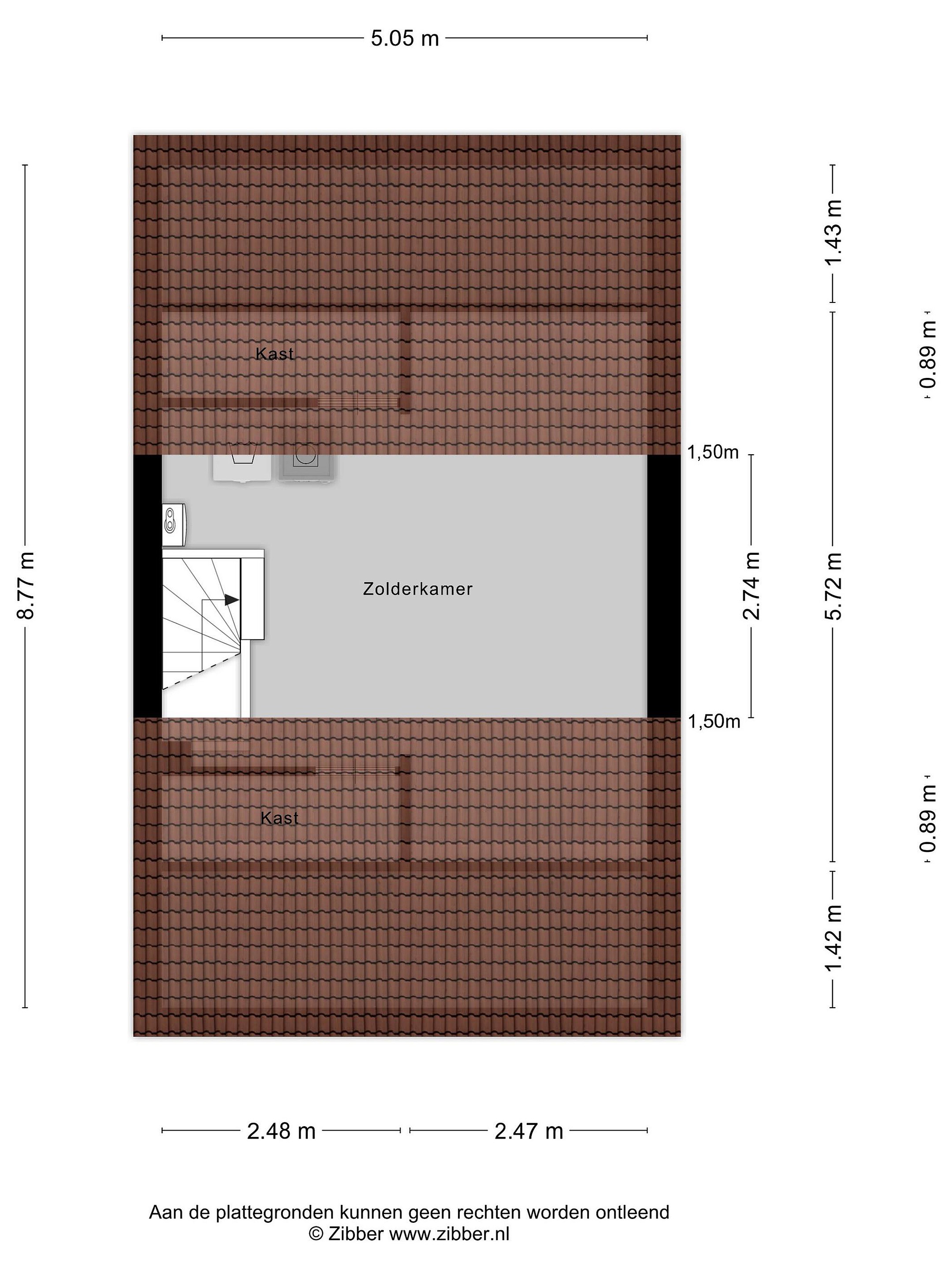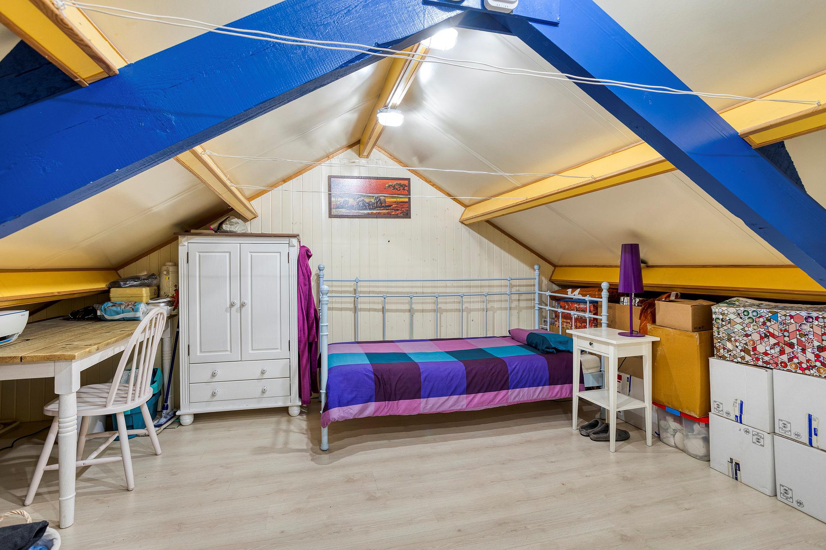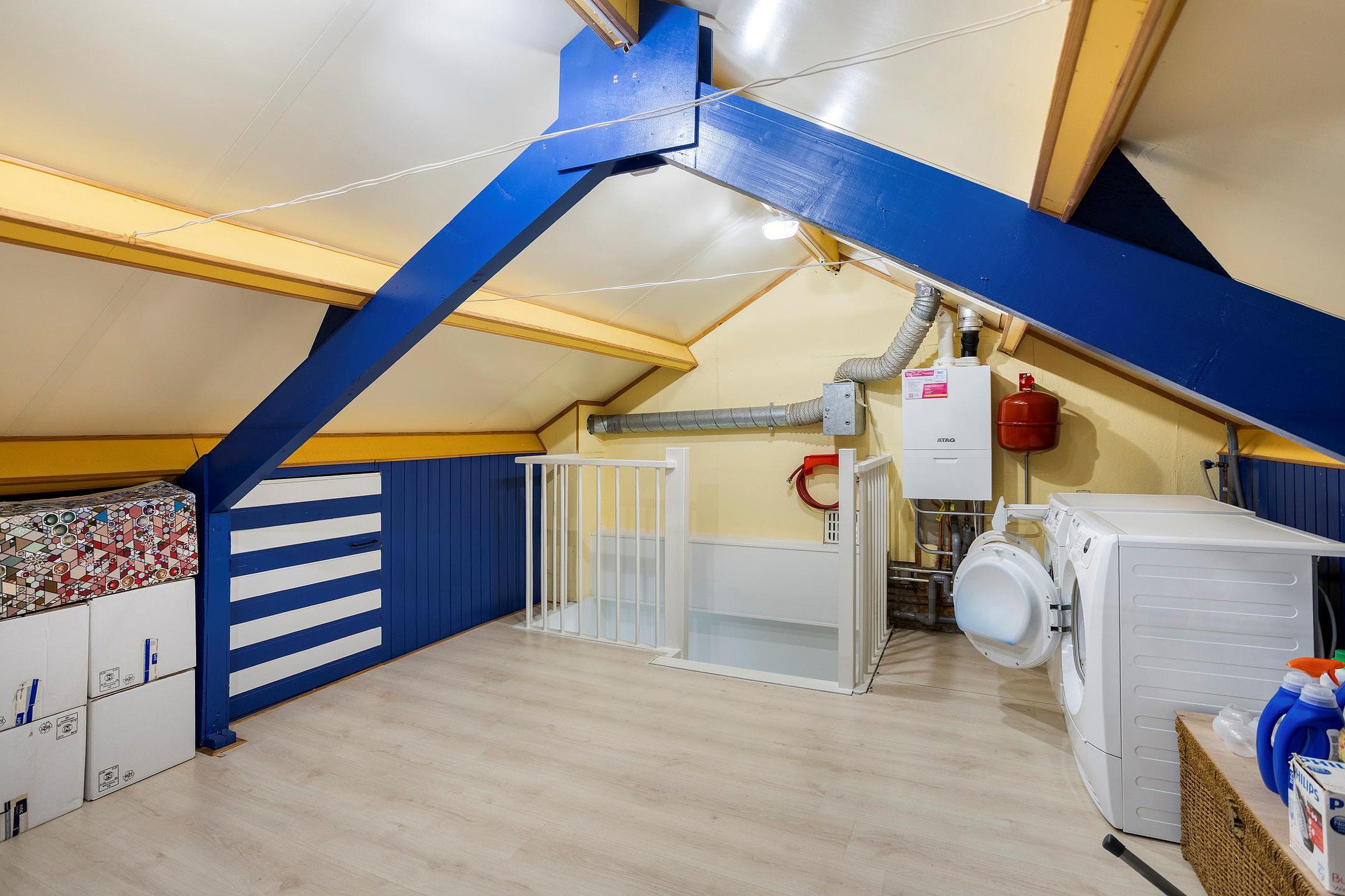 Via de vaste trap is de zolder bereikbaar, hier bevinden zich de aansluitingen voor het witgoed en de cv-ketel. Tevens is hier voldoende bergruimte beschikbaar.