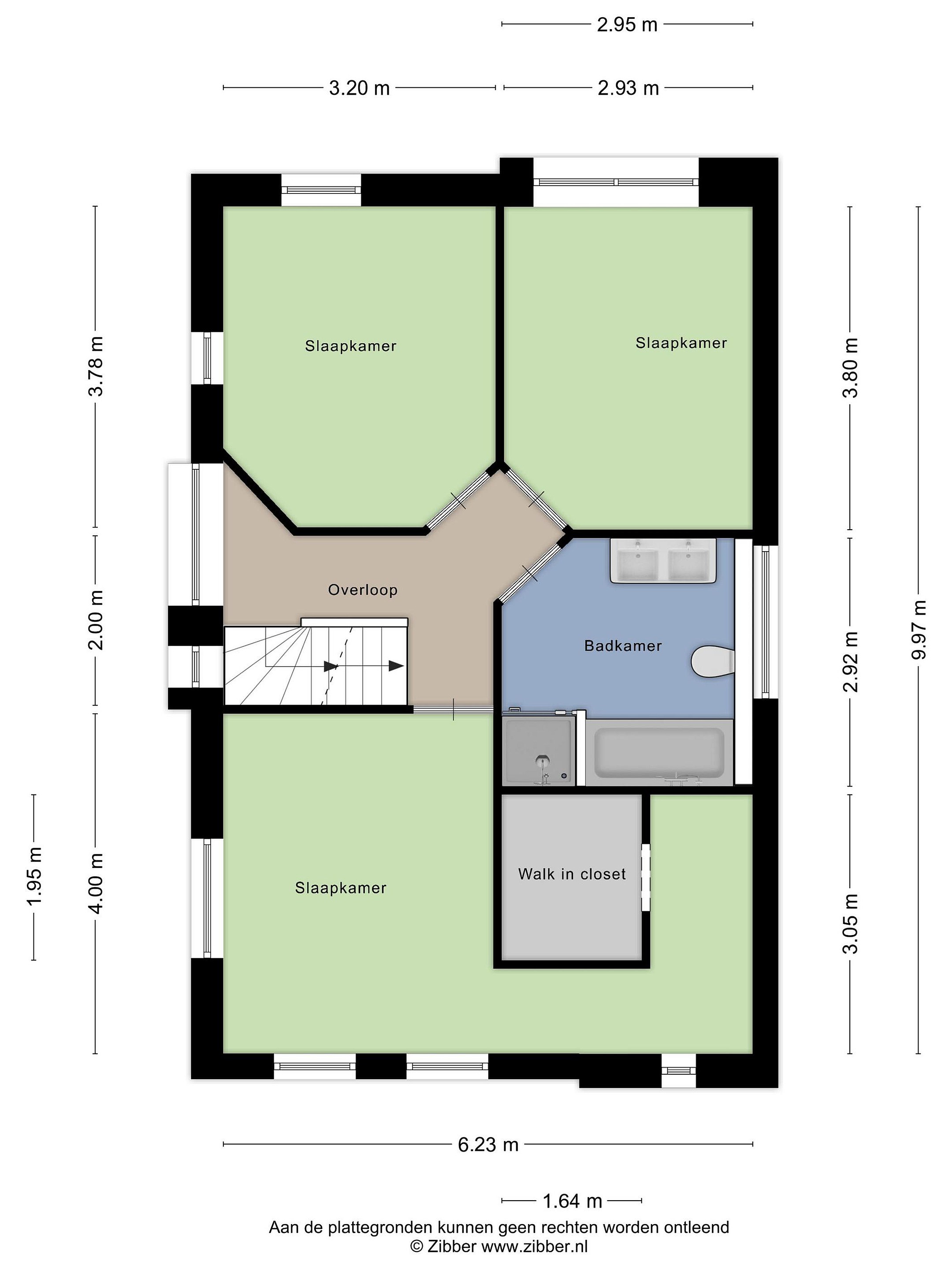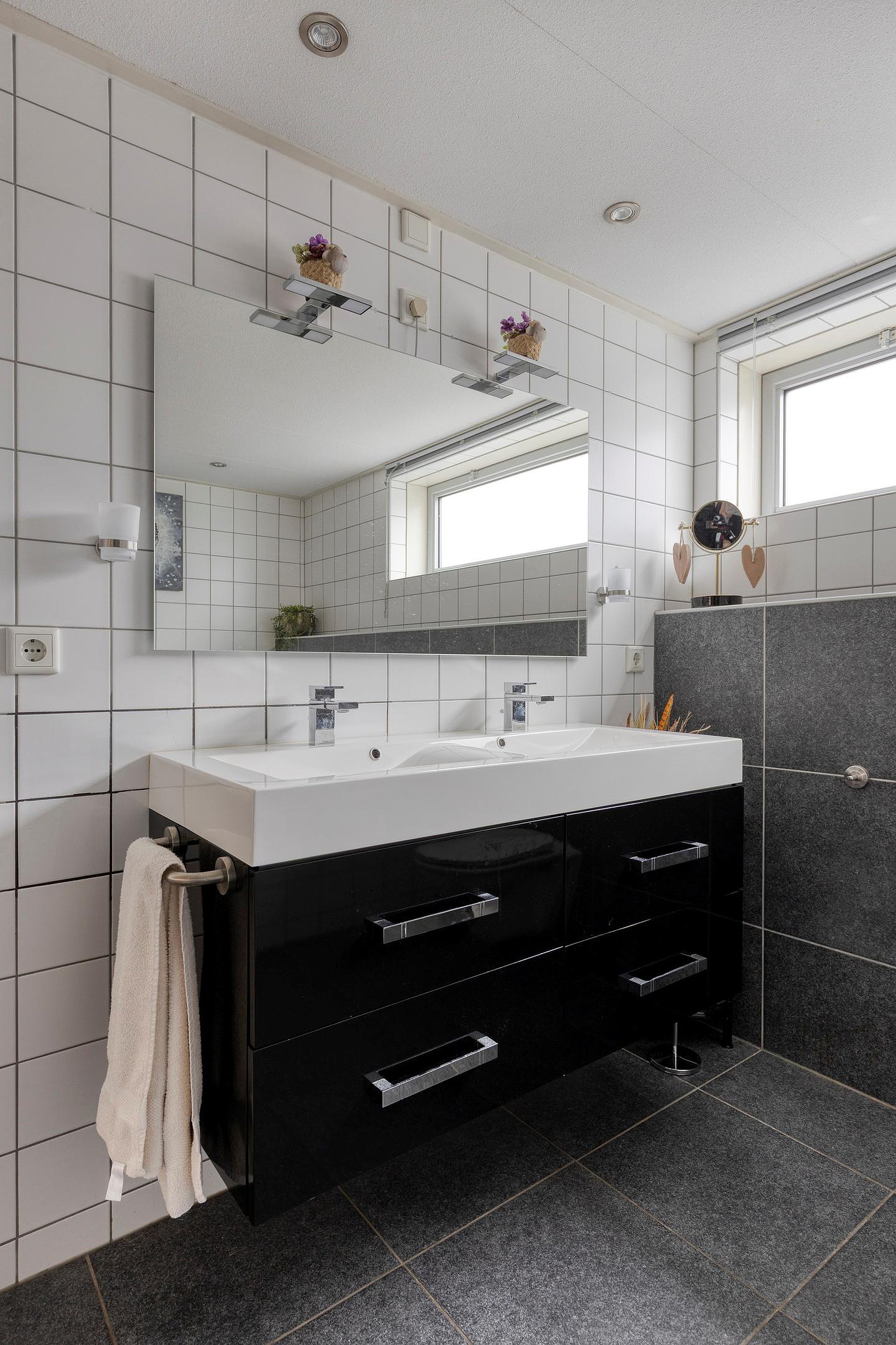 Hier bevinden zich drie ruime slaapkamers, waaronder één met een royale inloopkast. De centraal gelegen badkamer is compleet uitgevoerd met een ligbad, aparte douche, dubbele wastafel en een tweede toilet.