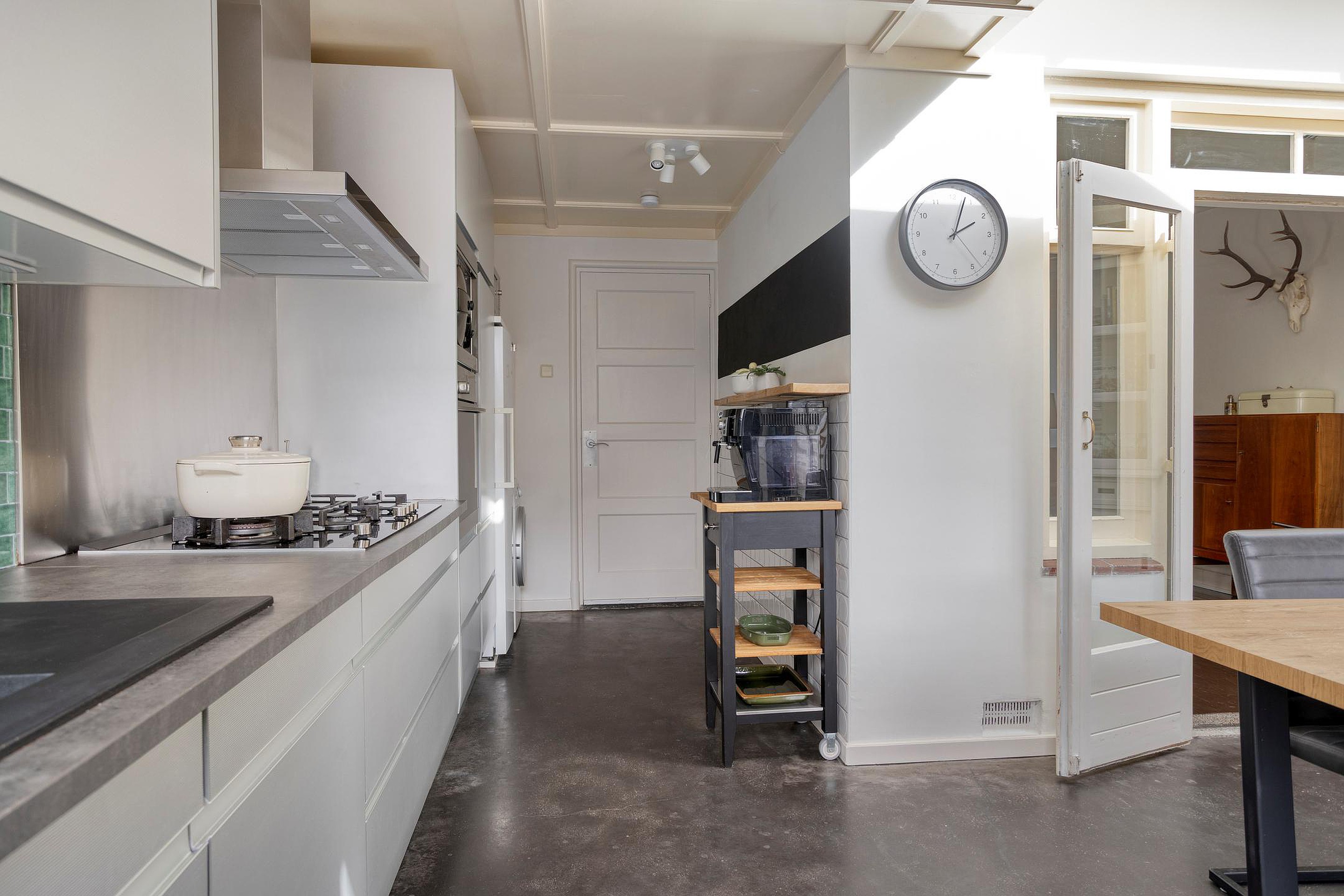 Begane grond De hal verwelkomt je met jaren '30 karakter; een prachtige authentieke granitovloer en trap vormen een stijlvolle entree. Vanuit de hal loop je rechtdoor naar de keuken, die deels in de aanbouw is gesitueerd en over de volledige breedte van de woning is gerealiseerd. Deze aanbouw uit 2004 vormt een prachtige uitbreiding van de leefruimte. Hier bevindt zich de keuken, die direct in verbinding staat met de woonkamer en de tuin. Het is een heerlijke plek waar je met het gezin samenkomt, kookt en geniet van het dagelijks leven. Op zonnige dagen zet je de aluminium schuifpui open en loopt binnen moeiteloos over in het gezellige buiten.