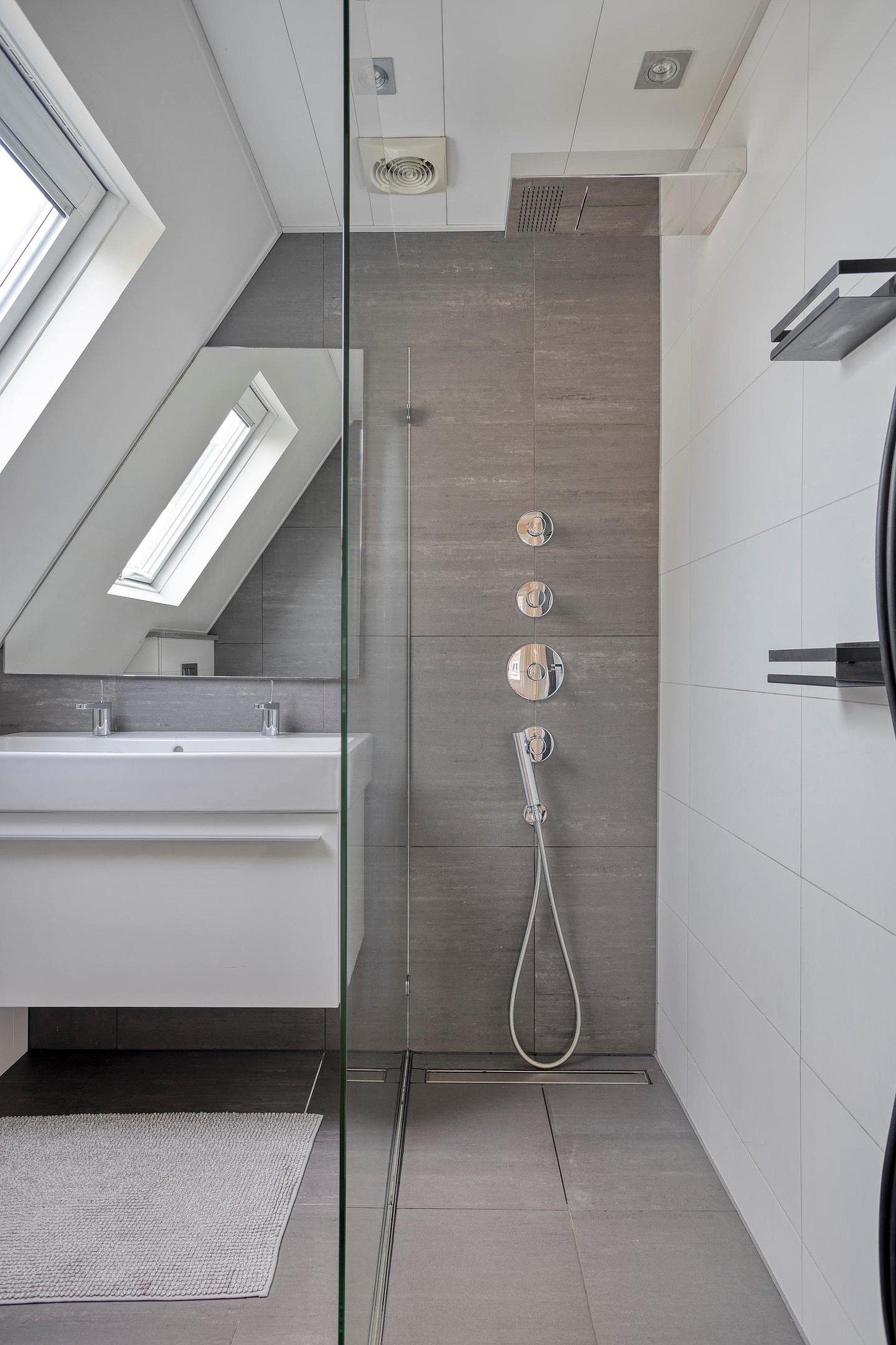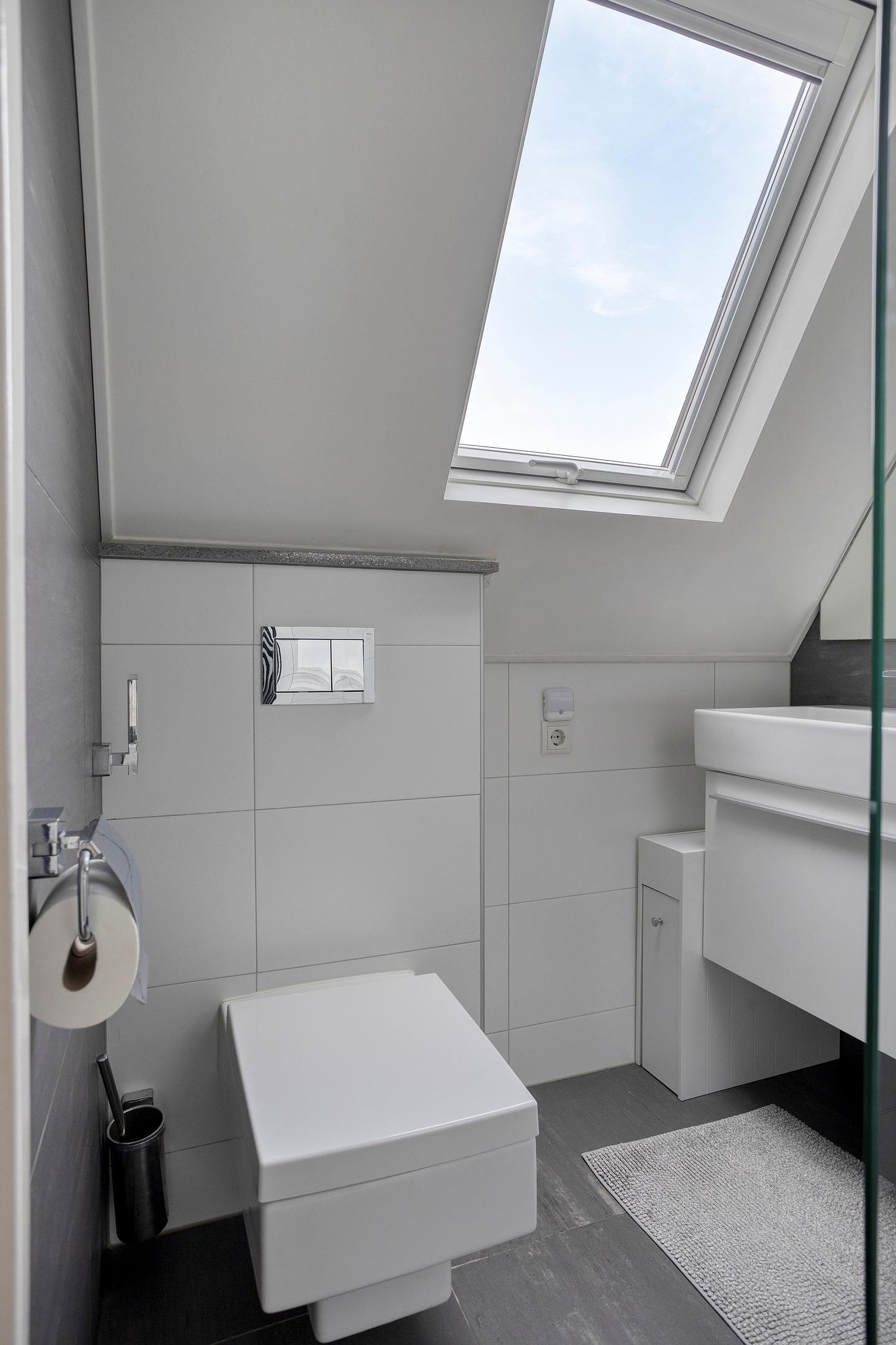 Eerste verdieping De overloop op de 1e verdieping biedt toegang tot drie slaapkamers en de moderne badkamer. Deze is voorzien van een douche, badkamermeubel en toilet.