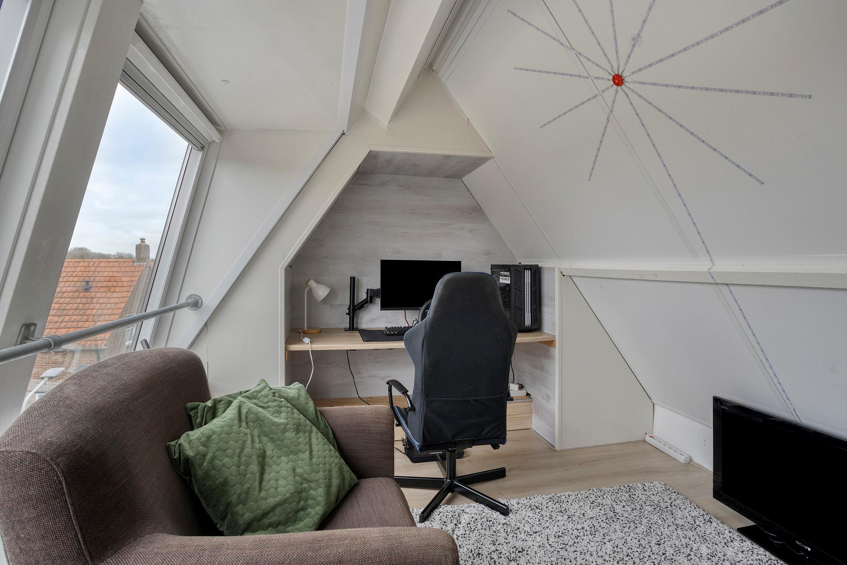 Tweede verdieping De tweede verdieping is bereikbaar via een vaste trap. Ondanks de compacte ruimte is hier slim gebruikgemaakt van elke vierkante meter. Dankzij de kunststof dakkapel is er een lichte en gezellige kamer ontstaan; een ideale plek voor een tiener, werkruimte of logeerkamer. Daarnaast zijn er een bergkamertje, een aparte ruimte voor de cv-ketel en een kleine inbouwkast.