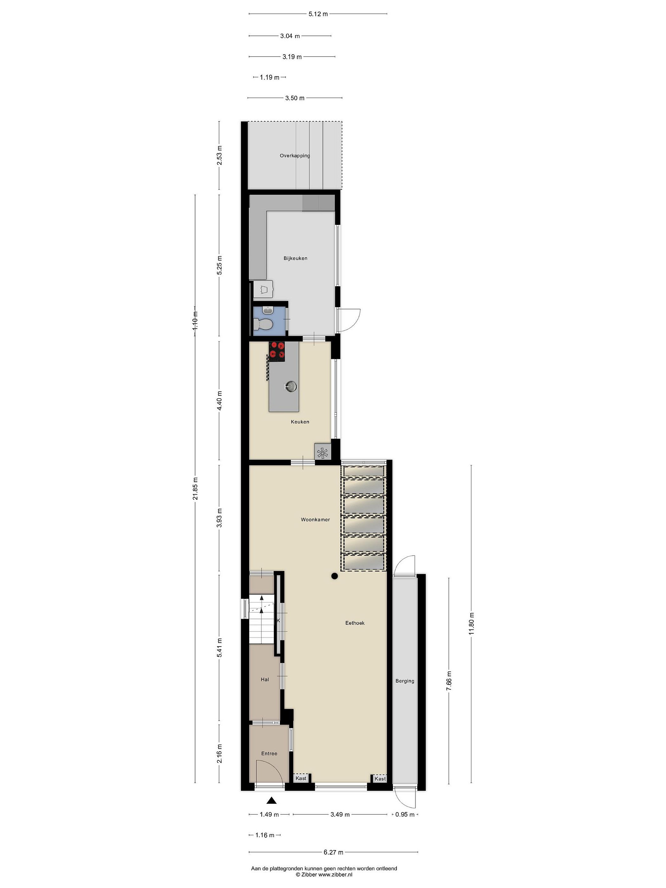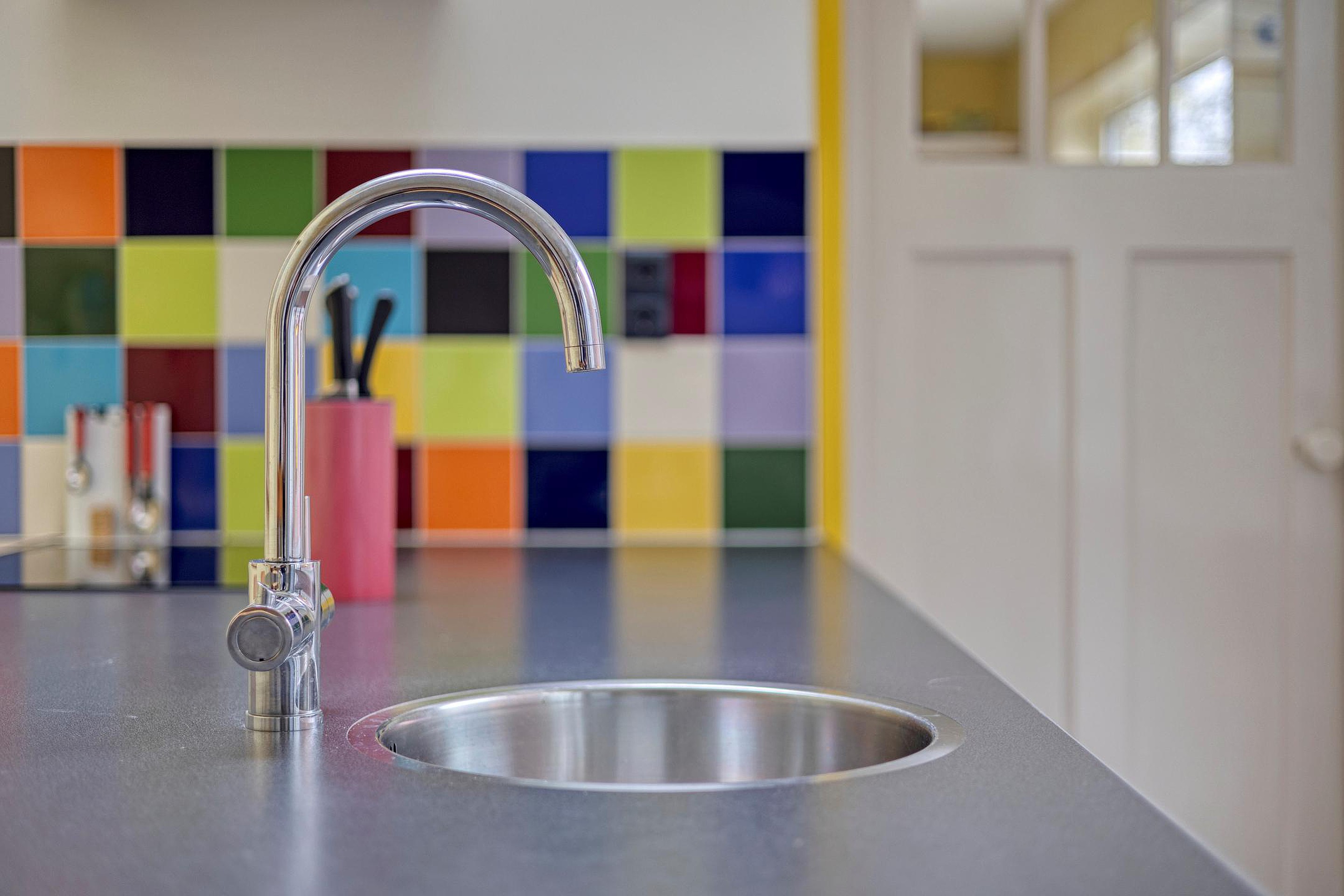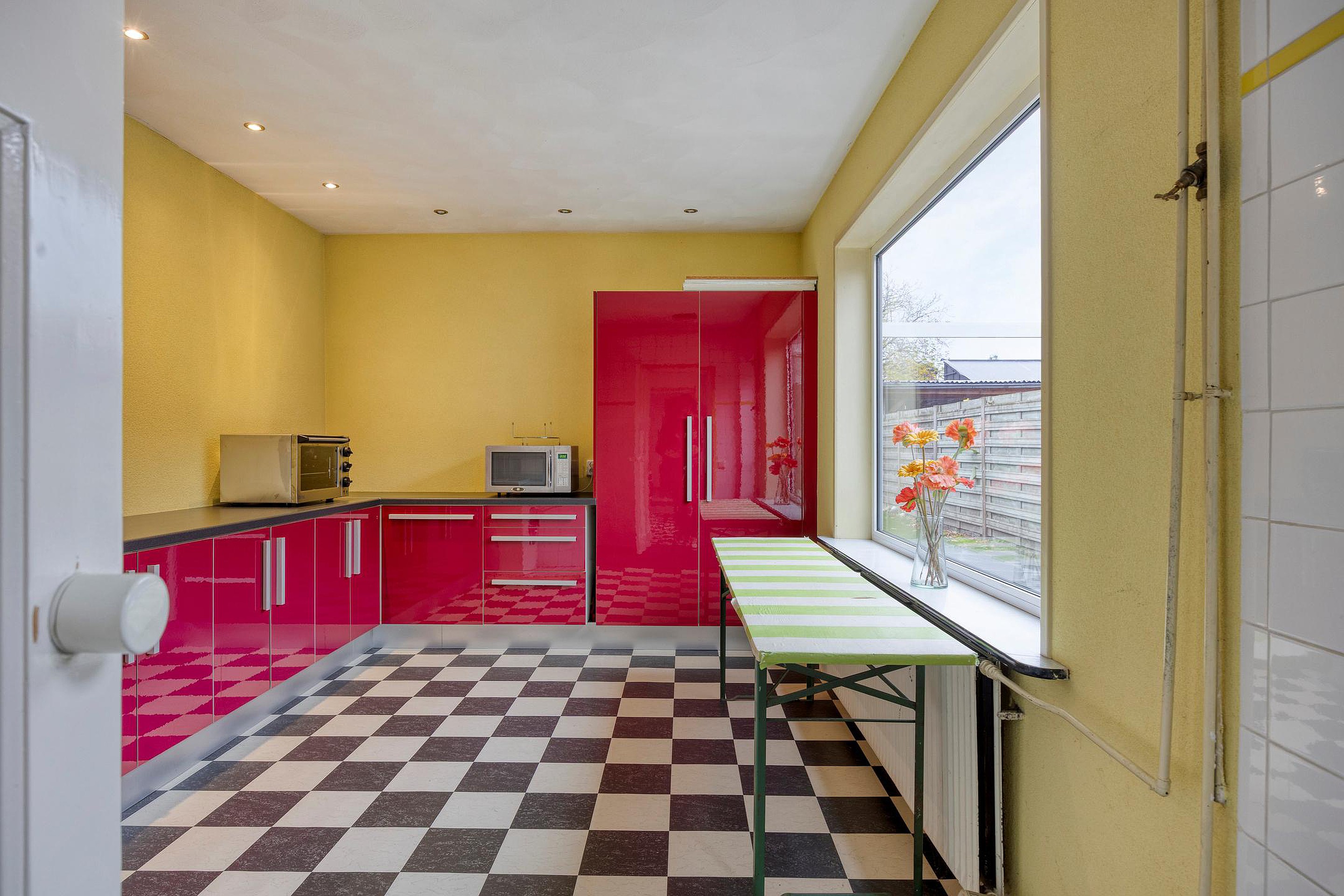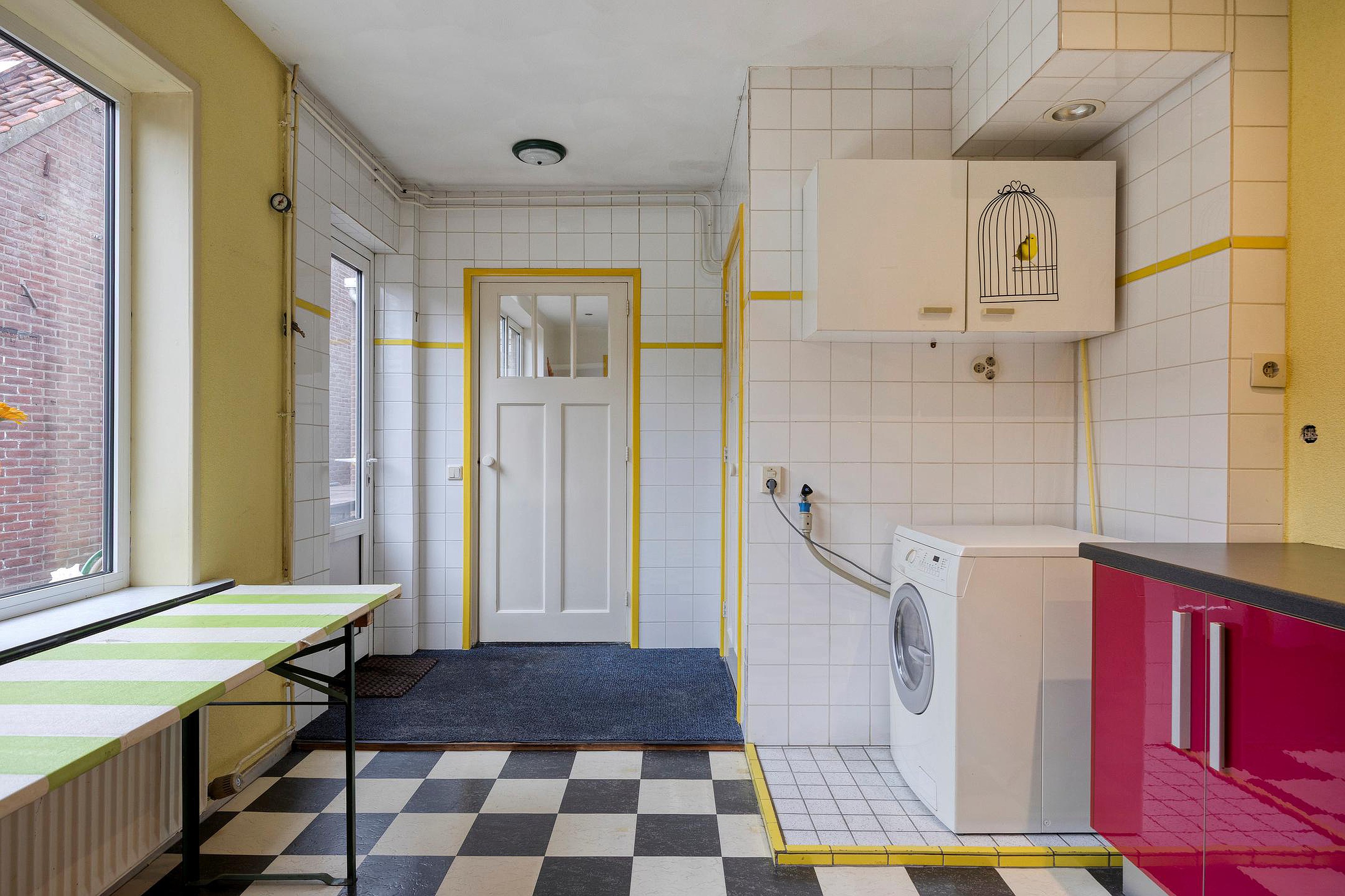 Aansluitend bevindt zich de ruime bijkeuken, praktisch en efficiënt ingericht met extra bergruimte en aansluitingen voor was apparatuur. Hier treft u tevens het toilet.