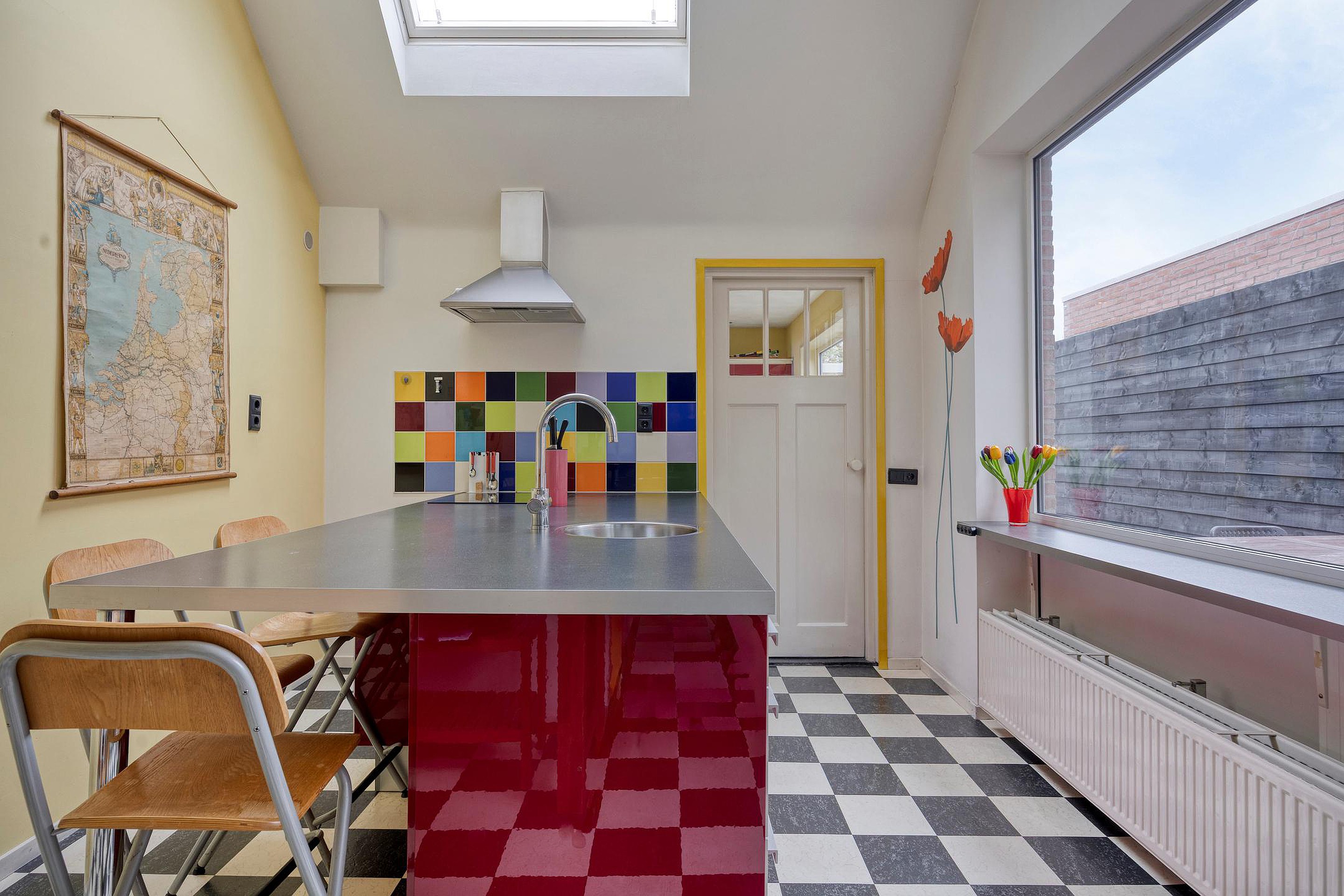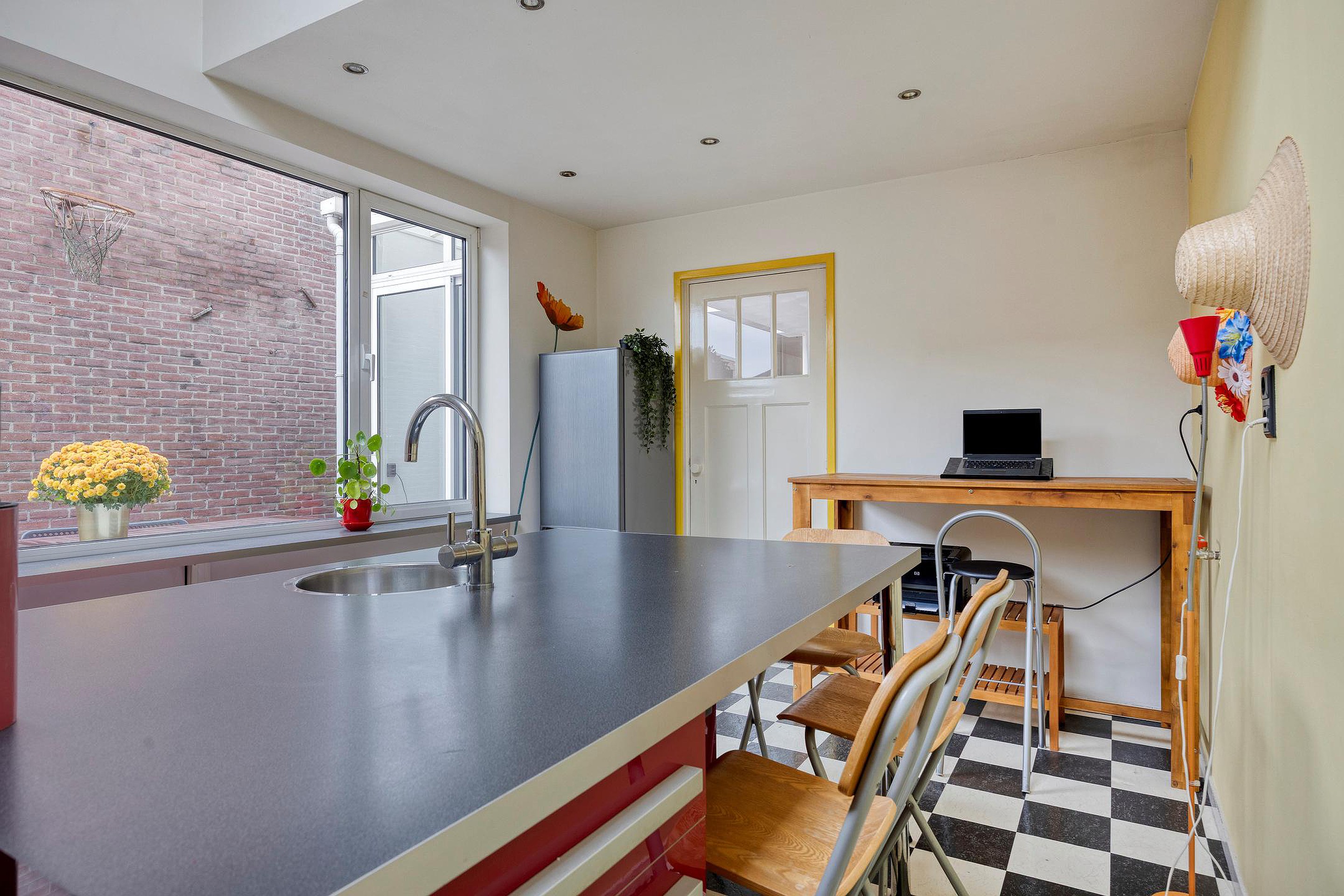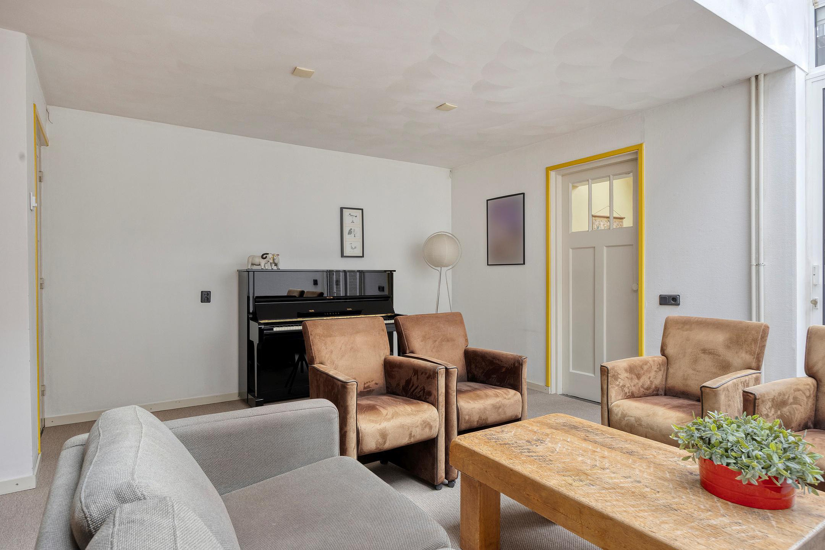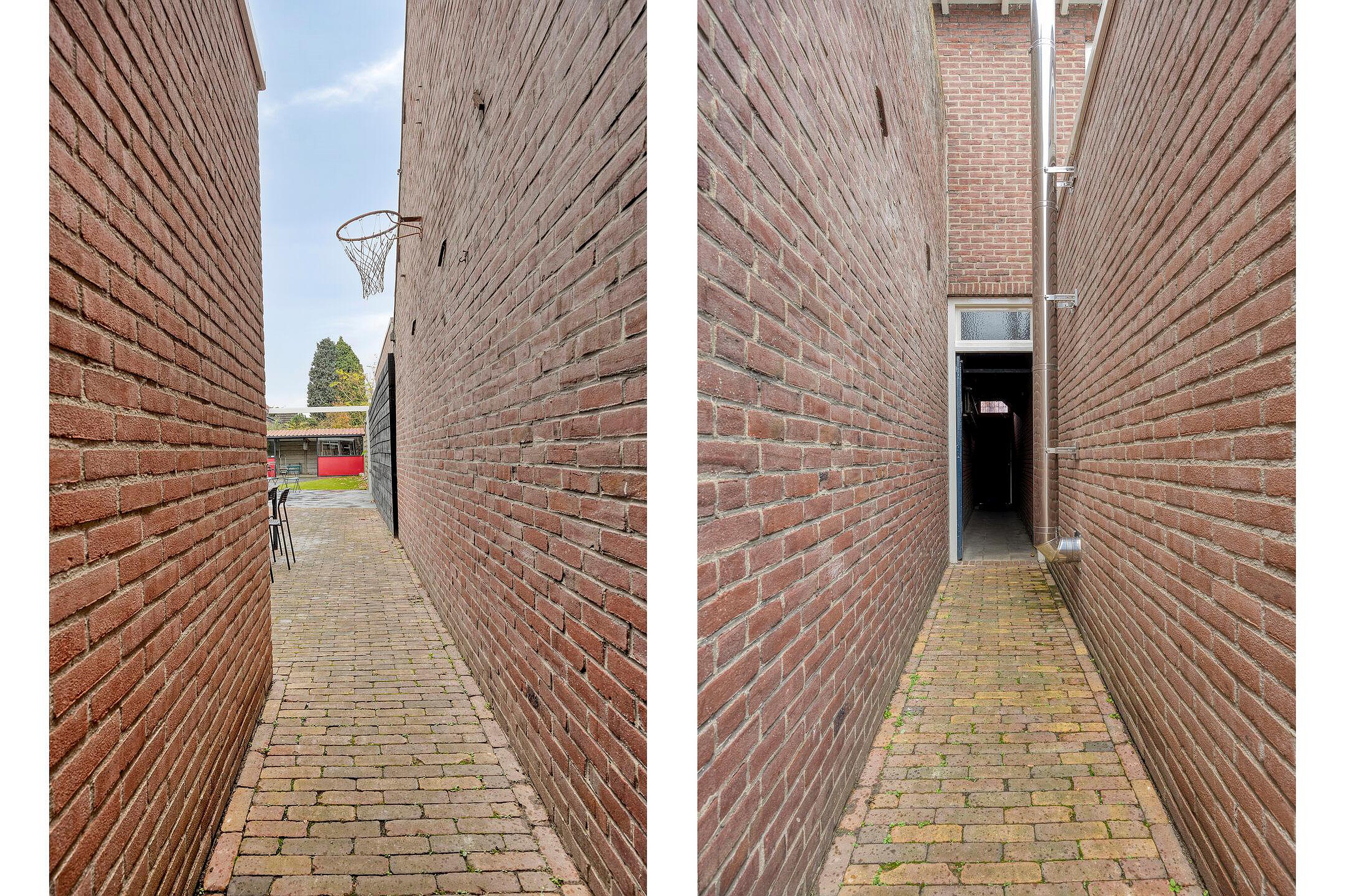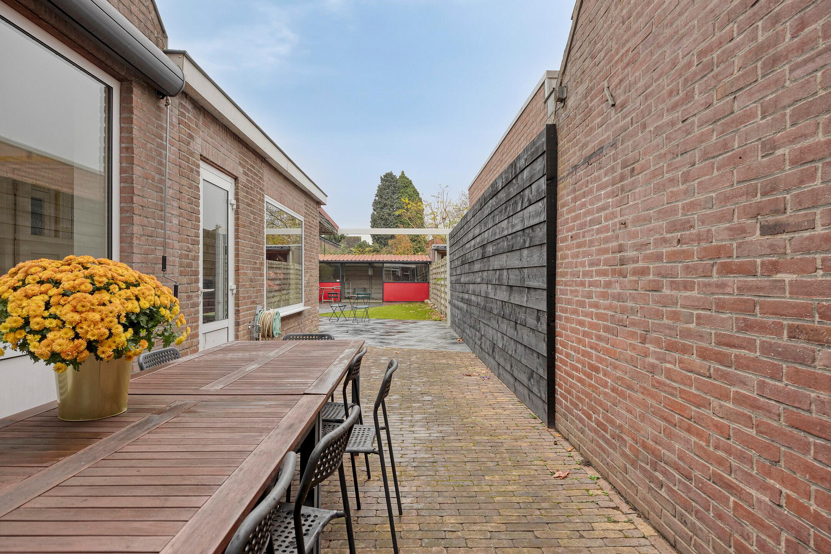 De diepe tuin beschikt over een ruime schuur voor fietsen en opslag. Een overdekt tuinterras zorgt ervoor dat u ook in de zomer heerlijk lang in de tuin te kunt zitten. Teven beschikt dit huis over een eigen achterom.