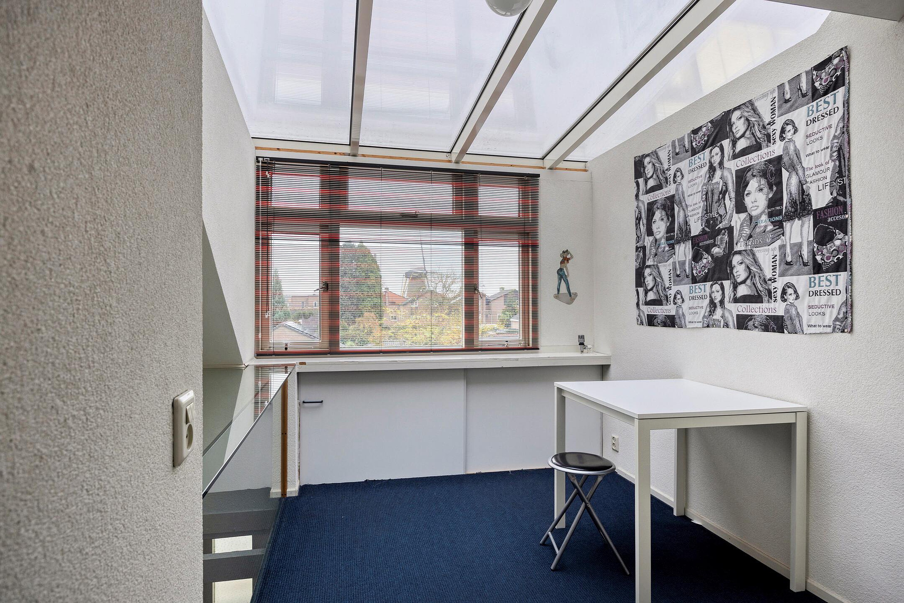 De tweede verdieping beschikt over twee slaapkamers, elk voorzien van grote glaspartijen die zorgen voor een overvloed aan natuurlijk licht. De kamers zijn ruim en comfortabel, waardoor ze uitstekend geschikt zijn als slaapkamers, werkkamers of hobbyruimtes.