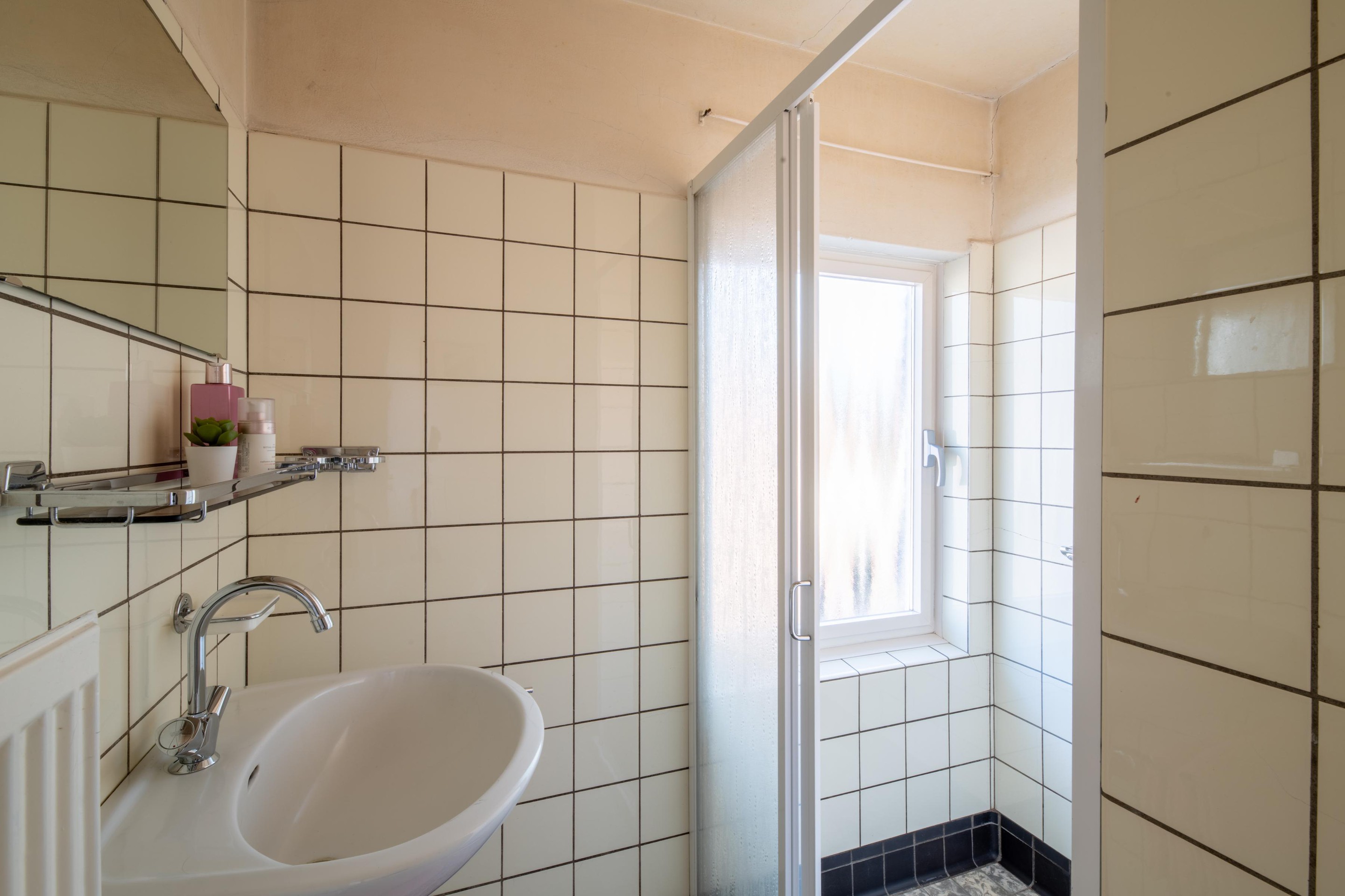 Eerste verdieping Speelse overloop met toegang tot drie slaapkamers, allen voorzien van een vaste kast. De badkamer is uitgerust met een douche en wastafel.