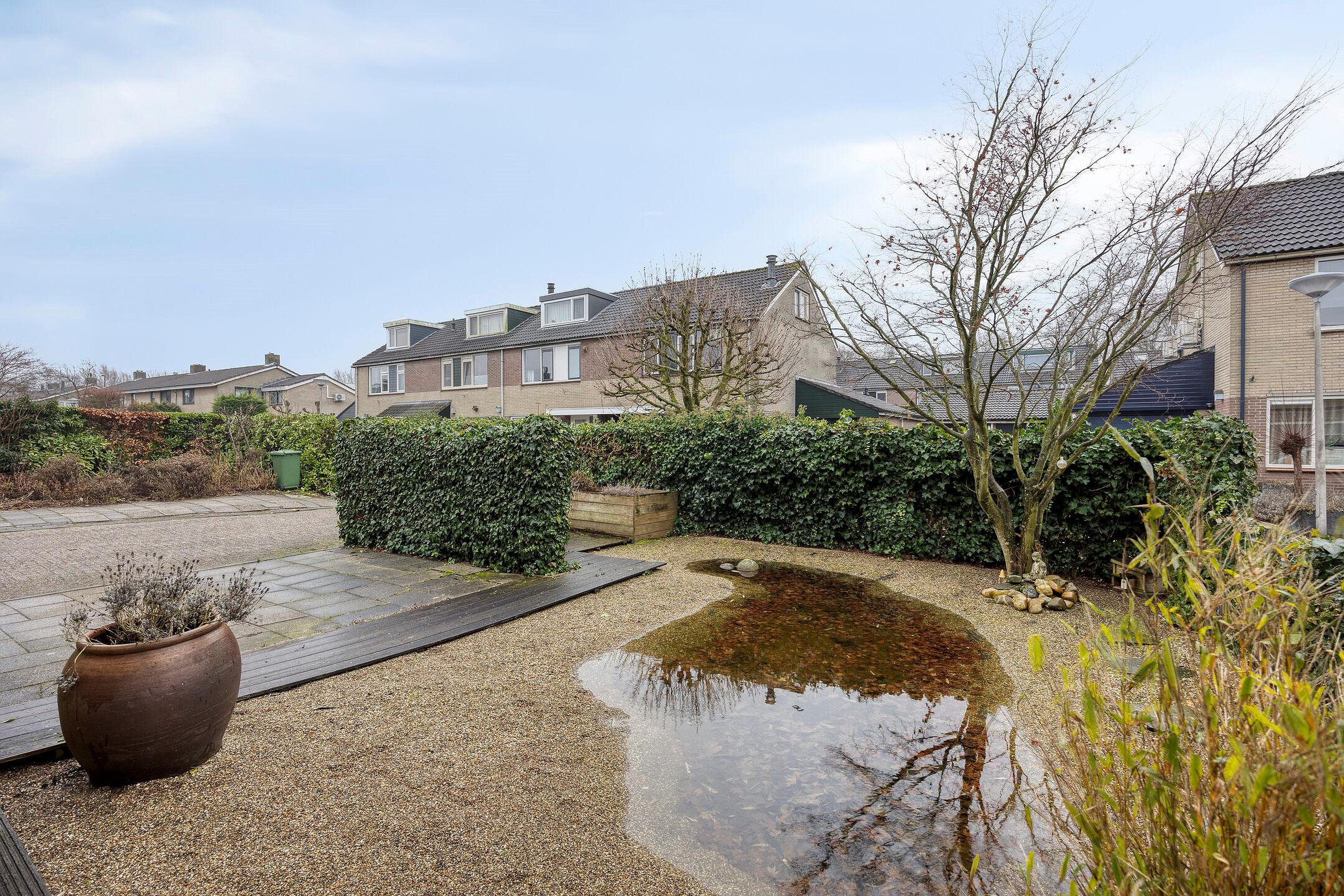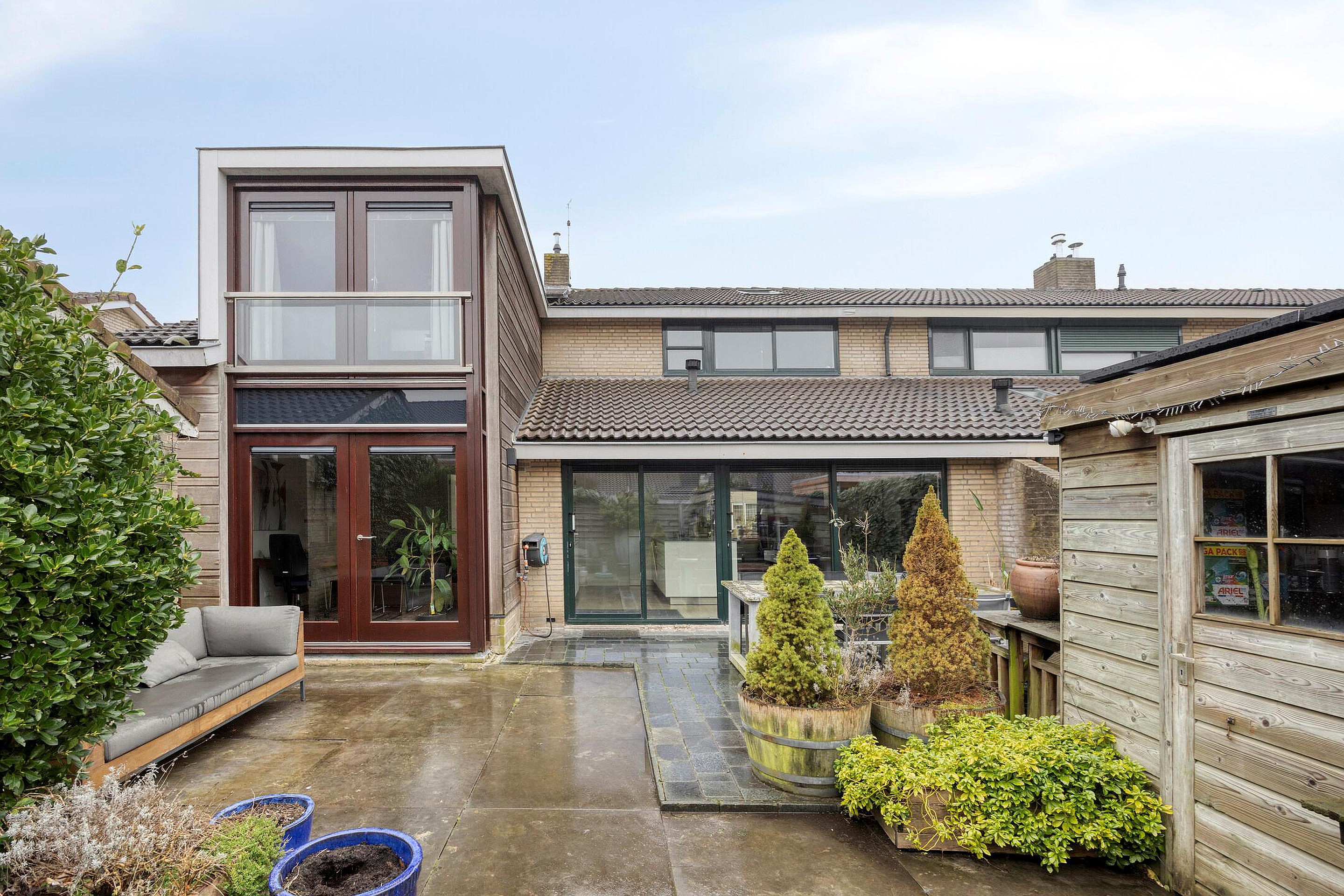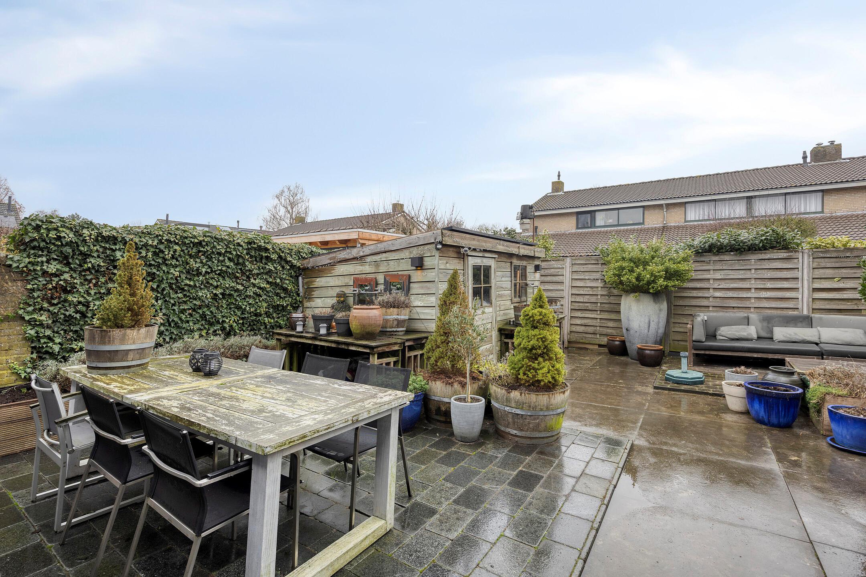 Zowel aan de voor- als achterzijde van de woning heeft u veel privacy vanwege de ruime opzet van de woonwijk. Door de diepte van de achtertuin is er veel zoninval in de tuin. Achtertuin ca. 9.00x7.00m.
