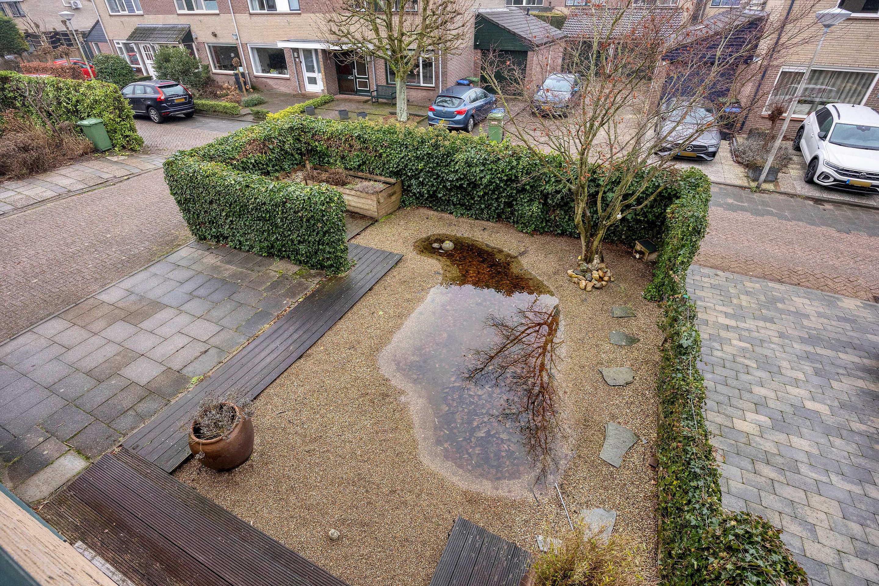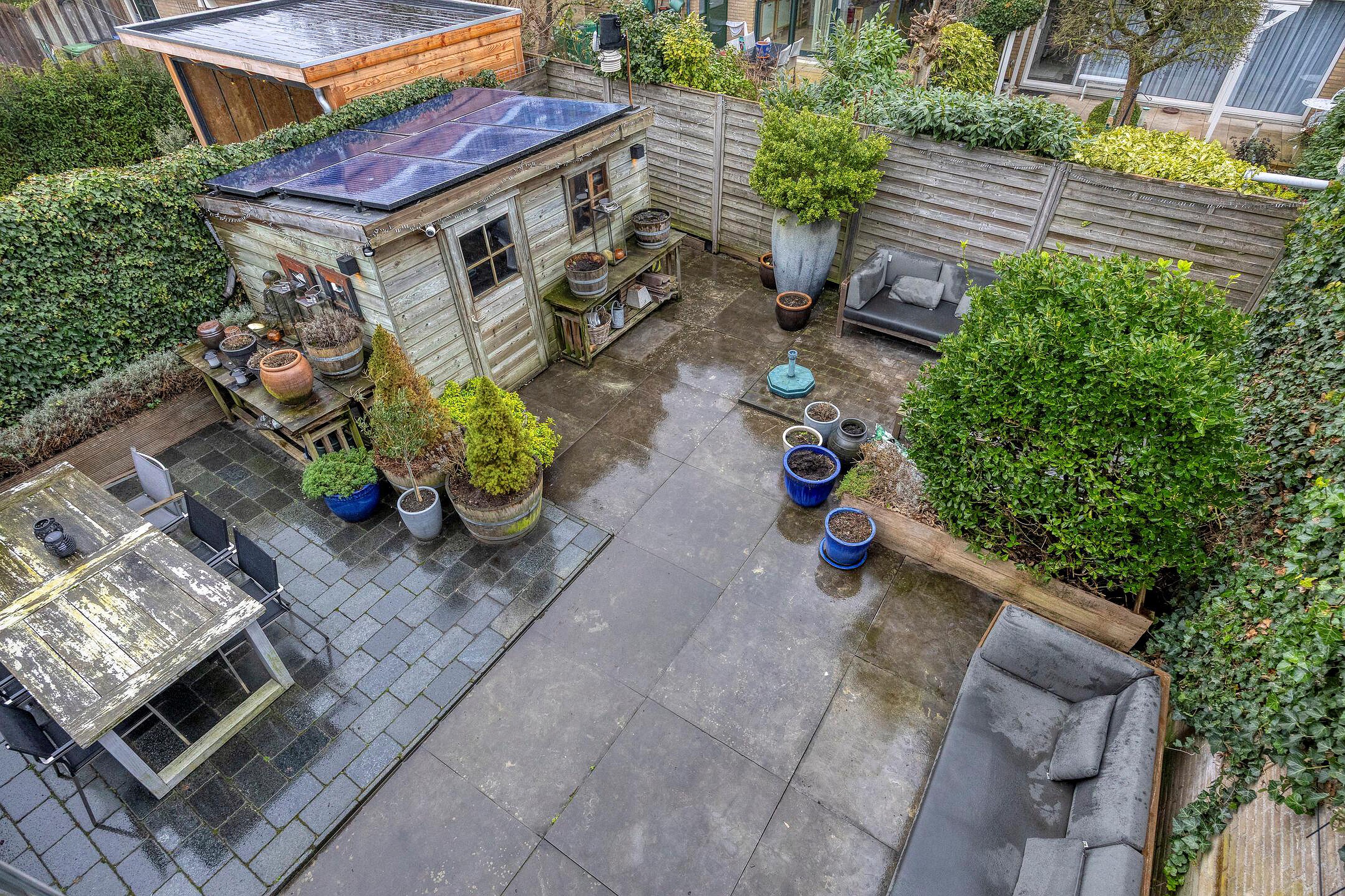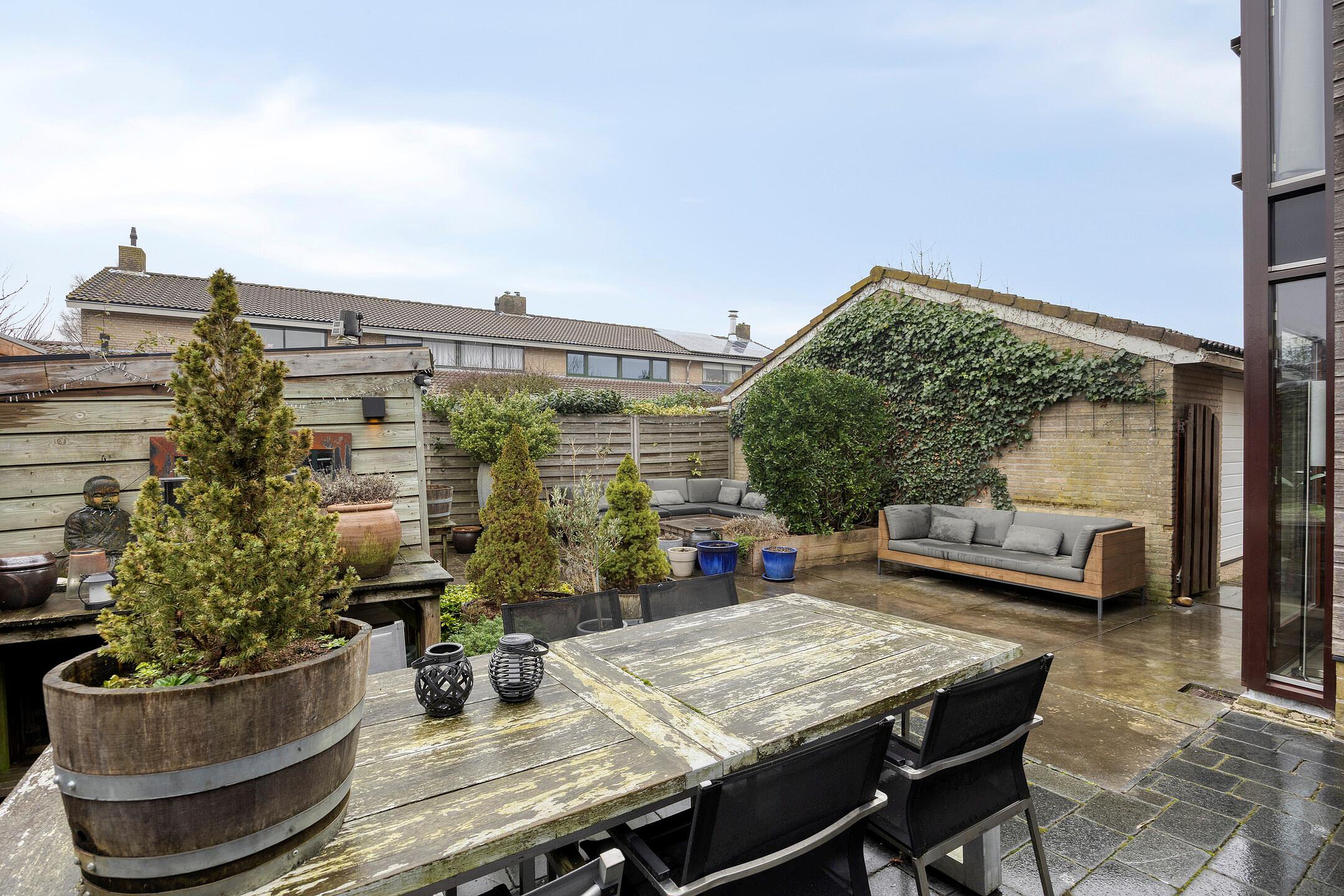 Zowel aan de voor- als achterzijde van de woning heeft u veel privacy vanwege de ruime opzet van de woonwijk. Door de diepte van de achtertuin is er veel zoninval in de tuin. Achtertuin ca. 9.00x7.00m.