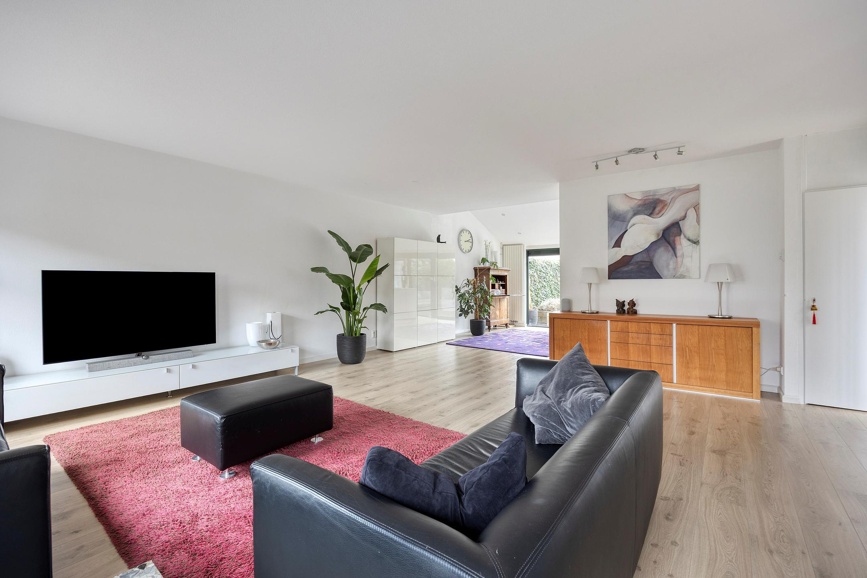 De living (woonkamer en open keuken) is zeer ruim en lichtrijk mede door de grote ramen aan voorzijde en de schuifpui aan de achterzijde van de woning.