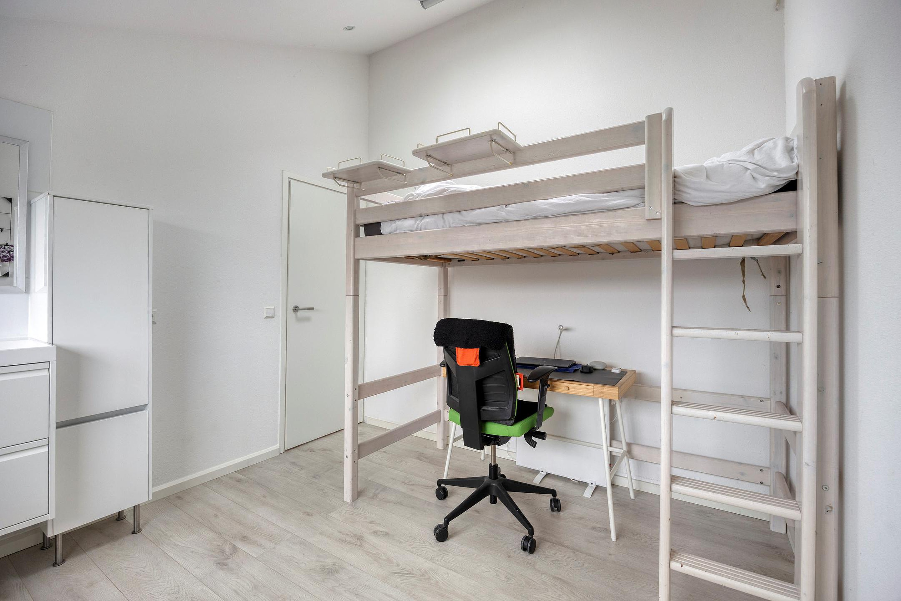 Ruime slaapkamer (2) achterzijde. Deze slaapkamer heeft een wastafel.