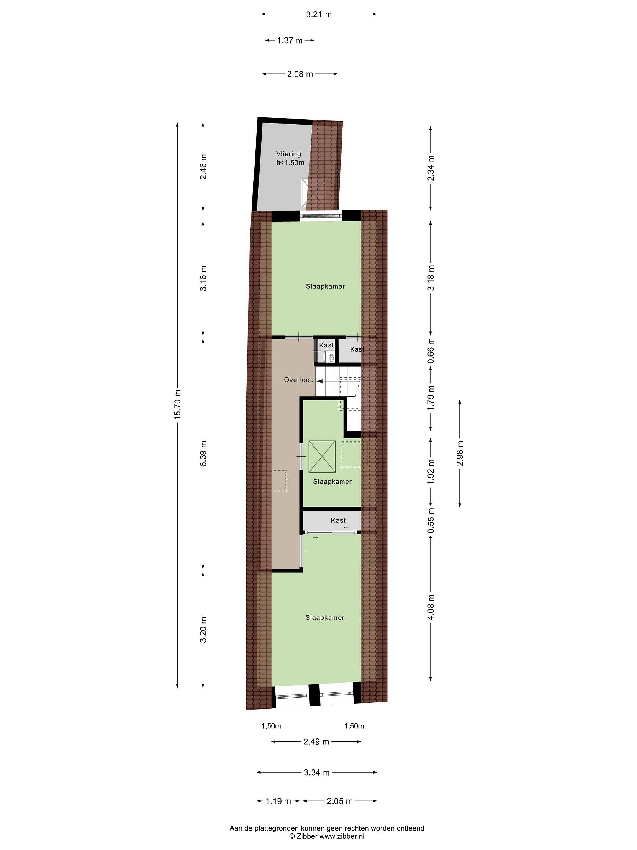 * De woning heeft twee vlieringen. Boven twee slaapkamers loopt de een en de ander zit boven de aanbouw.