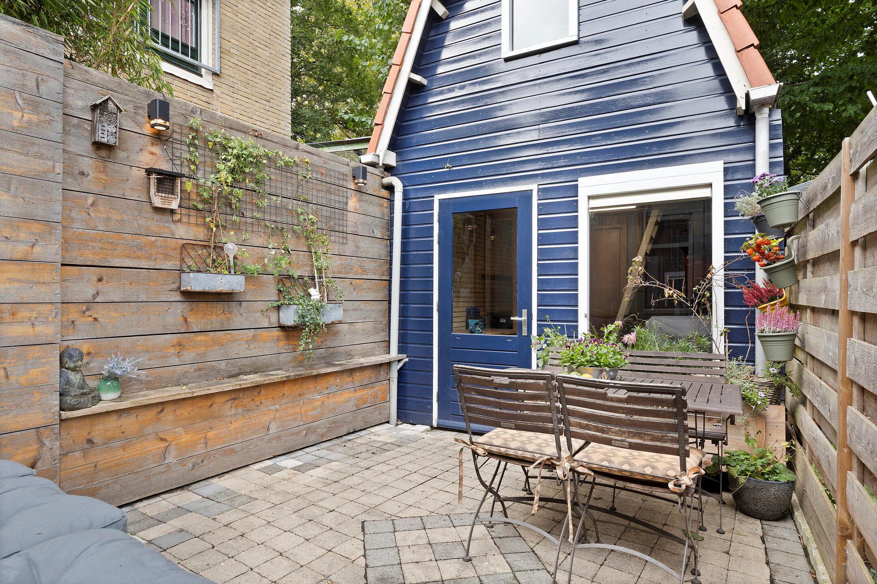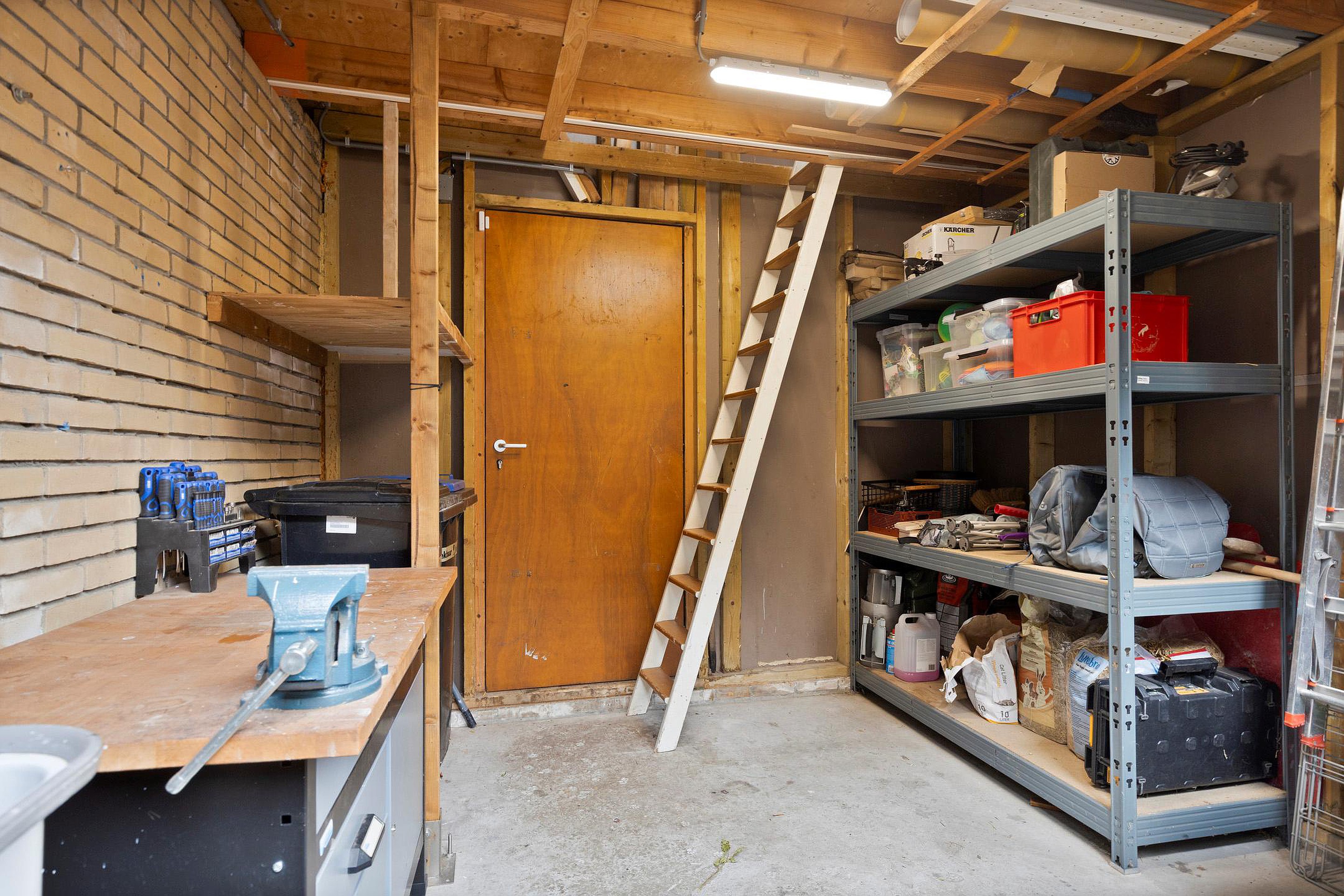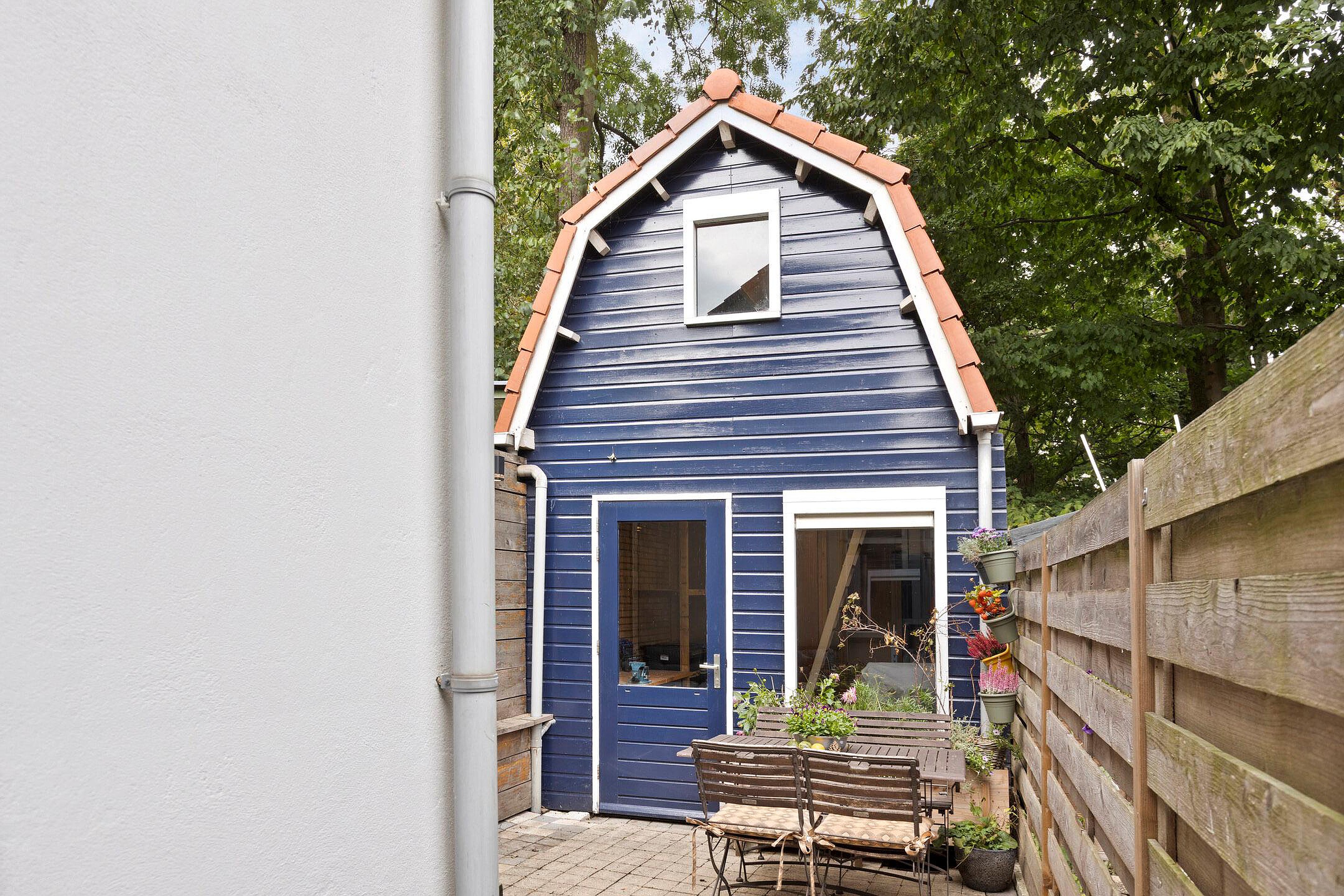 De achtertuin (noord) grenst direct aan een grote, groene speeltuin en beschikt over een uitzonderlijk ruime, deels stenen berging van ruim 14 m2 met verdieping. Die is voorzien van elektra en water, ideaal als opslag, atelier, kantoor of hobbyruimte.