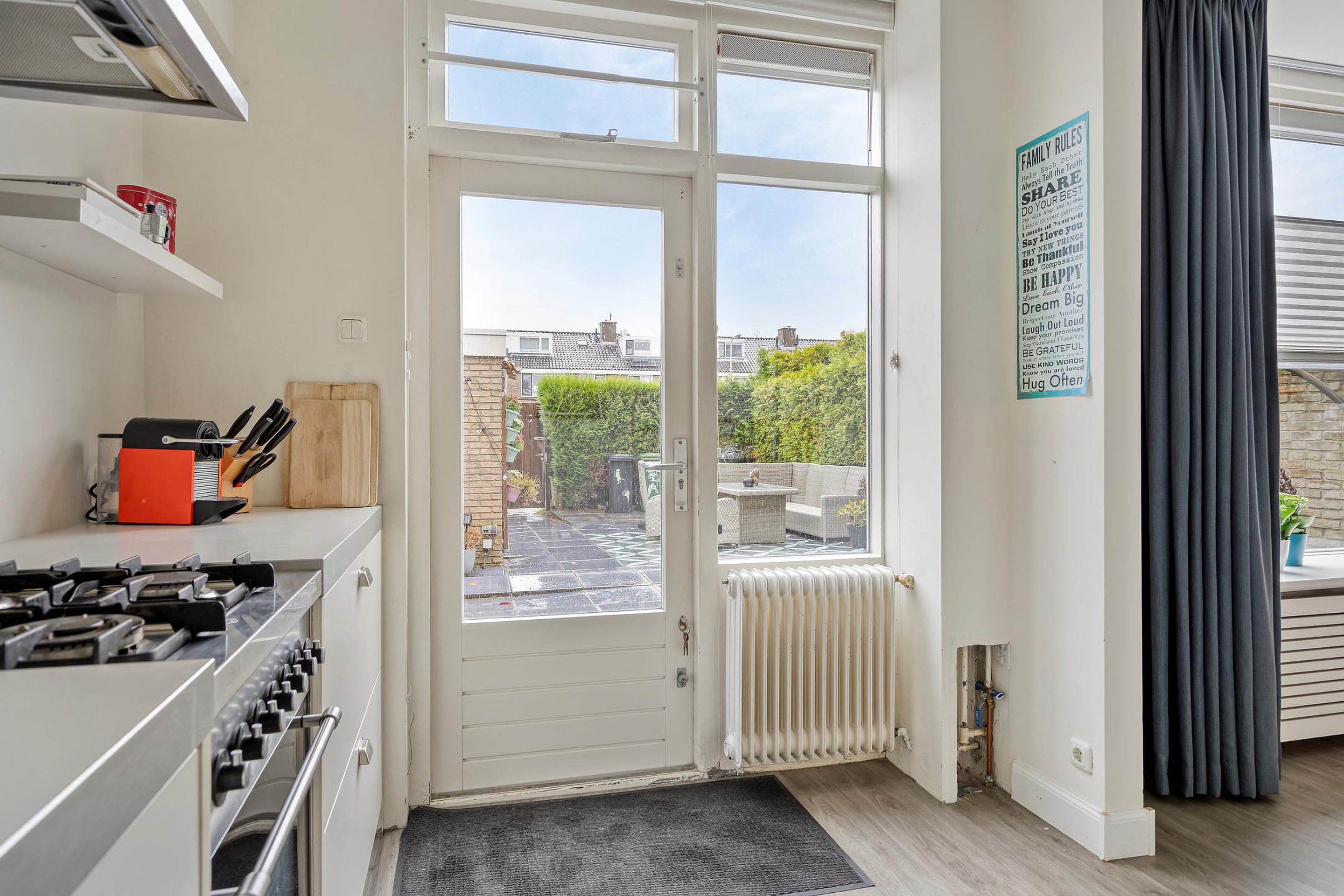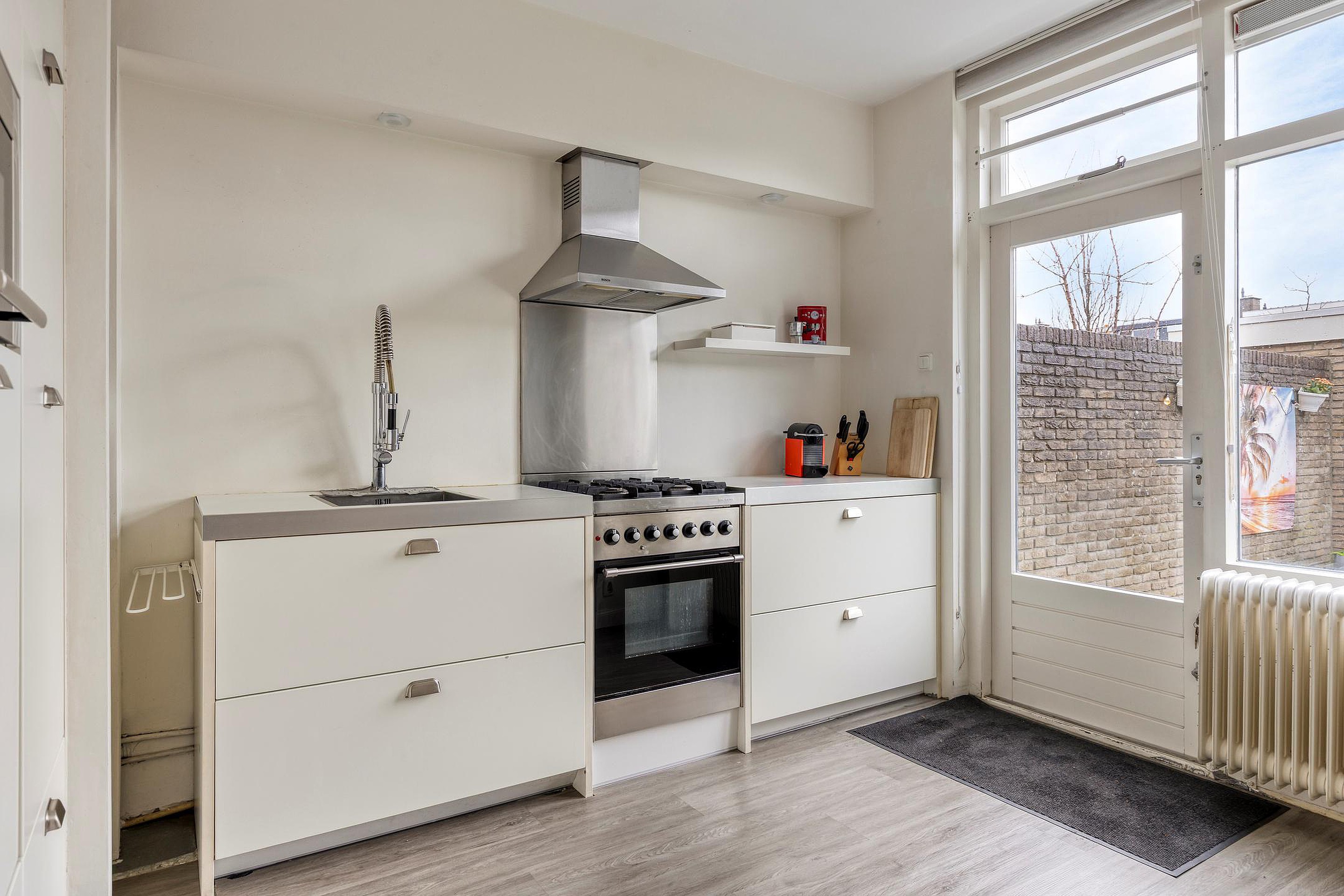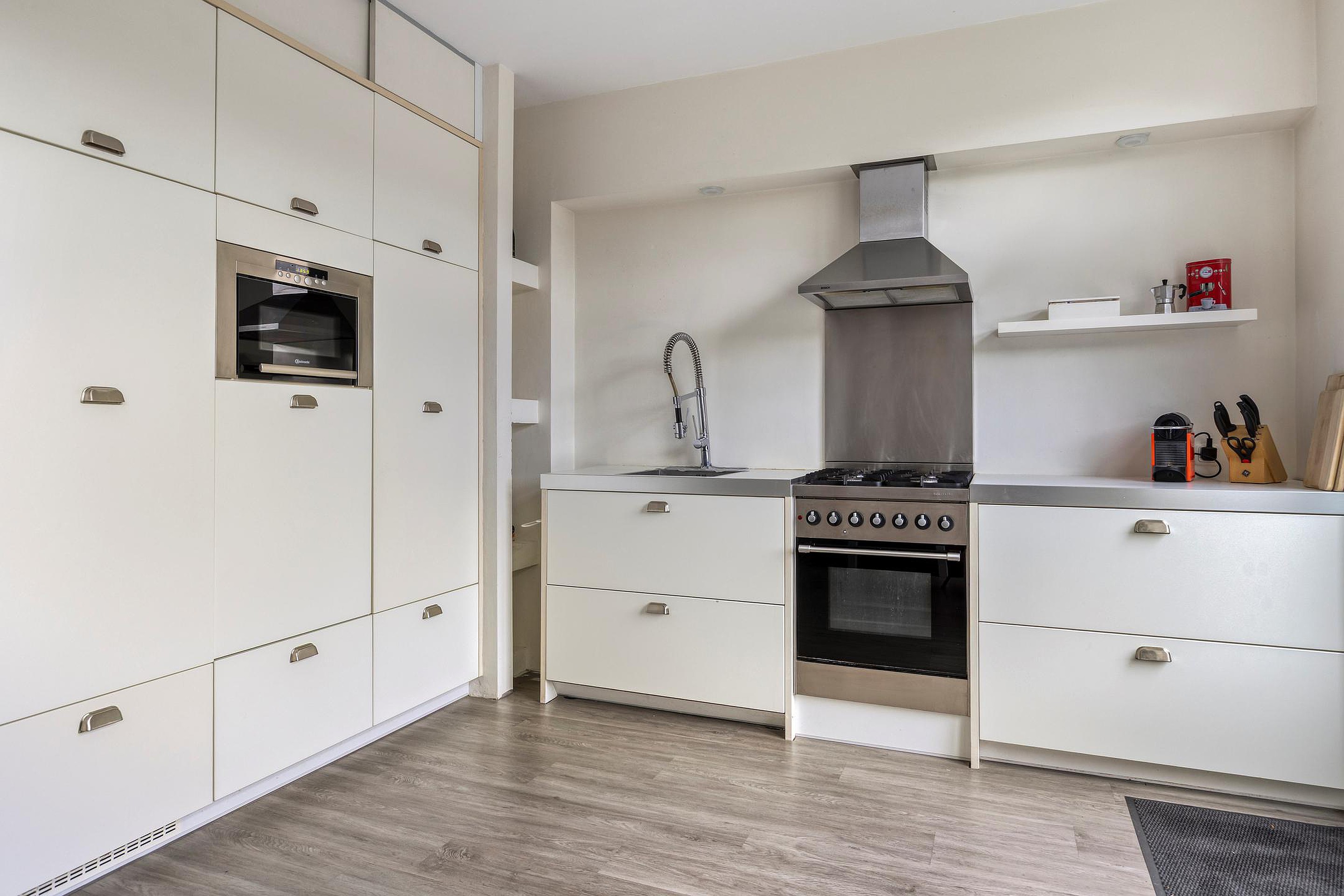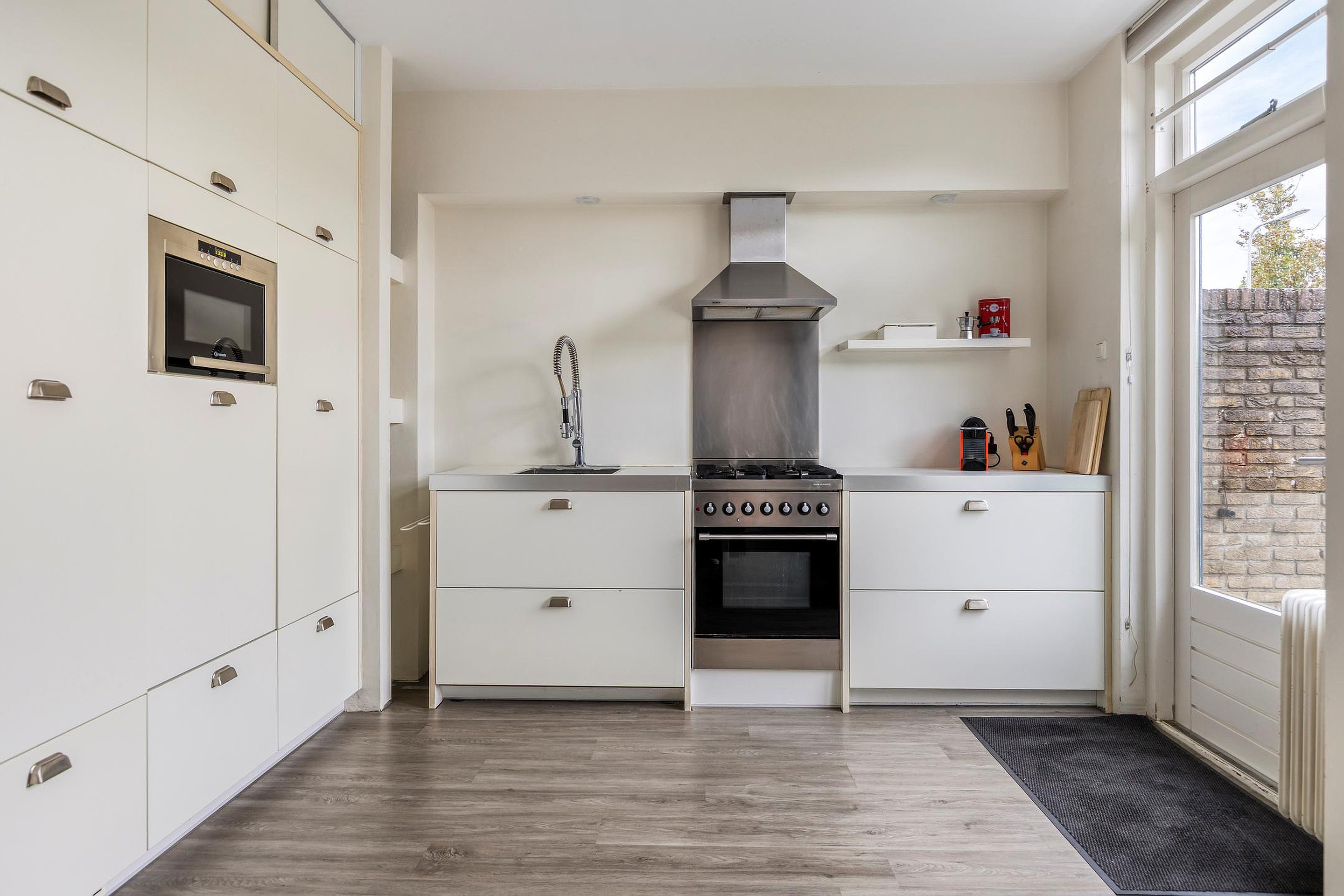 De ruime keuken is gelegen aan de achterzijde van de woning en middels een loopdeur is er toegang tot de fraai aangelegde achtertuin met achterom. Deze is gelegen op het noordoosten.