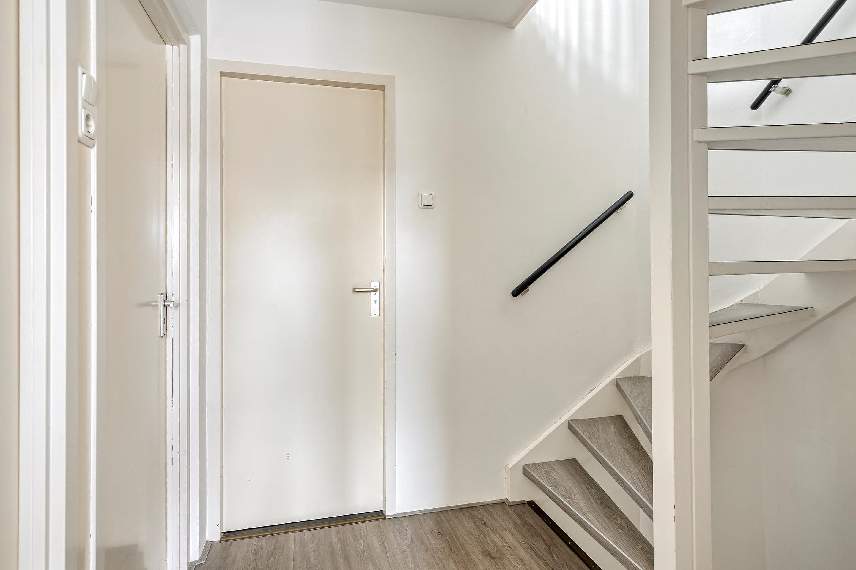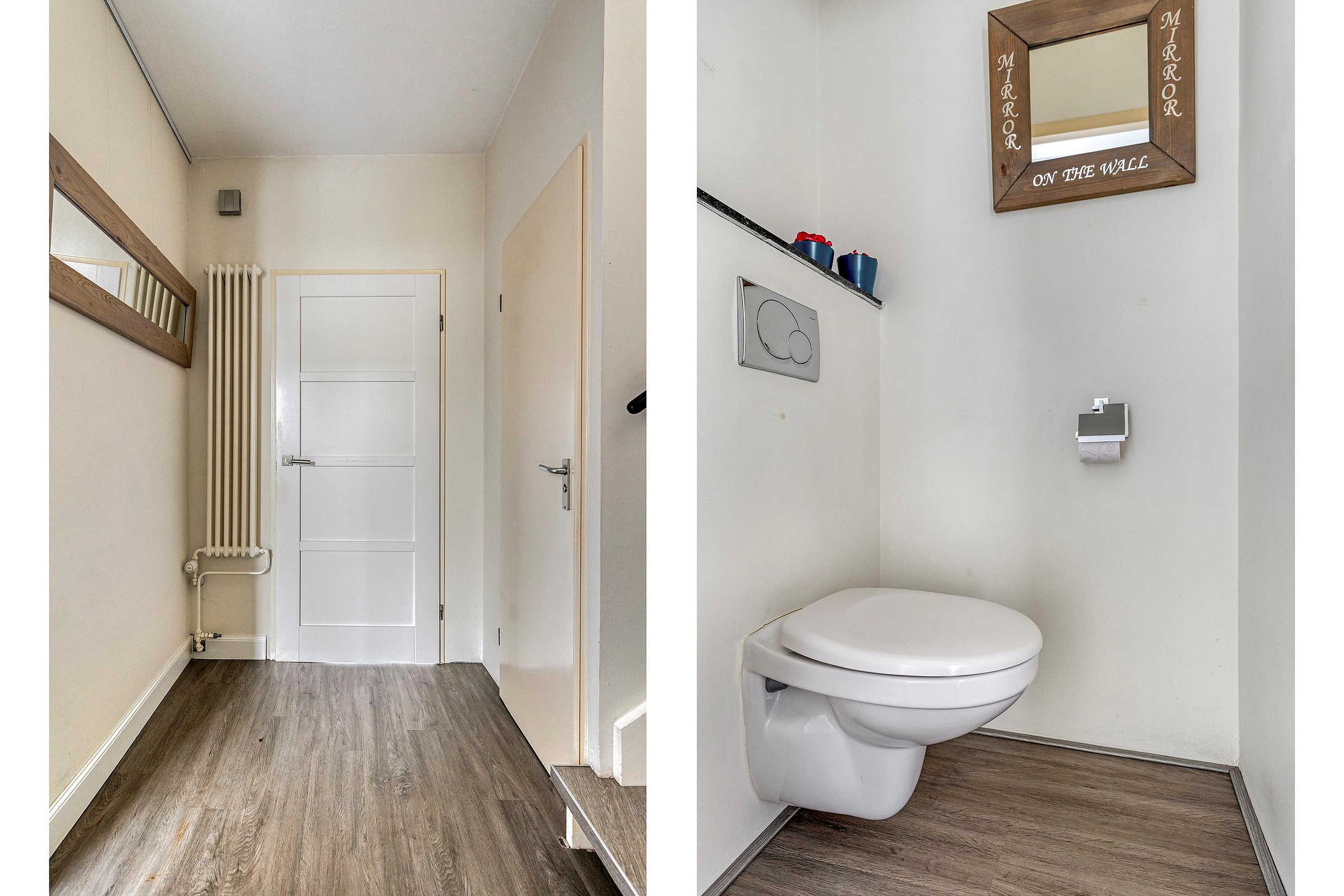 Via de tussendeur komt u in de hal met de trapopgang naar de eerste verdieping, het toilet is betegeld en heeft een hangtoilet.
