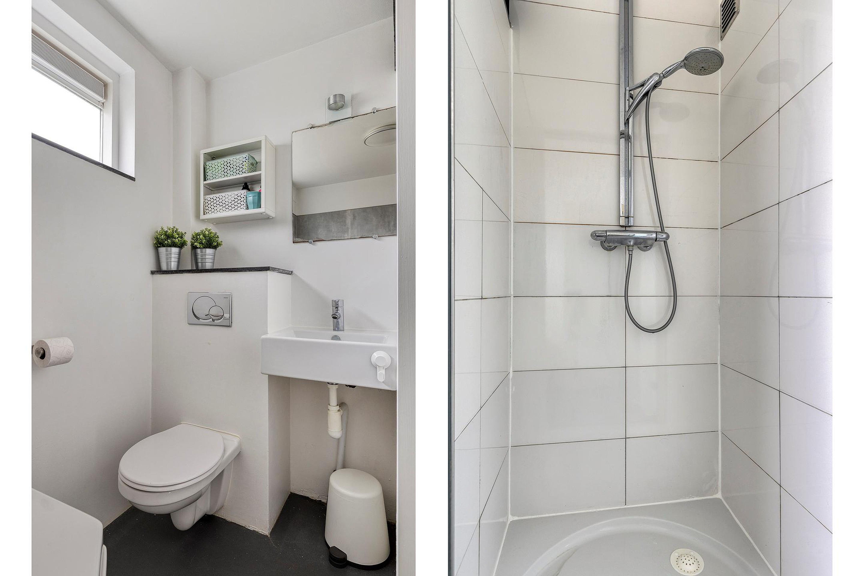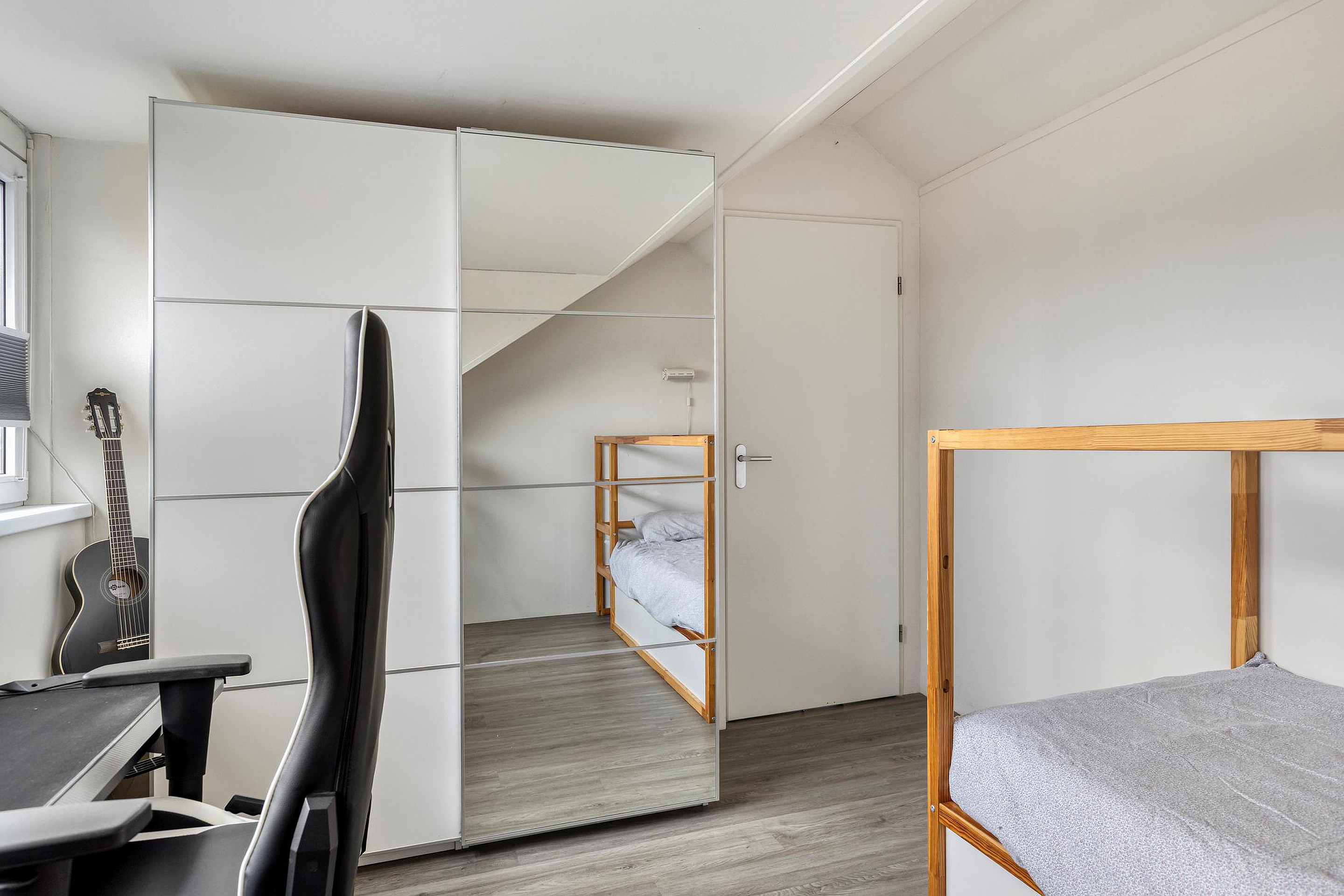 Aan de voorzijde van de woning is de badkamer en een slaapkamer.