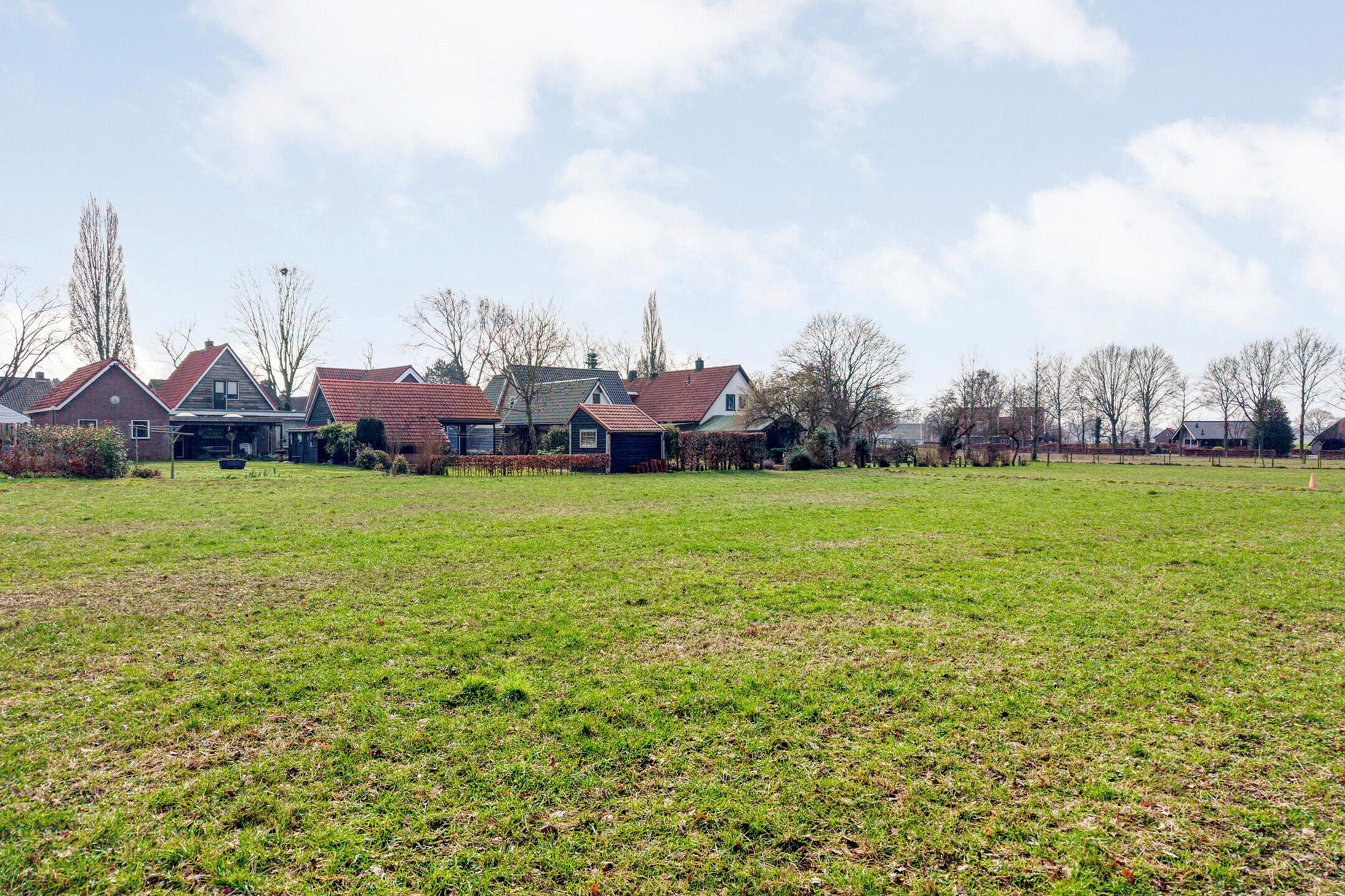 Aan de voorzijde de oprit, geschikt voor meerdere auto’s en aan de achterzijde geniet men van een vrij uitzicht over een weiland gelegen aan de achterzijde van het perceel.