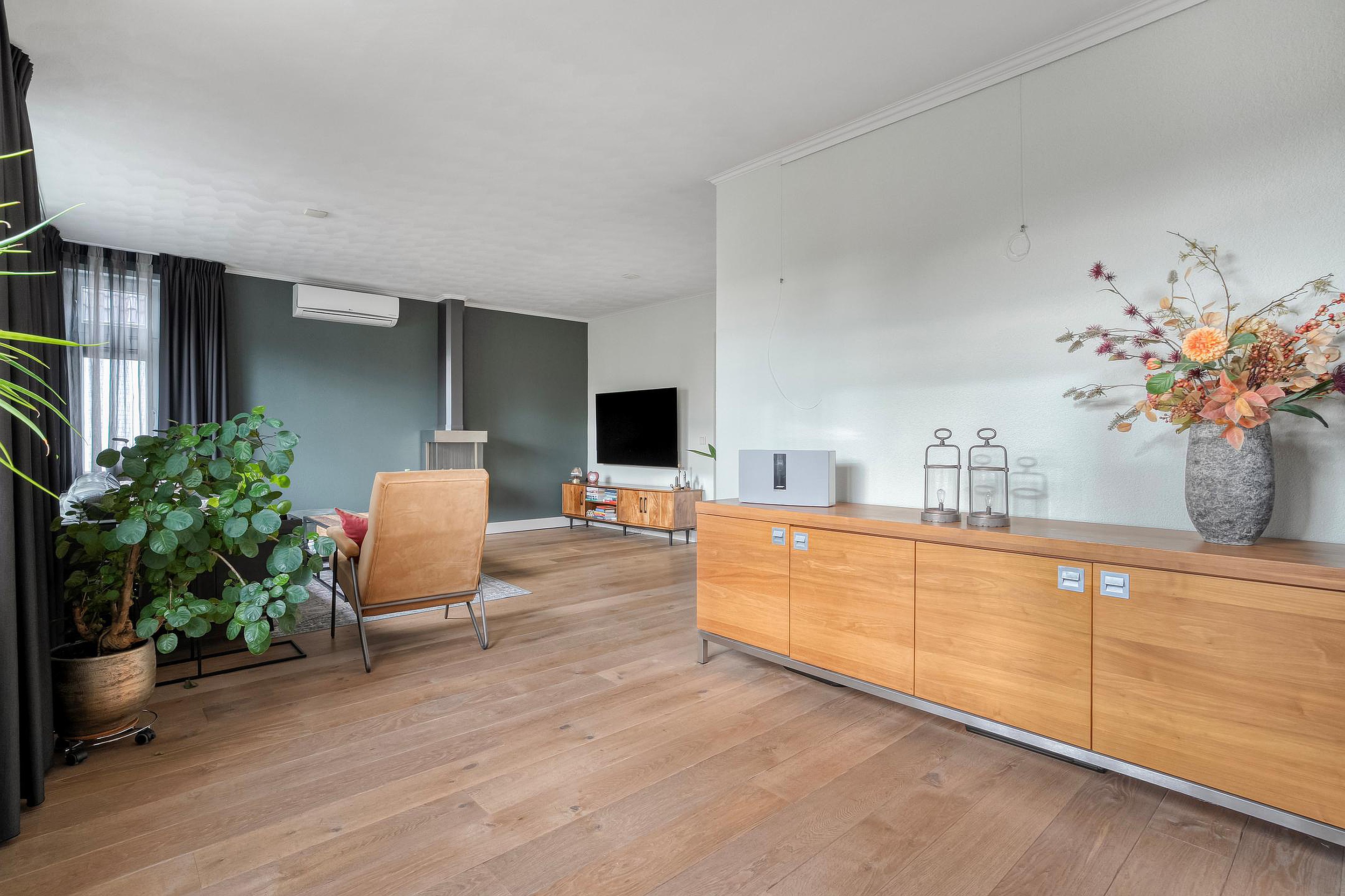 Zo is het energielabel met recht opvallend: A+. Dankzij het (grotendeels) kunststof kozijnenwerk met overal dubbele beglazing, dak-, spouwmuur- én gedeeltelijke vloerisolatie is het binnen gedurende het hele jaar comfortabel – én gunstig voor je portemonnee. De Remeha HR combiketel (uit dec. 2024) zorgt trouwens voor een behaaglijk warme winter, terwijl de airco’s in huis je zomerdagen heerlijk koel houden.