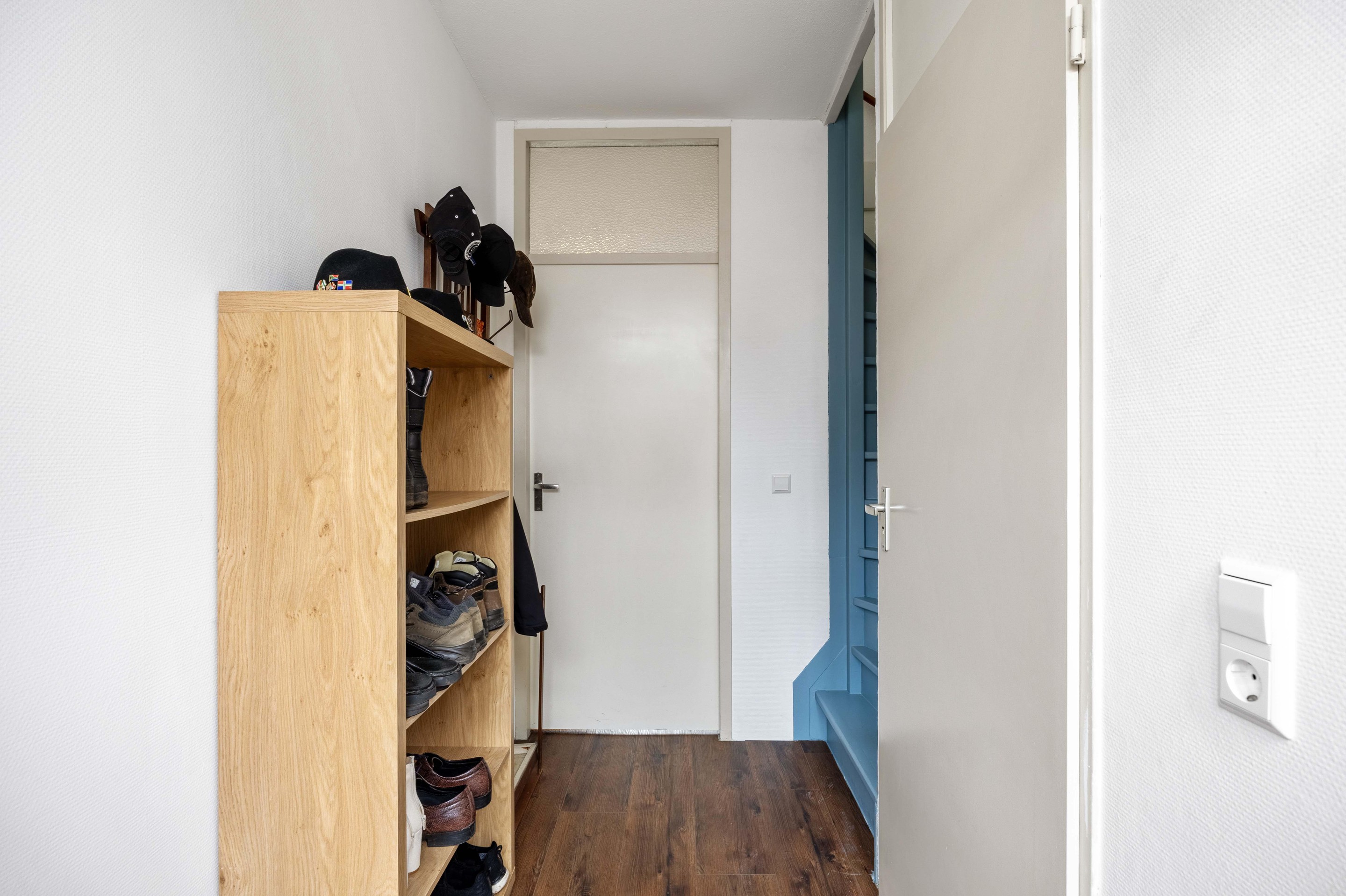 Bij het binnentreden van de woning kom je in de hal met ruimte voor het ophangen van je jassen en opbergen van je schoenen. Ook bevindt zich hier de meterkast (vernieuwd in 2021), het toilet met fontein en de trap naar boven.