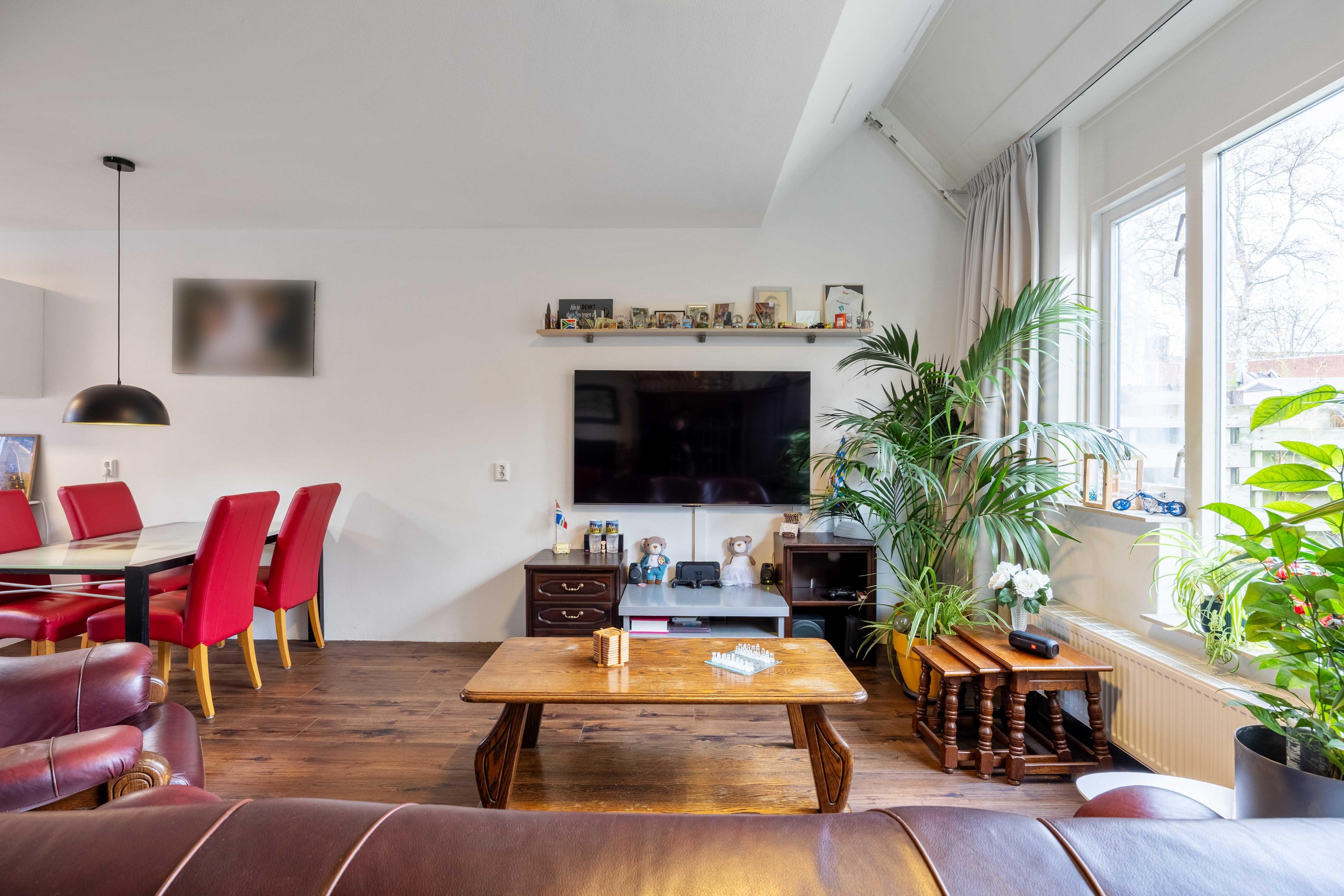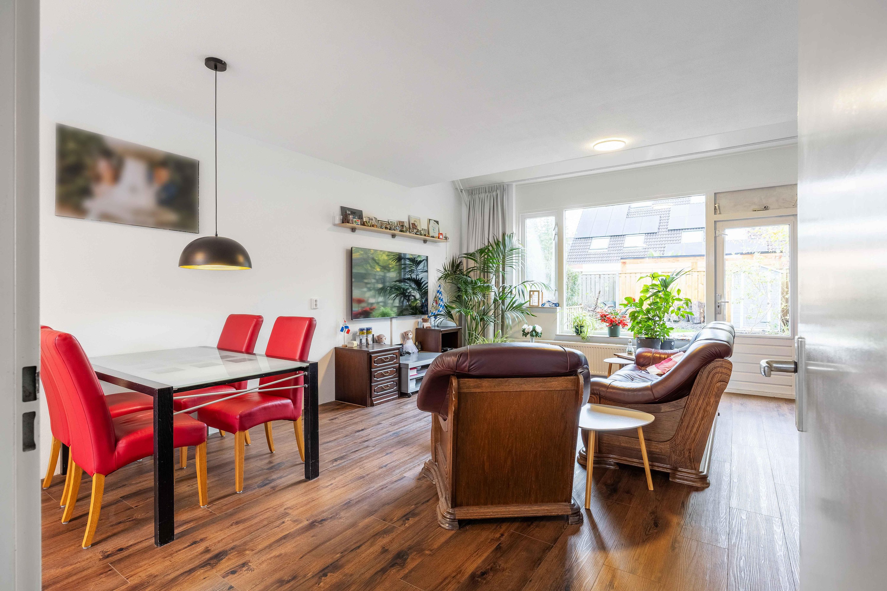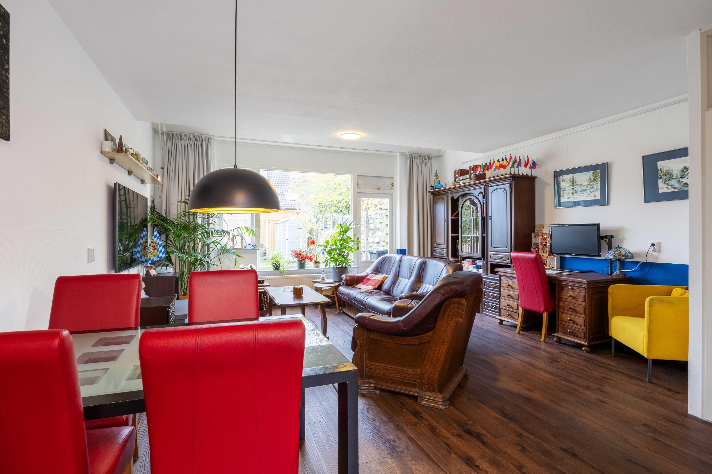 De woonkamer is licht en ruim, dankzij de grote raampartij en de tuindeur schijnt de zon 's morgens je woonkamer naar binnen. De woonkamer staat in verbinding met de keuken welke is uitgevoerd in parallelopstelling en voorzien van inbouwapparatuur.