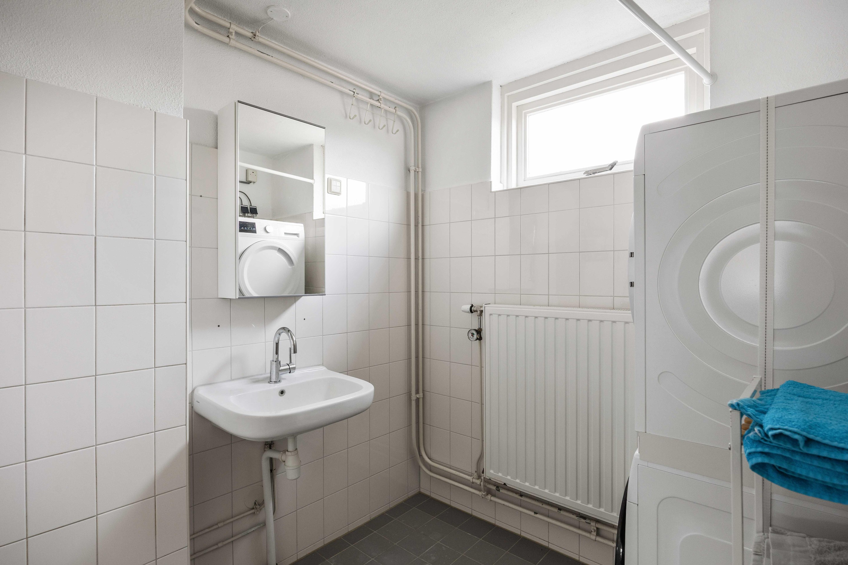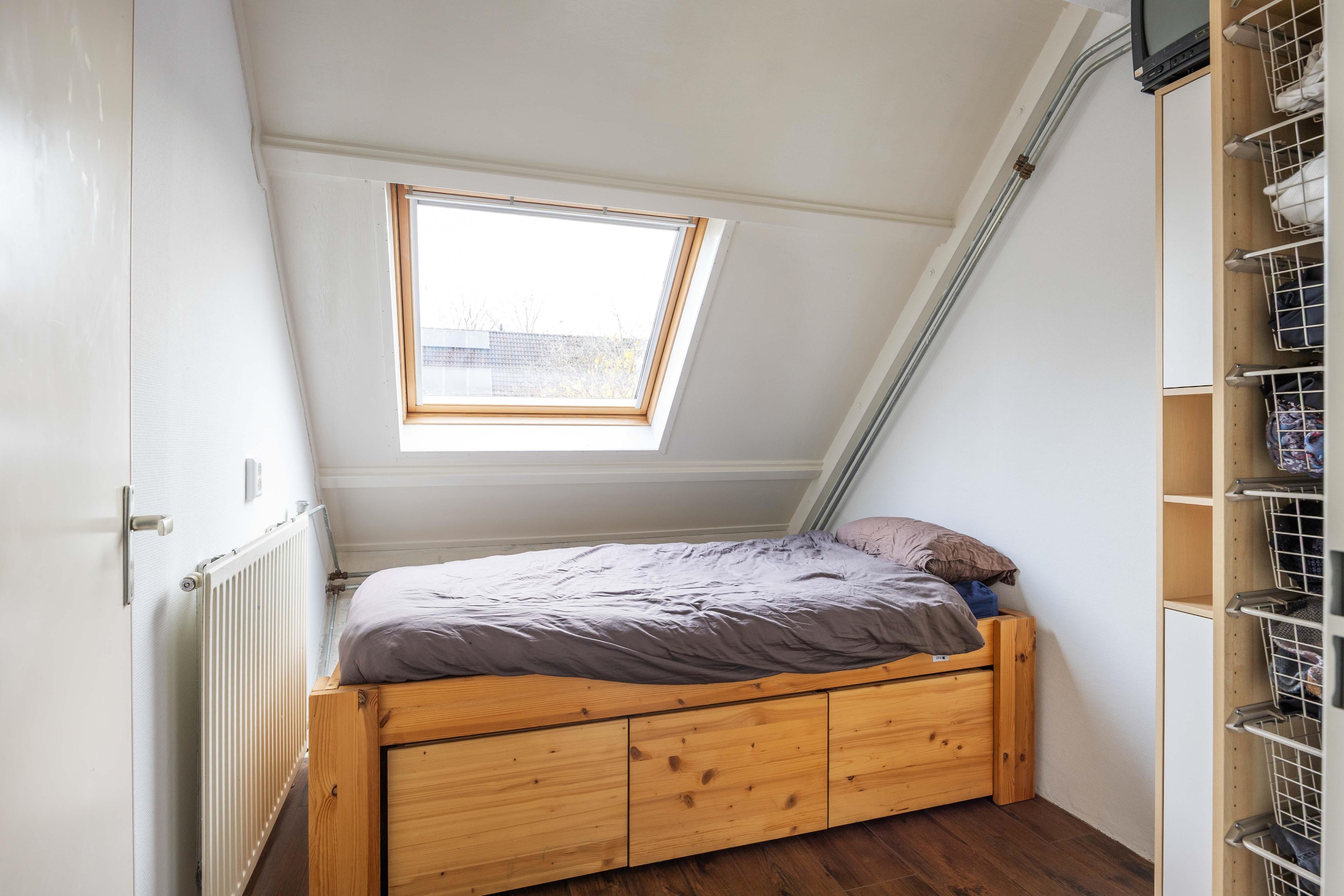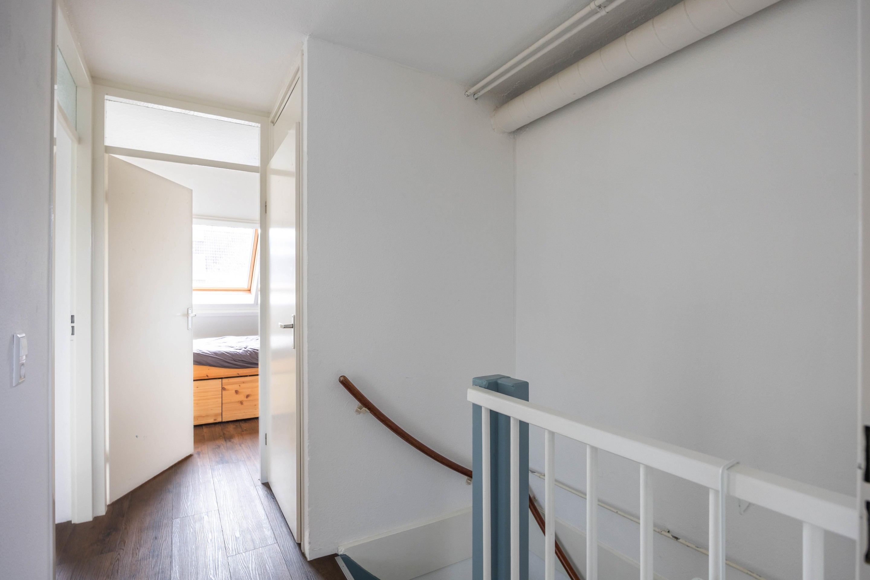 Eerste verdieping Overloop met toegang tot drie slaapkamers; aan de voorzijde de grootste slaapkamer, aan de achterzijde twee slaapkamers elke met een dakraam. Verder vind je op de eerste verdieping de badkamer voorzien van douche, wastafel en wasmachine aansluiting. Ook is er op de verdieping een bergkast met cv-opstelplaats en mechanische ventilatie box.