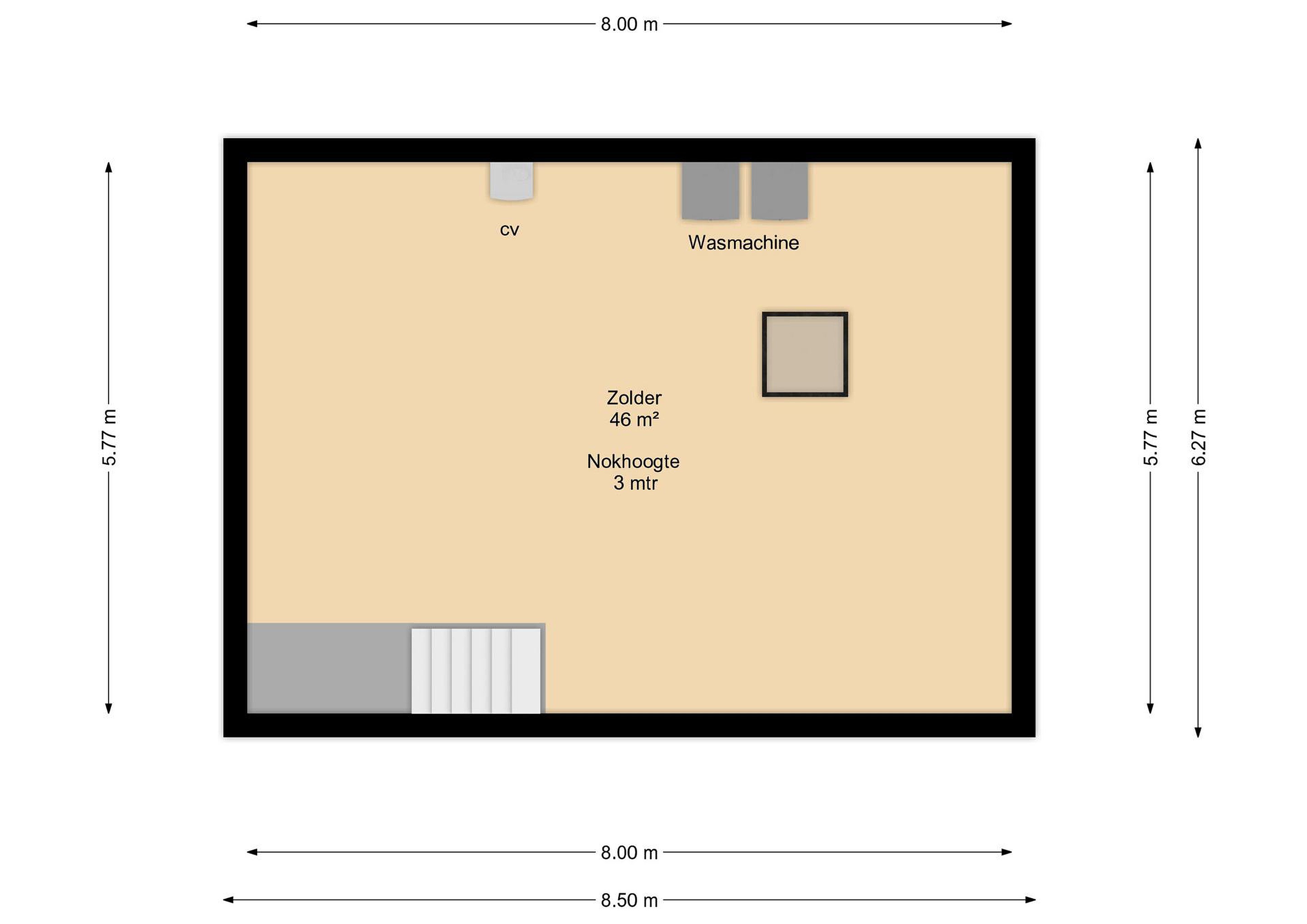 Via een vaste trap bereik je de ruime open zolderkamer met dakvenster.