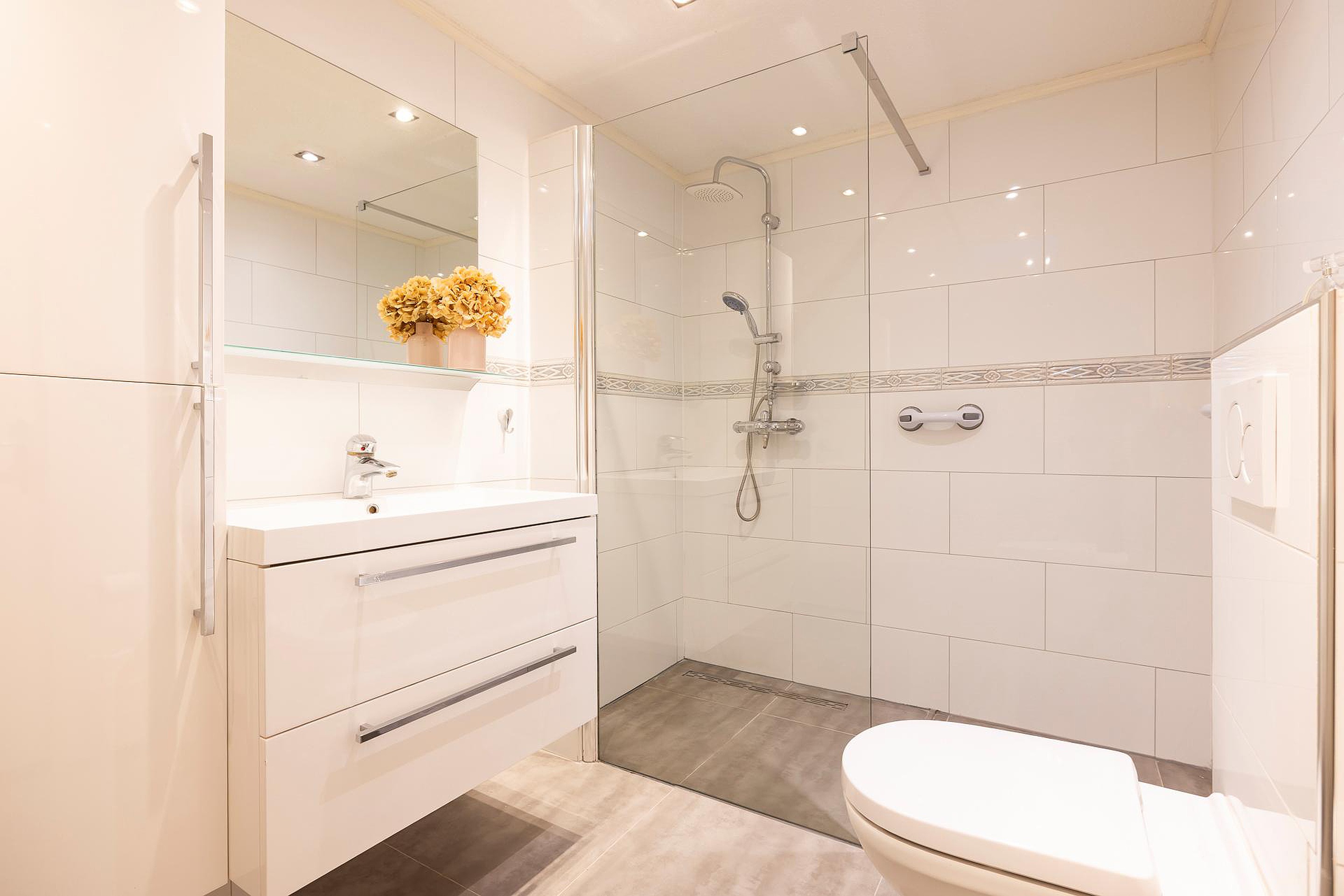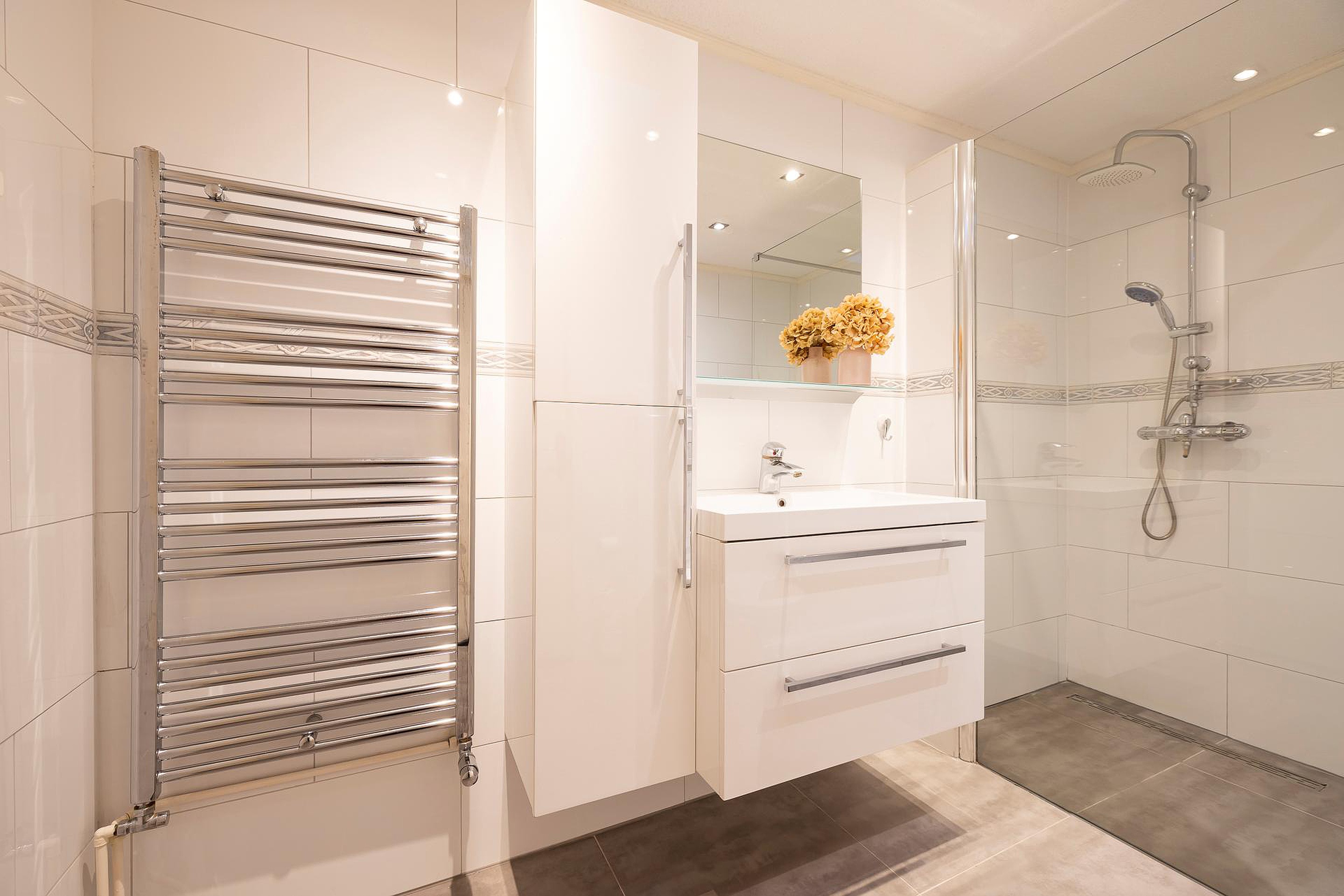 Op de eerste verdieping vind je de overloop met toegang naar de drie slaapkamers en de nette badkamer met douche en het tweede toilet. De slaapkamer aan de voorzijde is extra breed wat extra fijn is voor de kledingkasten. Aan de achterzijde zijn nog eens twee slaapkamers waarvan één toegang geeft tot het dakterras.