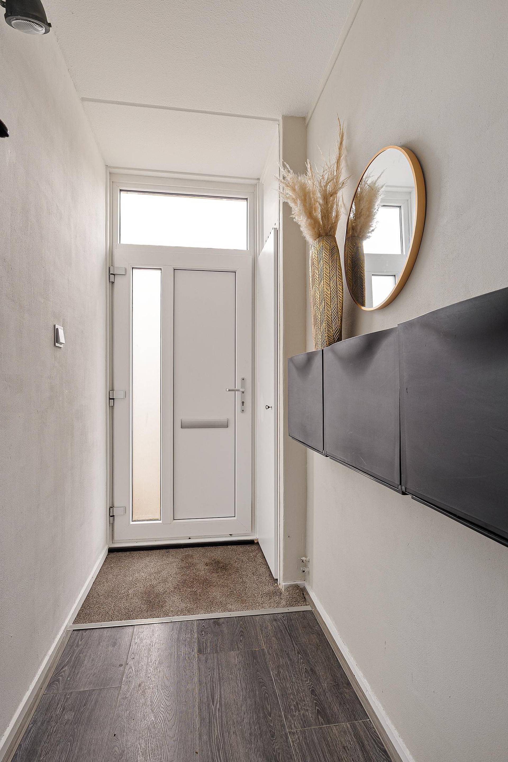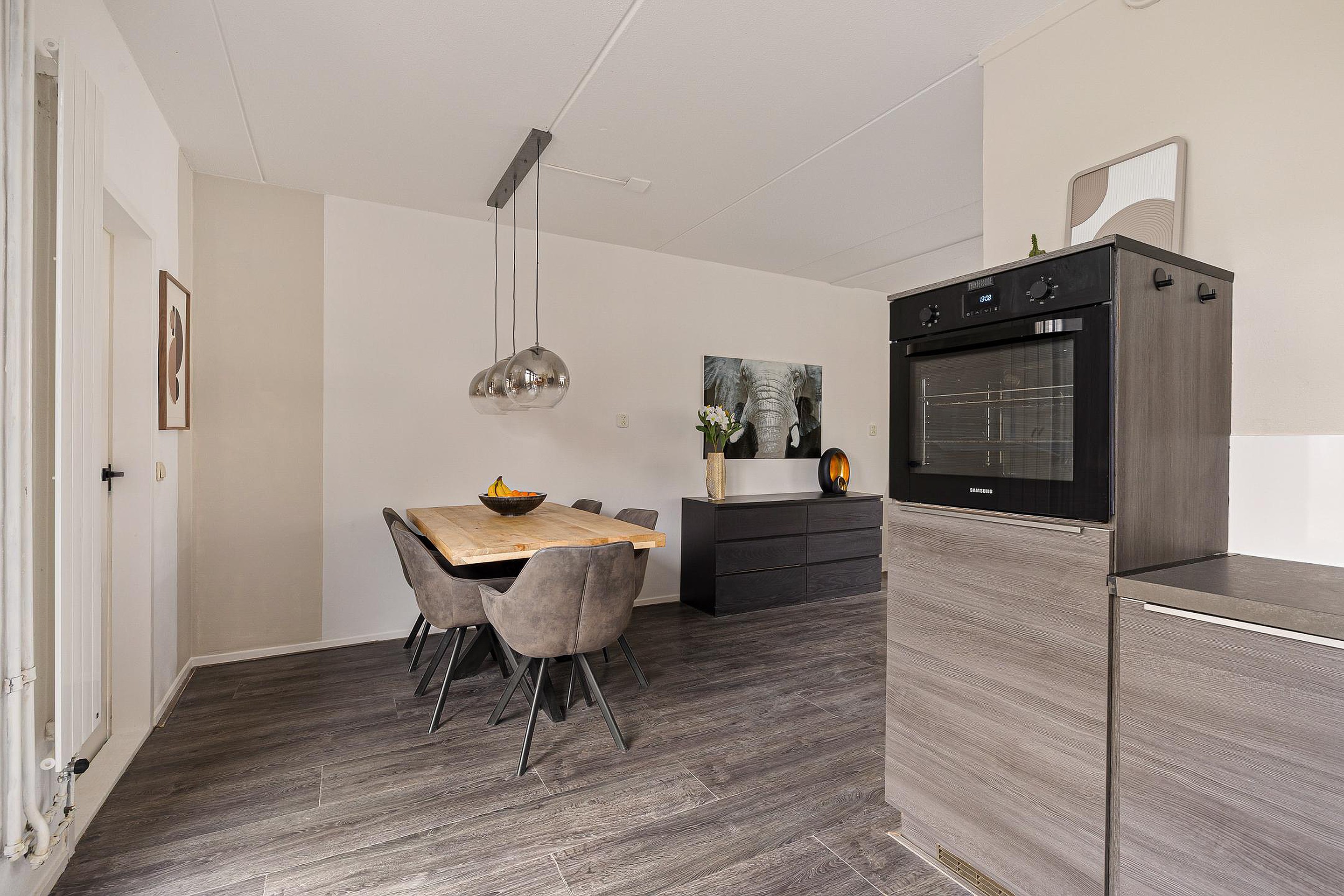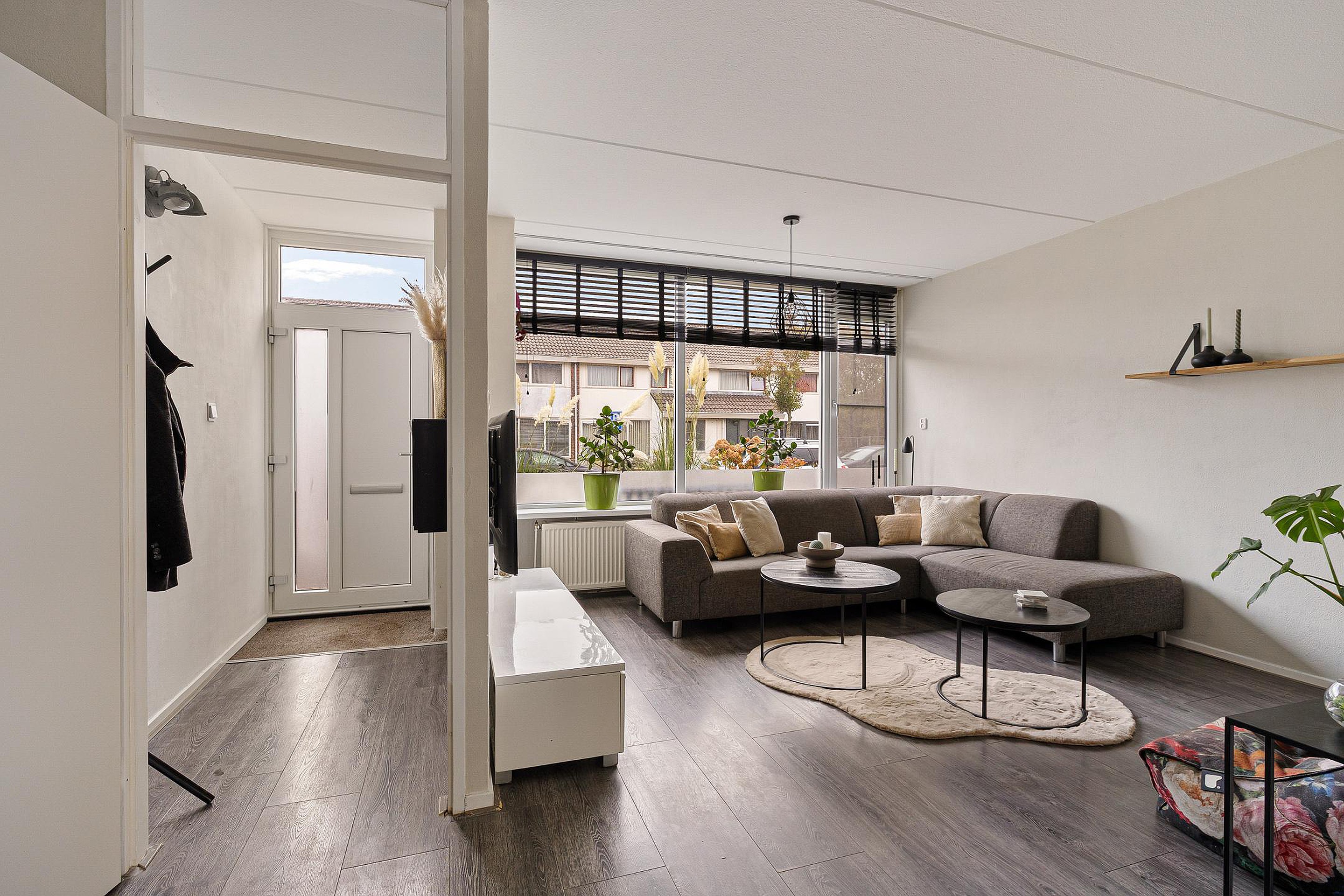 Via de entree kom je in de hal met toegang tot de lichte en ruime woonkamer. Aansluitend bevindt zich de moderne keuken, voorzien van diverse inbouwapparatuur en een schuifpui. De bijkeuken beschikt over een wasmachine- en drogeraansluiting, vlizotrap naar vliering en een deur naar de achtertuin.