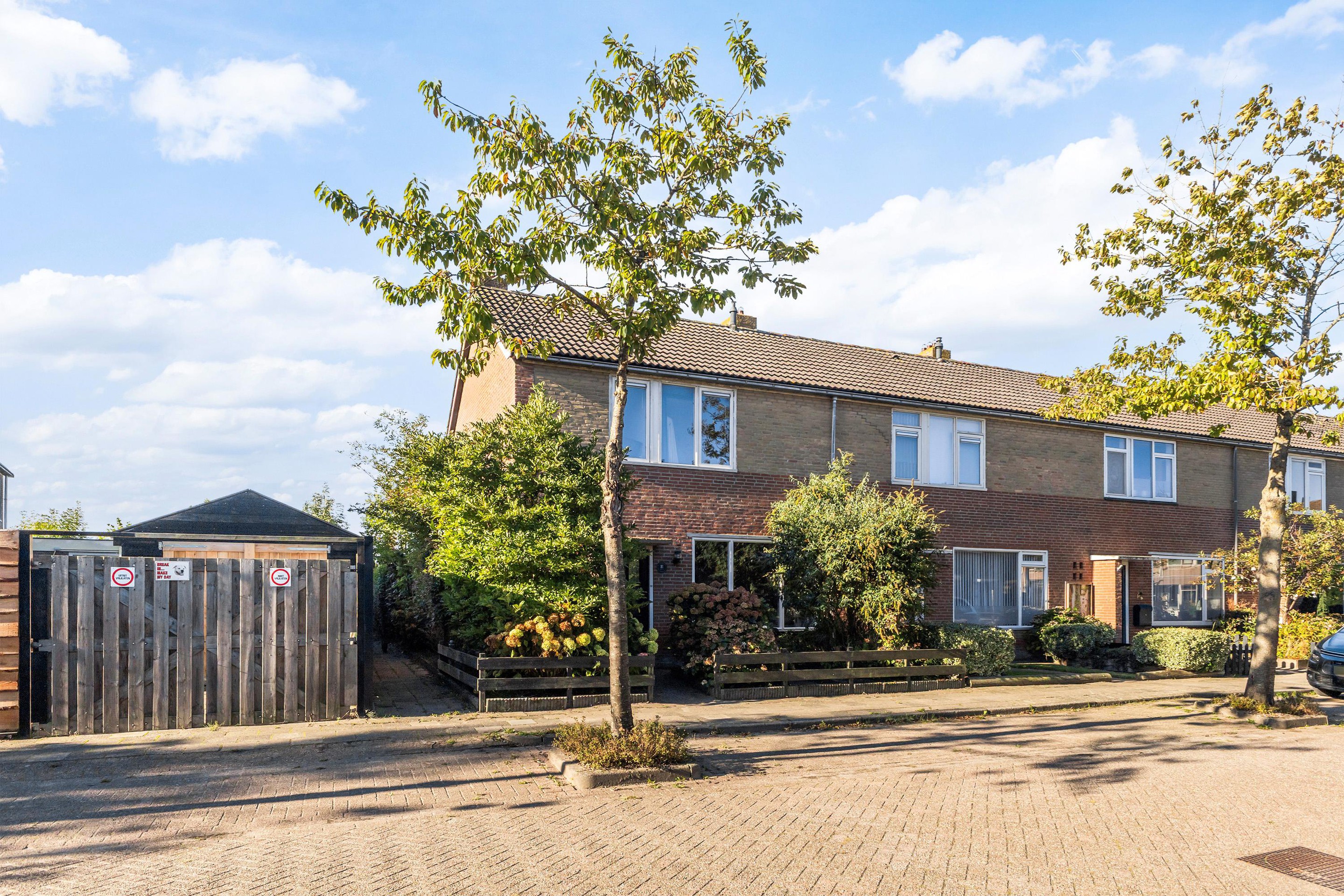 De achtertuin van deze woning is een echte plus! Dankzij de ligging op het zuidwesten geniet je hier van veel zonuren en kun je tot in de avond heerlijk buiten zitten. De tuin is volledig omheind met een groene haag en houten schutting, waardoor je volop privacy hebt en kinderen of huisdieren veilig kunnen spelen. Het ruime terras direct achter de woning biedt volop plek voor een eettafel of gezellige picknicktafel, perfect voor lange zomeravonden of een barbecue met vrienden. Verderop in de tuin is een tweede terras aangelegd waar nu een comfortabele loungehoek staat. Zo kun je op elk moment van de dag kiezen tussen zon of schaduw.Het praktische van deze tuin is dat hij grotendeels is bestraat, waardoor je weinig onderhoud hebt, maar er is ook een stuk gazon aanwezig dat zorgt voor een groene uitstraling en waar kinderen kunnen spelen. Daarnaast is er voldoende ruimte om nog een speeltoestel, trampoline of een tuinhuis te plaatsen. De tuin is bovendien achterom bereikbaar, wat handig is voor fietsen, afvalcontainers of tuinspullen. Kortom: een ruime, zonnige en onderhoudsvriendelijke achtertuin met veel privacy en mogelijkheden, waar je optimaal kunt genieten van het buitenleven!