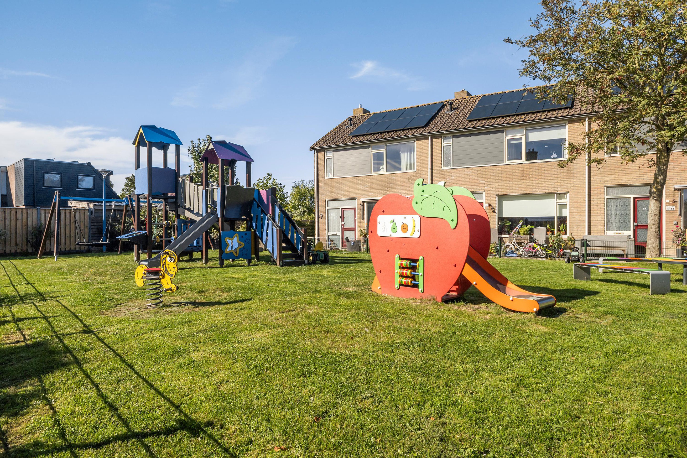 It Apelhôf is een rustige en kindvriendelijke straat in Hallum. Voor de kinderen is er een speeltuin om de hoek en ook kinderopvang en basisscholen zijn dichtbij. Hallum zelf is een levendig dorp met alle voorzieningen die je nodig hebt: supermarkten, sportverenigingen, een zwembad en een rijk verenigingsleven. Bovendien ben je met de auto binnen ca. 20 minuten in Leeuwarden en Franeker. Ook Dokkum en de Waddenkust zijn goed bereikbaar, waardoor je hier het beste van twee werelden ervaart: rustig wonen met stad en natuur dichtbij.