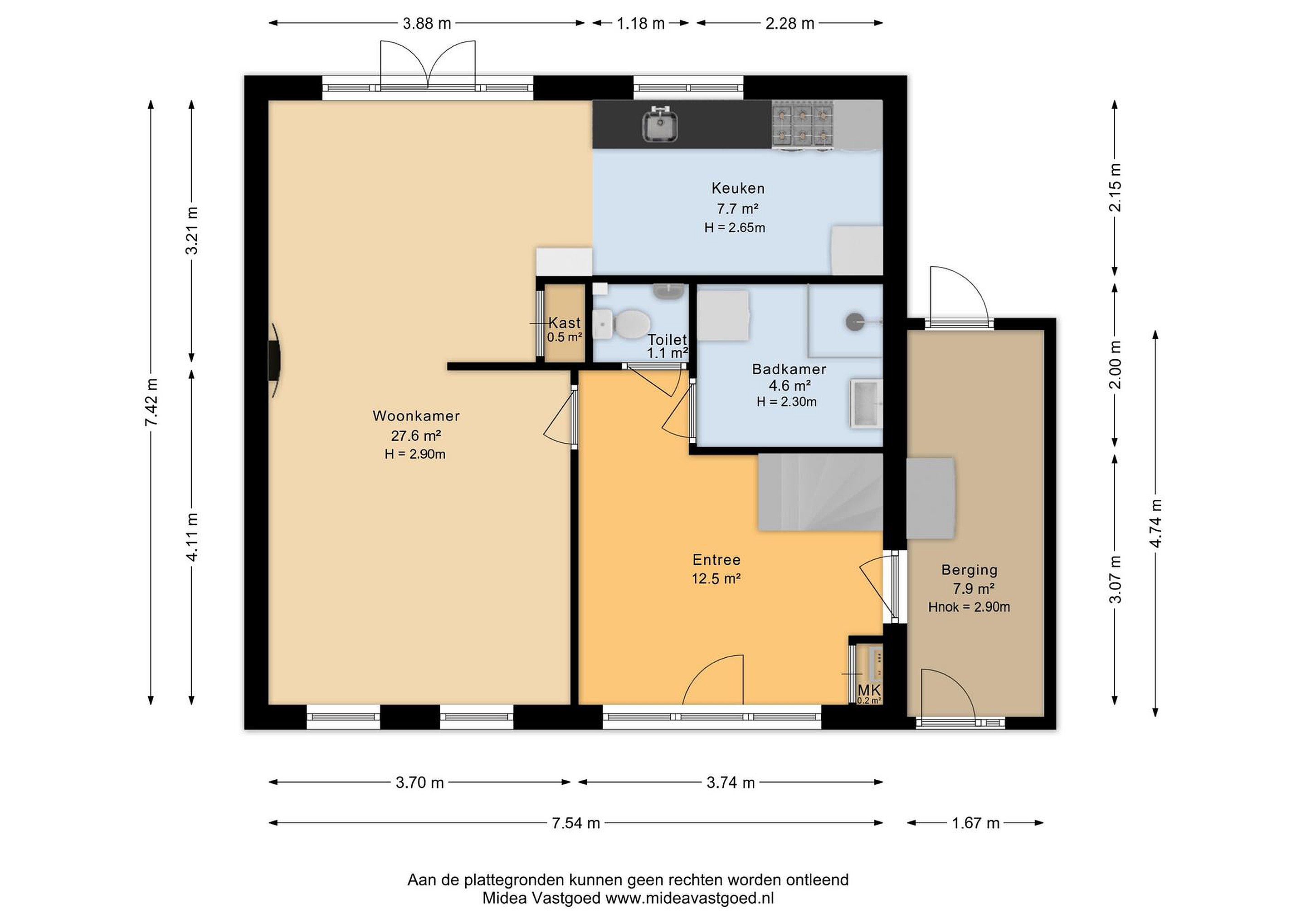 Deze informatie is door ons met de nodige zorgvuldigheid samengesteld, veelal aan de hand van de door verkoper aan ons ter hand gestelde gegevens en tekeningen. Onzerzijds wordt echter geen enkele aansprakelijkheid aanvaard voor enige onvolledigheid, onjuistheid of anderszins, dan wel de gevolgen daarvan. Dit geldt voor onder meer de opgegeven maten, oppervlakten, isolatie en ouderdom van technische installaties.