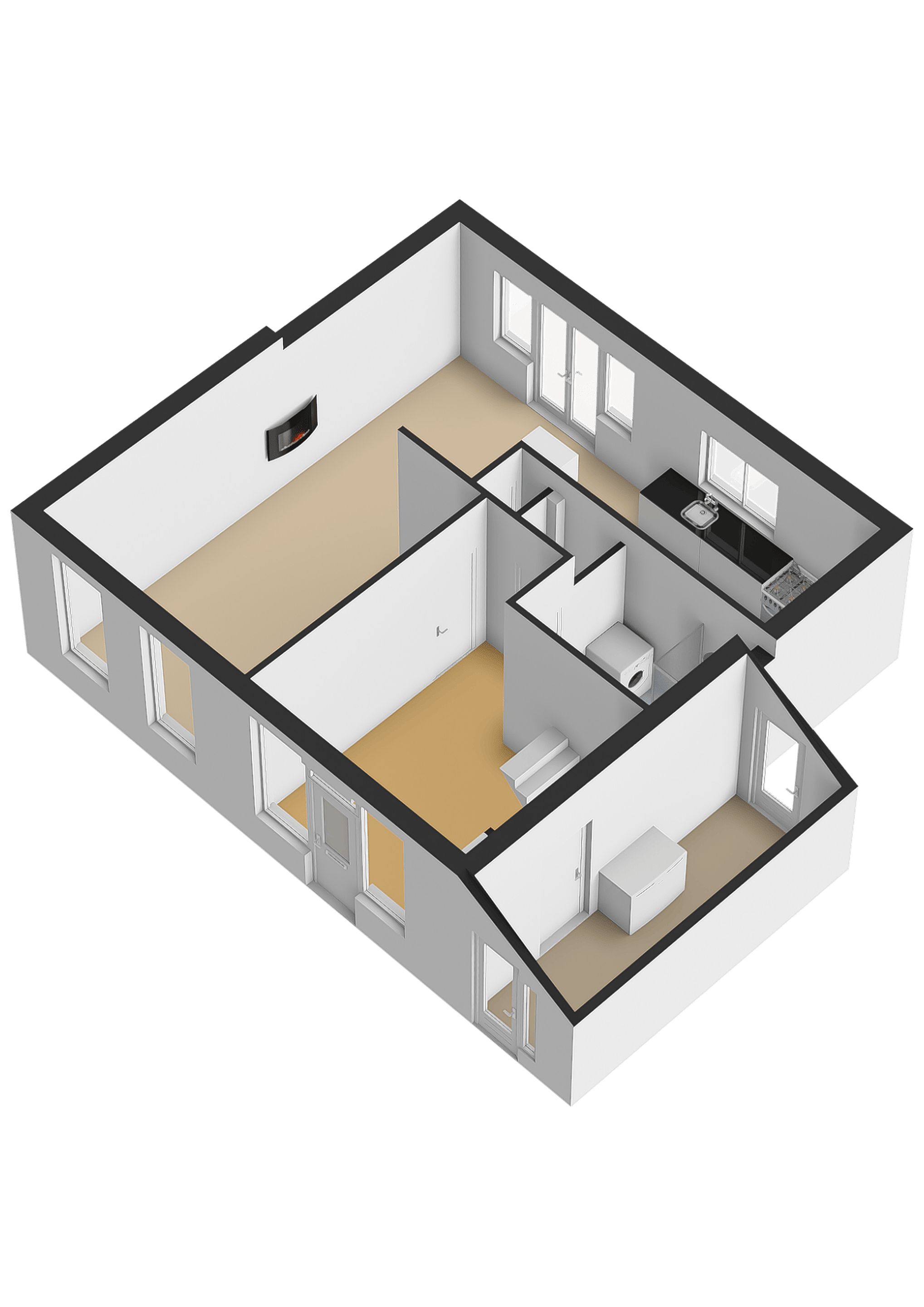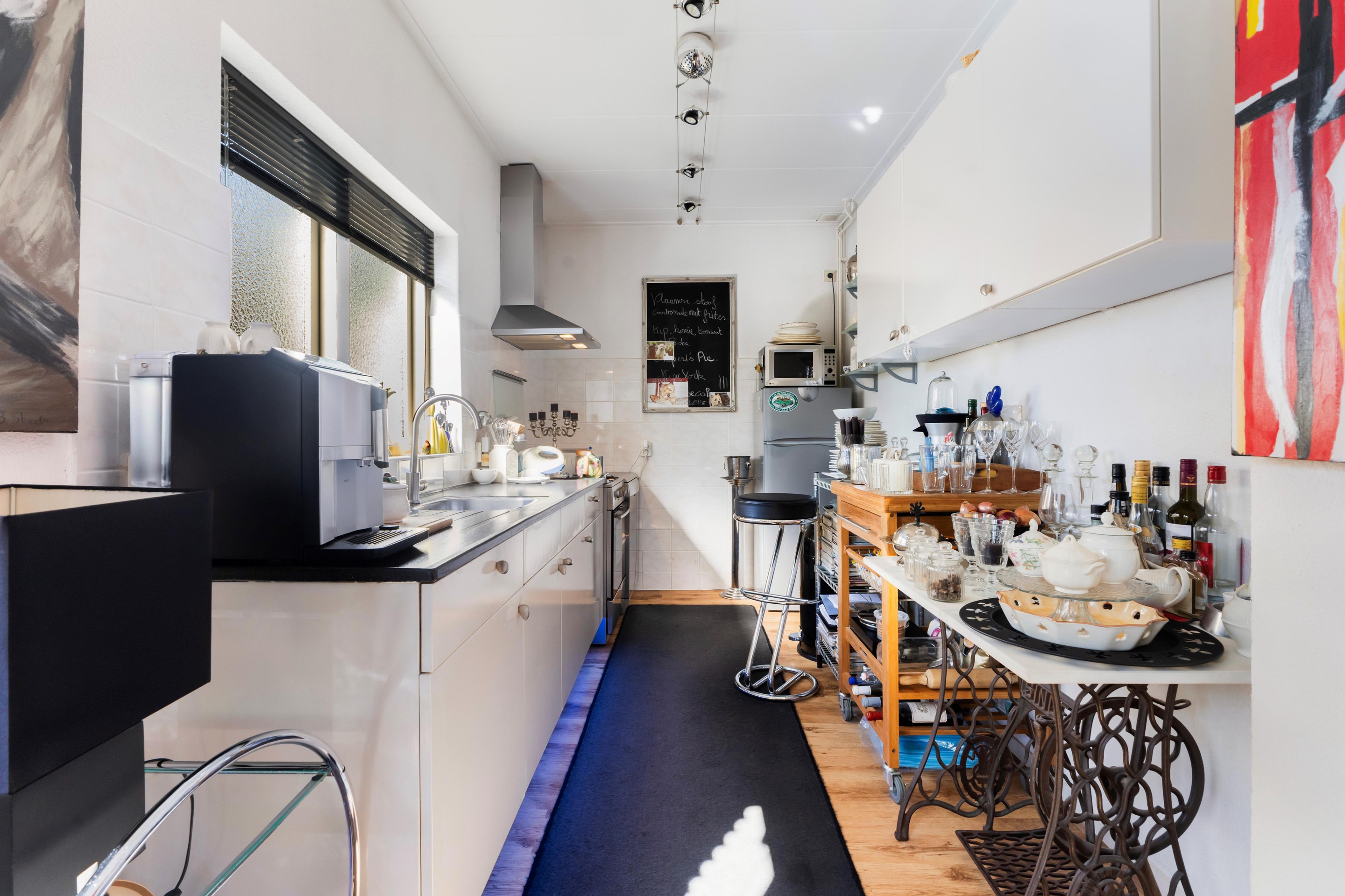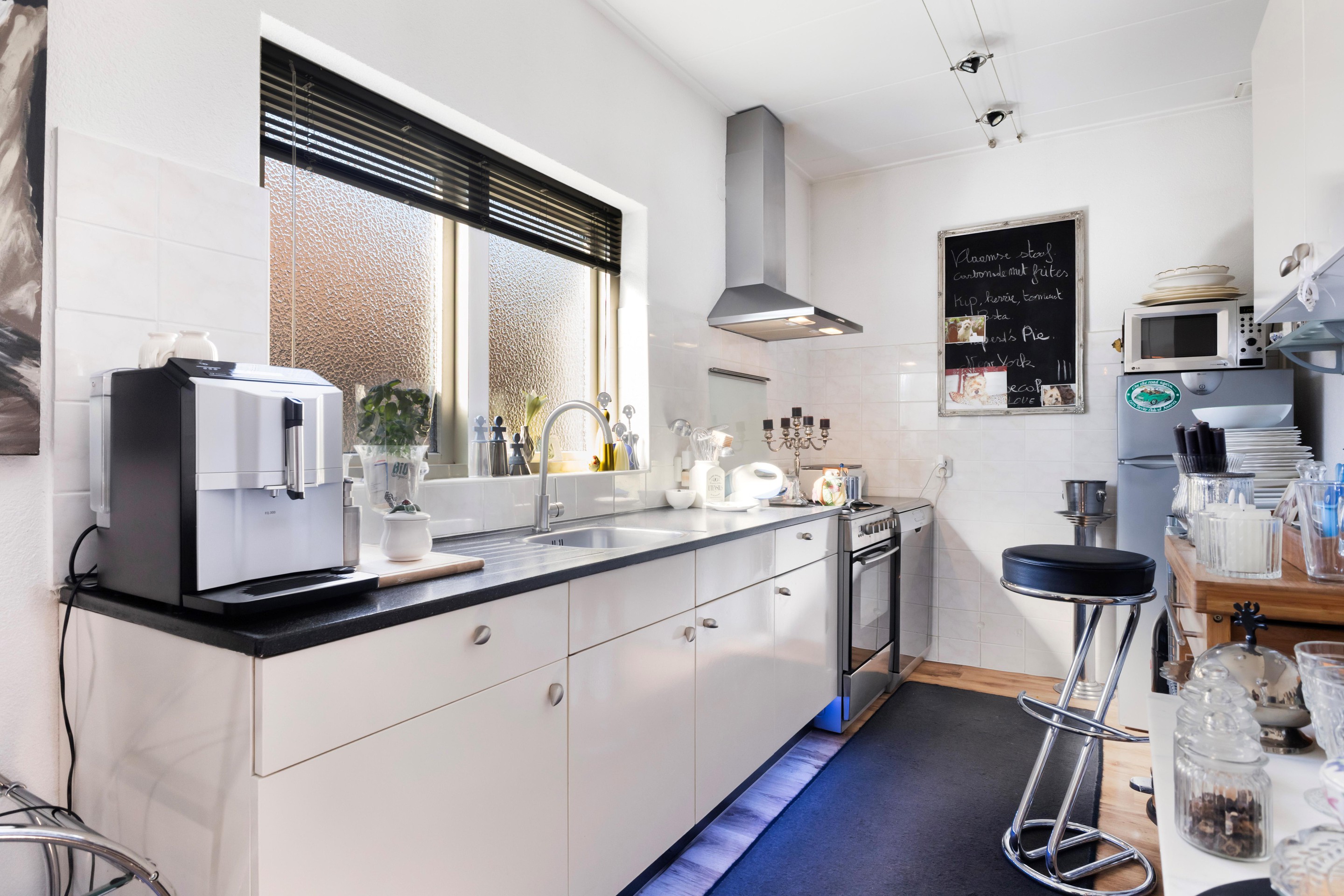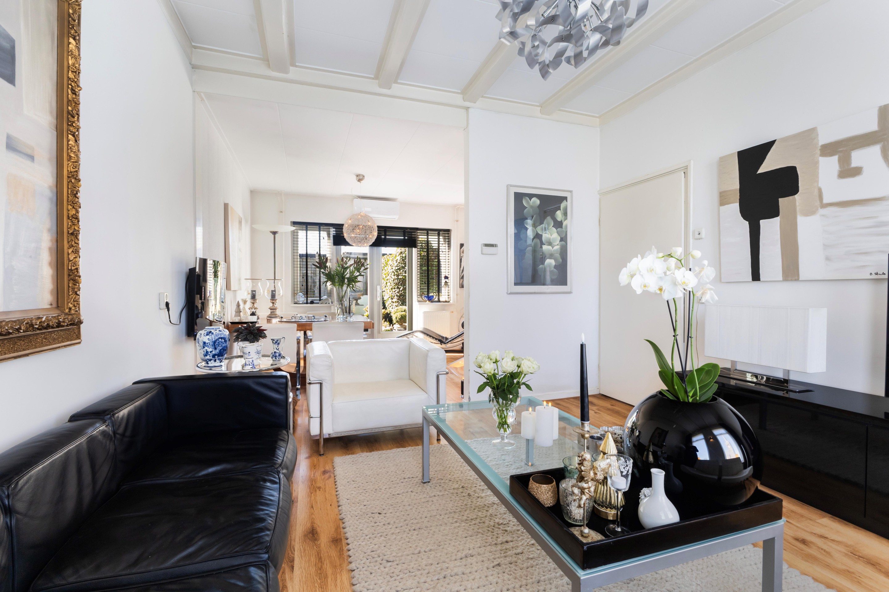 Je komt binnen in de ruime entree/hal, waar direct de prettige lichtinval opvalt. Vanuit hier heb je toegang tot de woonkamer, het toilet en de badkamer. De woonkamer is een heerlijke leefruimte met grote raampartijen en een fijne indeling voor zowel een zit- als eetgedeelte. De openslaande deuren vormen hier echt een pluspunt: je loopt zo de achtertuin in, waar een sfeervolle vlonder ligt en je volop kunt genieten van het buitenleven. Aansluitend bevindt zich de moderne keuken, uitgevoerd in een strakke opstelling en voorzien van diverse inbouwapparatuur. Een praktische en lichte ruimte waar koken en gezelligheid samenkomen.