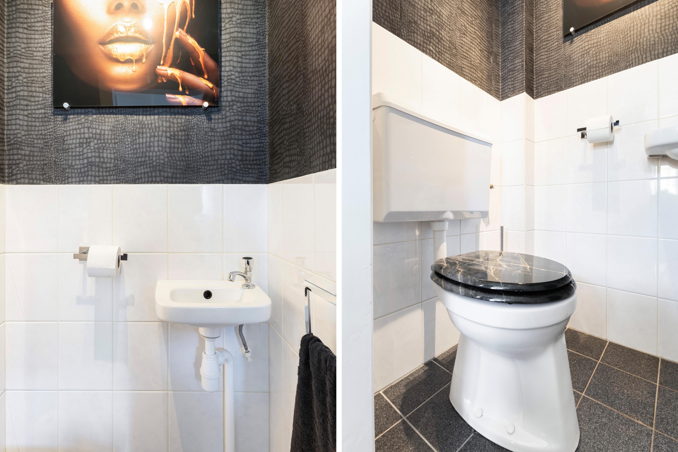 De badkamer op de begane grond is modern afgewerkt en beschikt over een inloopdouche, wastafel en wasmachineaansluiting. Ideaal en toekomstbestendig. Daarnaast is er een separaat toilet aanwezig.