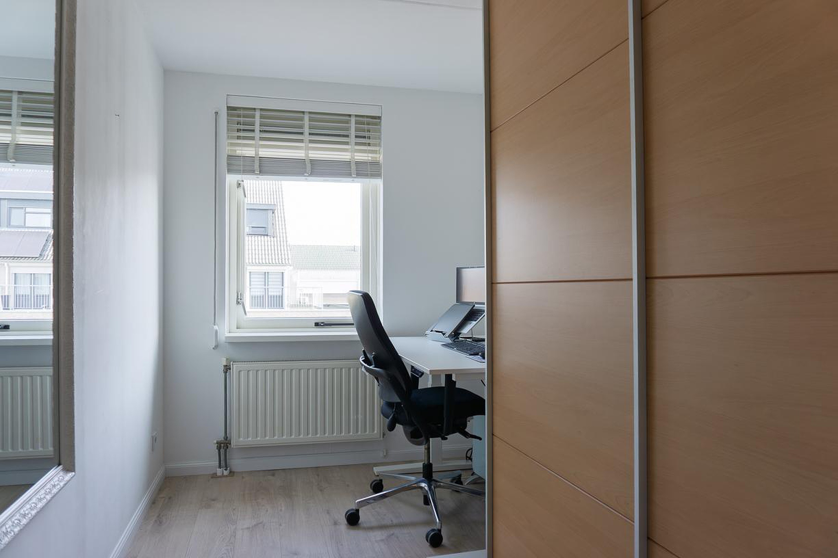 Deze slaapkamer is eveneens aan de achterzijde gelegen naast slaapkamer 1. De slaapkamer is nu in gebruik als werk-/kastenkamer. De afwerking is gelijk aan die van slaapkamer 1.