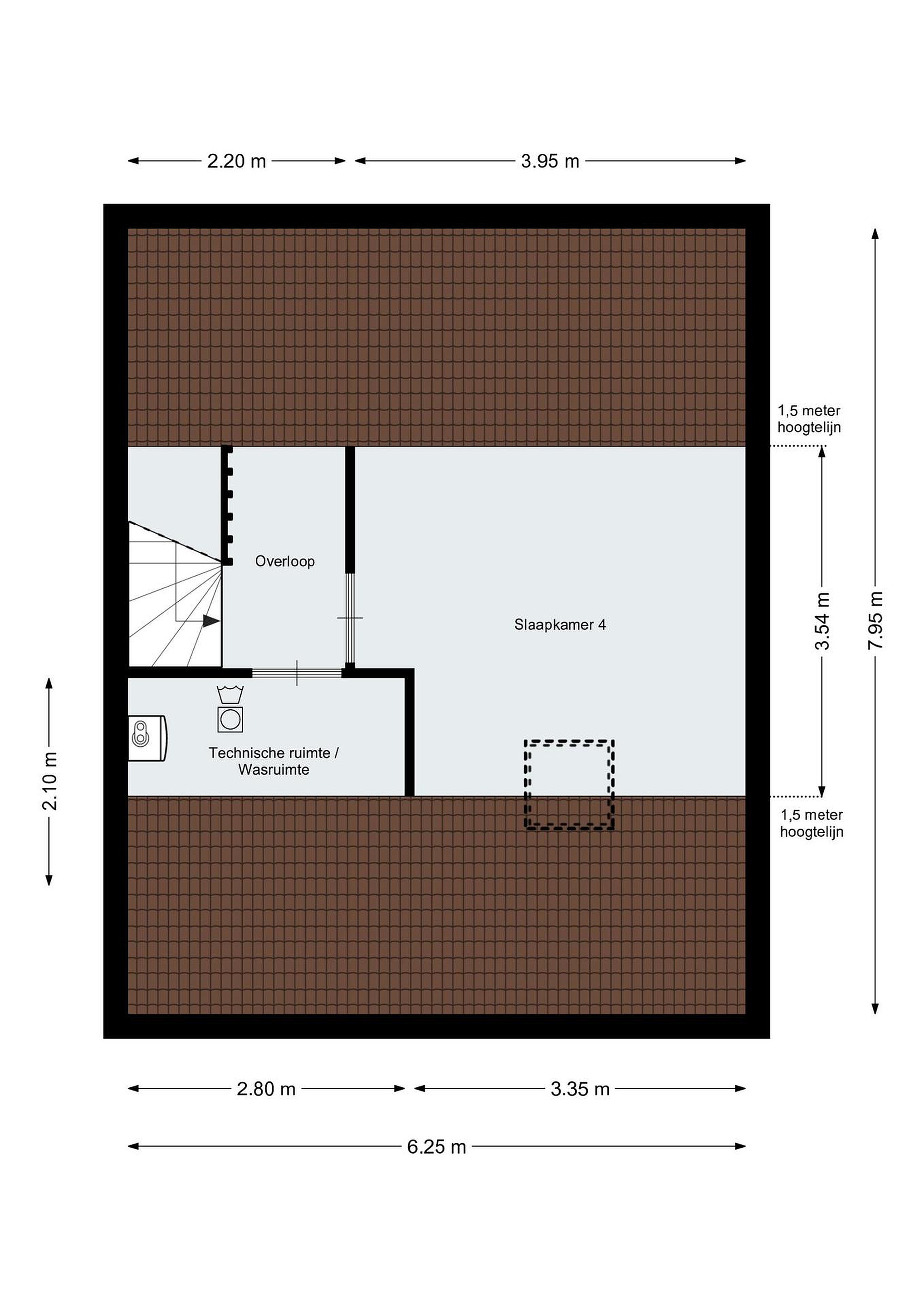 De compactste kamer is zeker niet klein te noemen. Met ruim 9,5 m2 is het nog steeds een ruime kamer die prettig in te delen is met een bed, kledingkast en bureau. Een fijne kinderkamer die eventueel ook goed kan worden gebruikt als royale werkkamer voor de thuiswerkers onder ons.