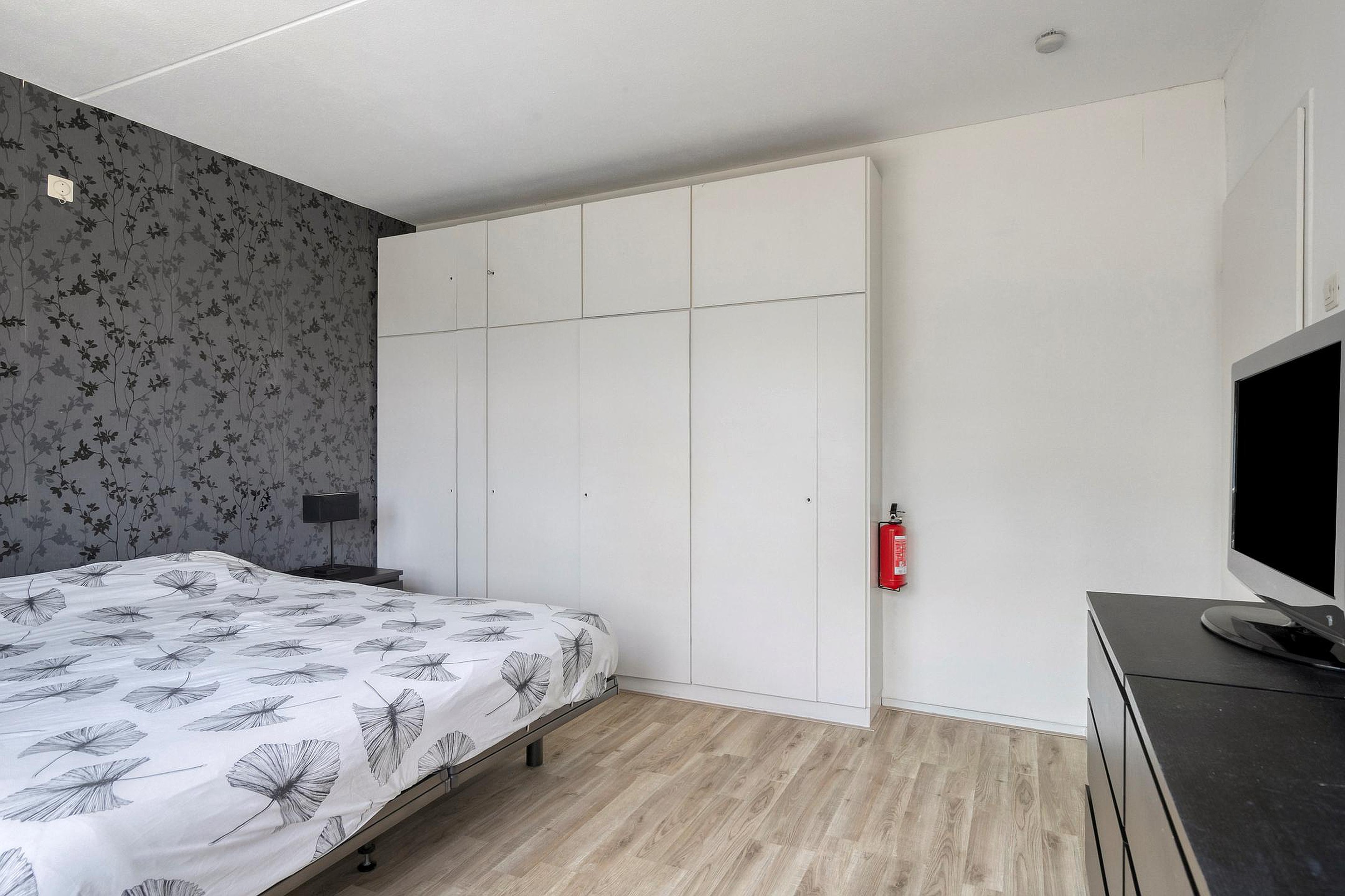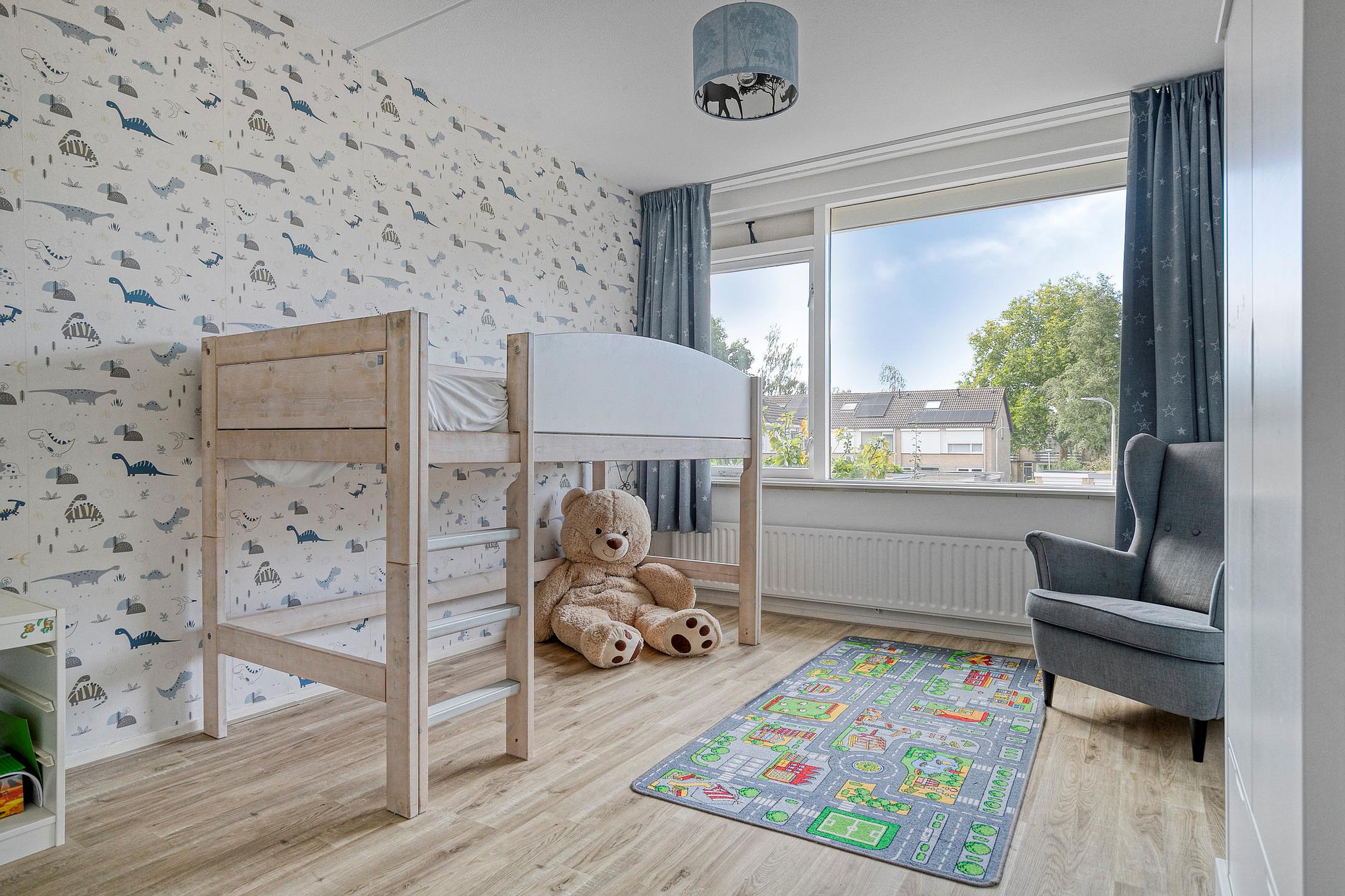 Flinke slaapkamer welke aan de achterzijde van de woning is gelegen. Met ruim 15 m2 vloeroppervlakte kun je hier echt veel in kwijt en blijft er lekker veel speelruimte over. Via het royale raampartij kan het daglicht goed binnenkomen en is er zicht op de achtertuin. Ook deze kamer profiteert van de vaste kastenwand.