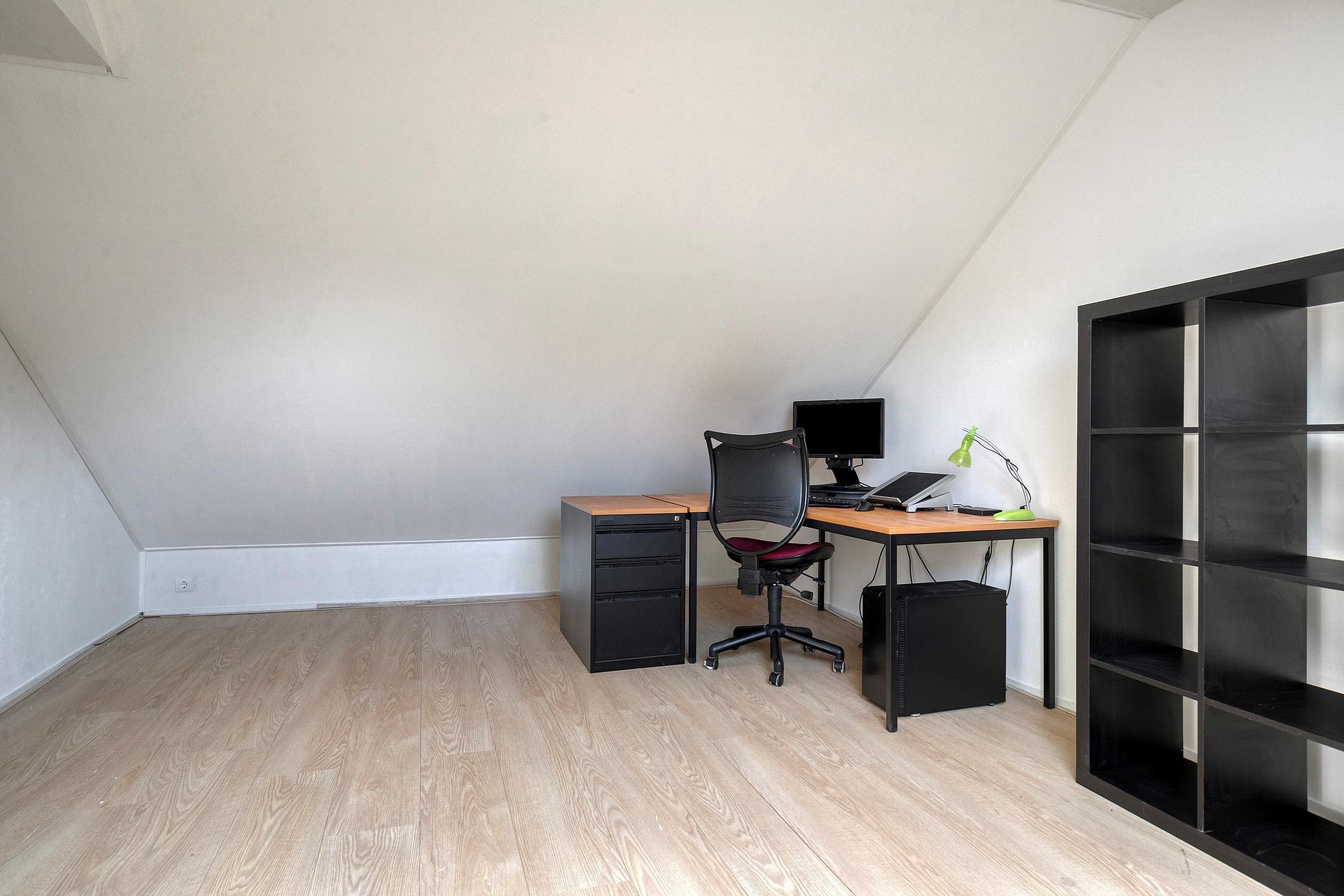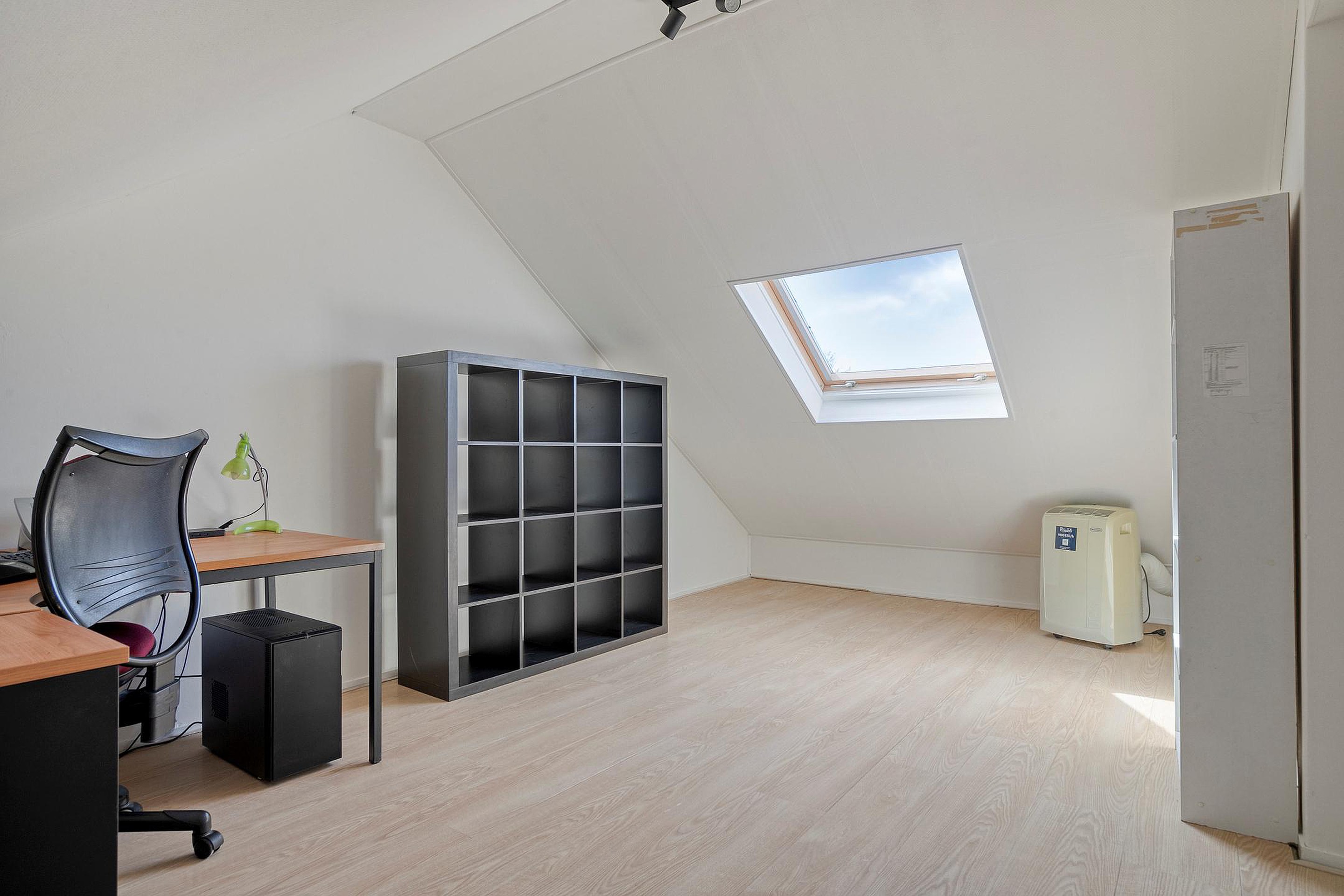 Deze grote zolderkamer is een frisse en ruime slaapkamer, perfect als extra slaap- of werkkamer. Dankzij het dakraam komt er veel licht binnen. Menig tiener zal deze kamer wel in beslag willen nemen. Mocht het nog niet groot genoeg zijn, dan plaats je hier vrij makkelijk een dakkapel.