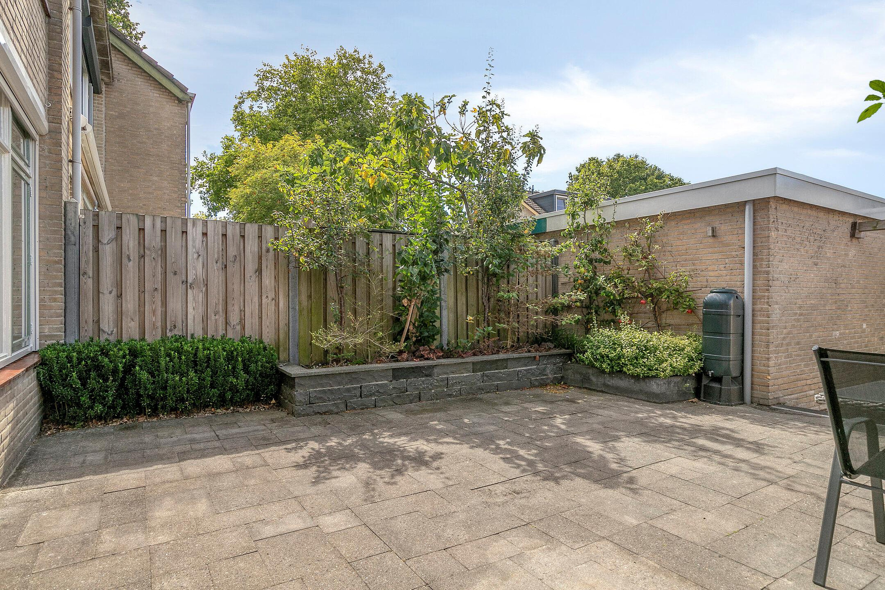 De voortuin (afm. ca. 6.25 x 4.00) is een verzorgd visitekaartje van de woning. Met mooie tuinborders, voorzien van boompjes waarmee de inkijk en de zon wat wordt geweerd. De sierbestrating zorgt dat het ook nog eens onderhoudsarme tuin is en nog steeds een sfeervolle uitstraling heeft. Dit maakt tuin en woning direct uitnodigend aan.