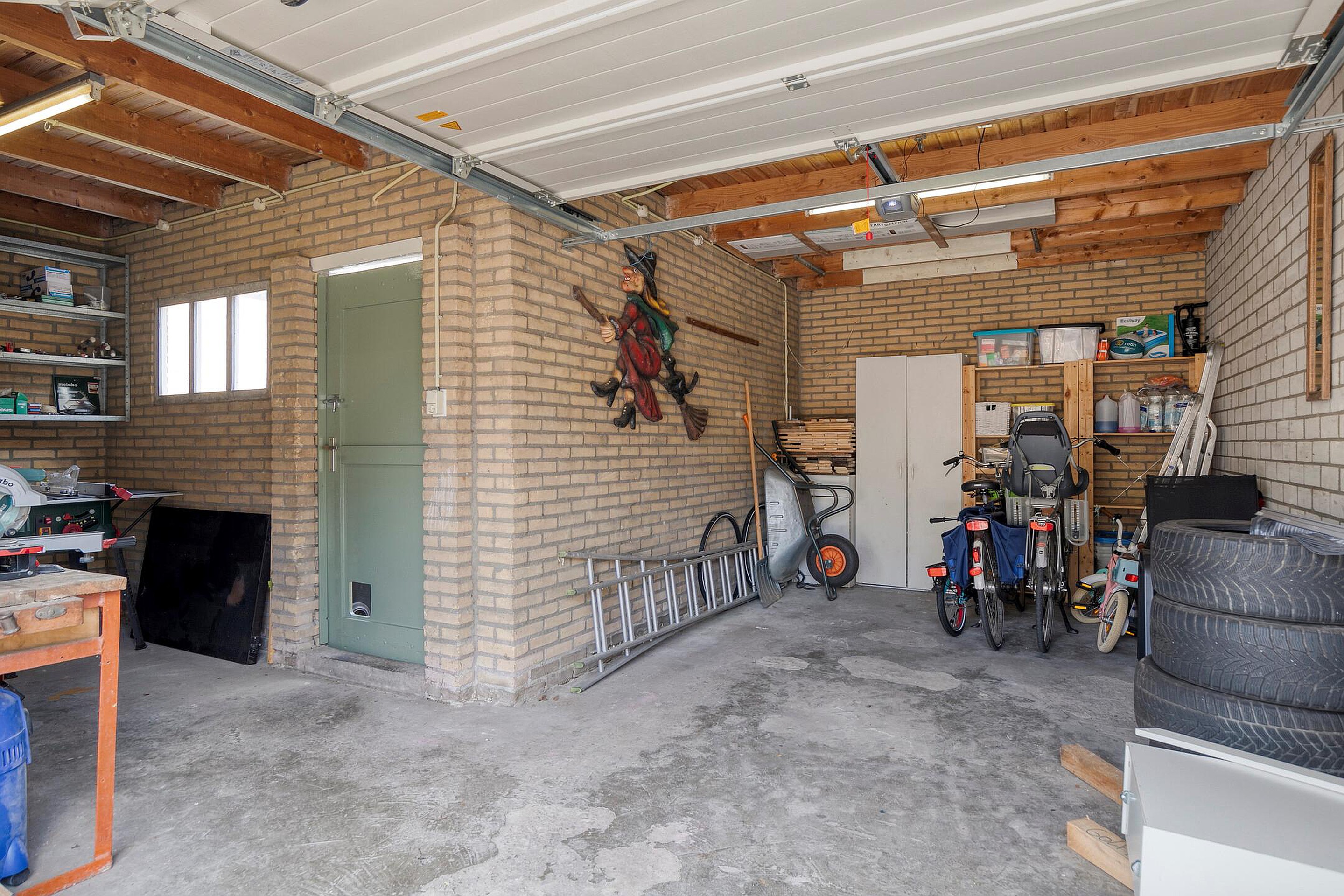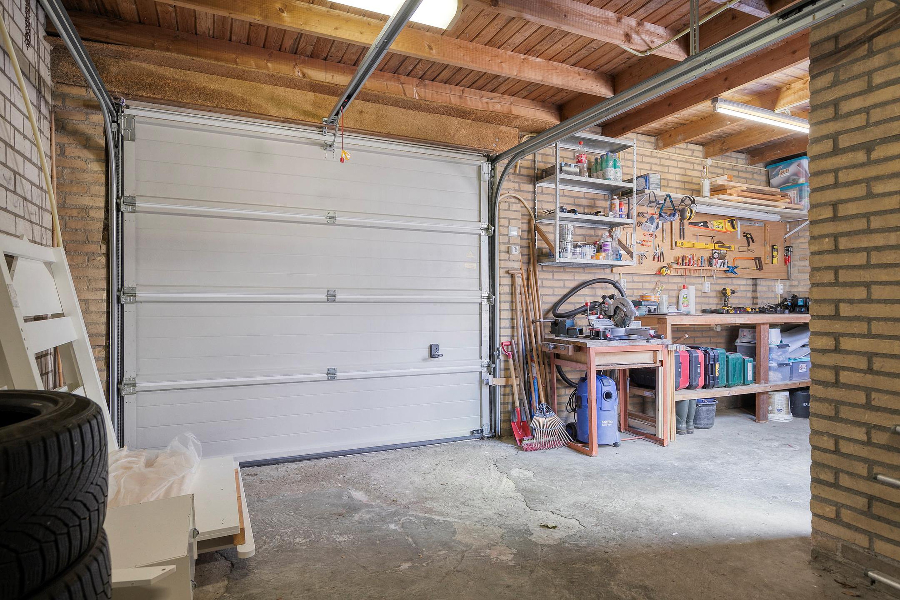 De berging en garage zijn aan elkaar verbonden. Zo is er een mooie plek voor het stallen van de fietsen en om lekker te klussen terwijl je de garage volledig kan worden gebruiken om de auto te parkeren. Wel zo praktisch allemaal. De ruimte is voorzien van elektra en de sectionale garagedeur die elektrisch bedienbaar is.