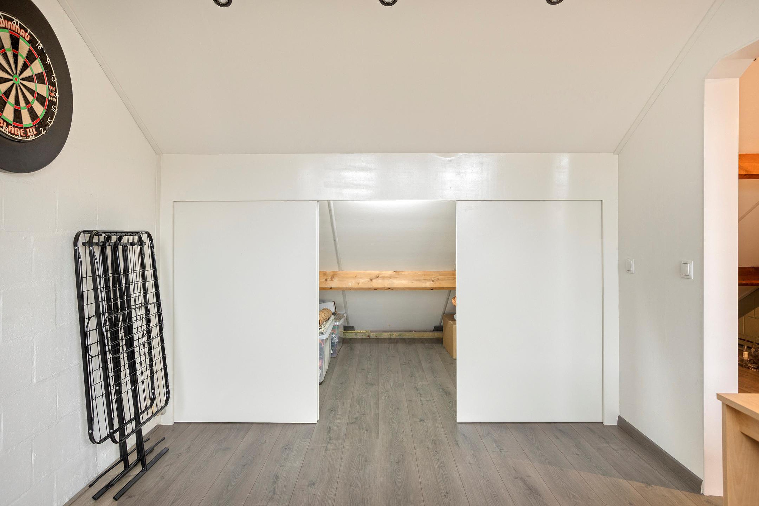 De tweede verdieping biedt een voorzolder en een lichte, derde slaapkamer met vaste kastruimte: een fijne plek voor een tienerkamer, logeerkamer of rustige werkplek.