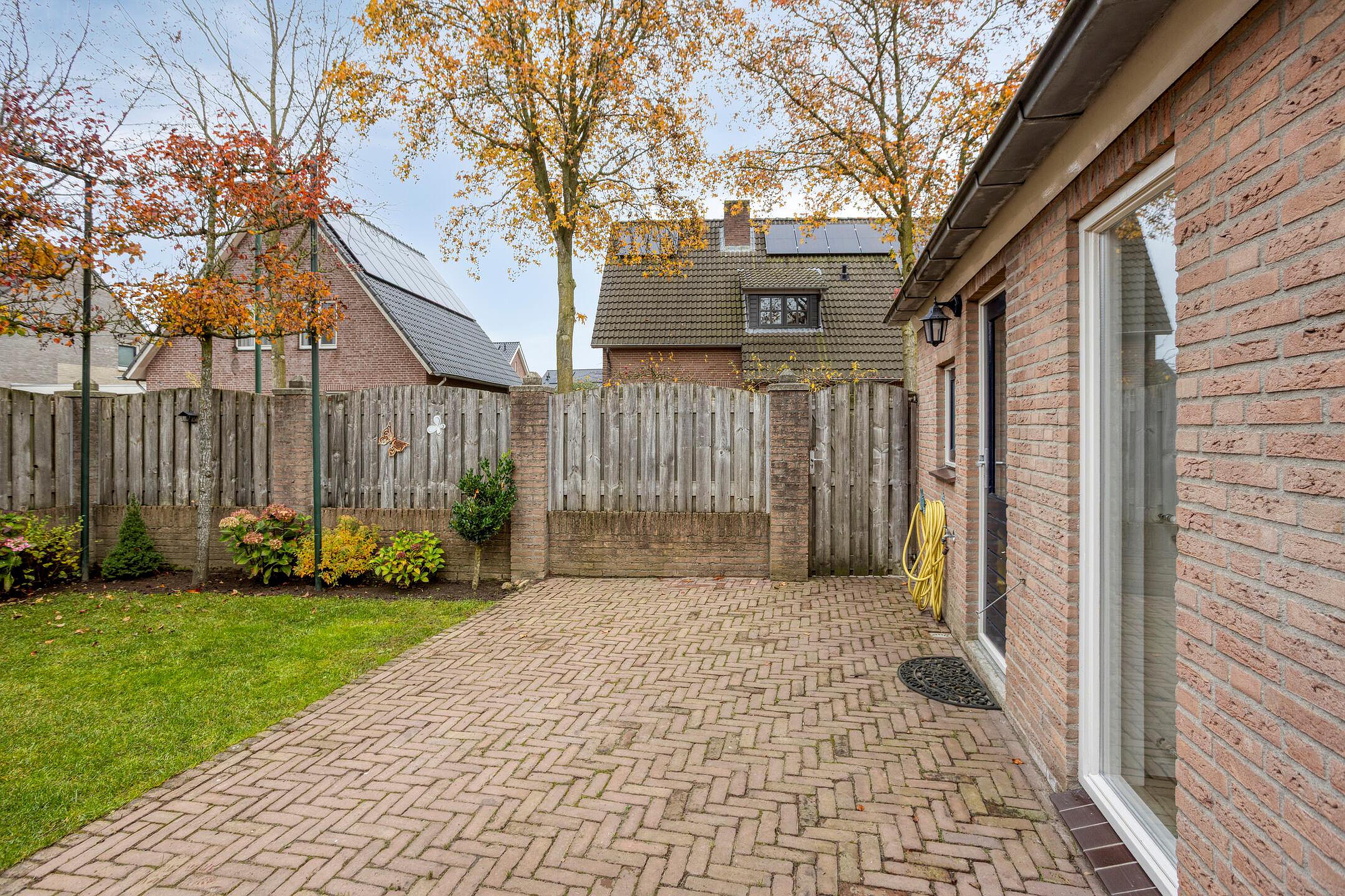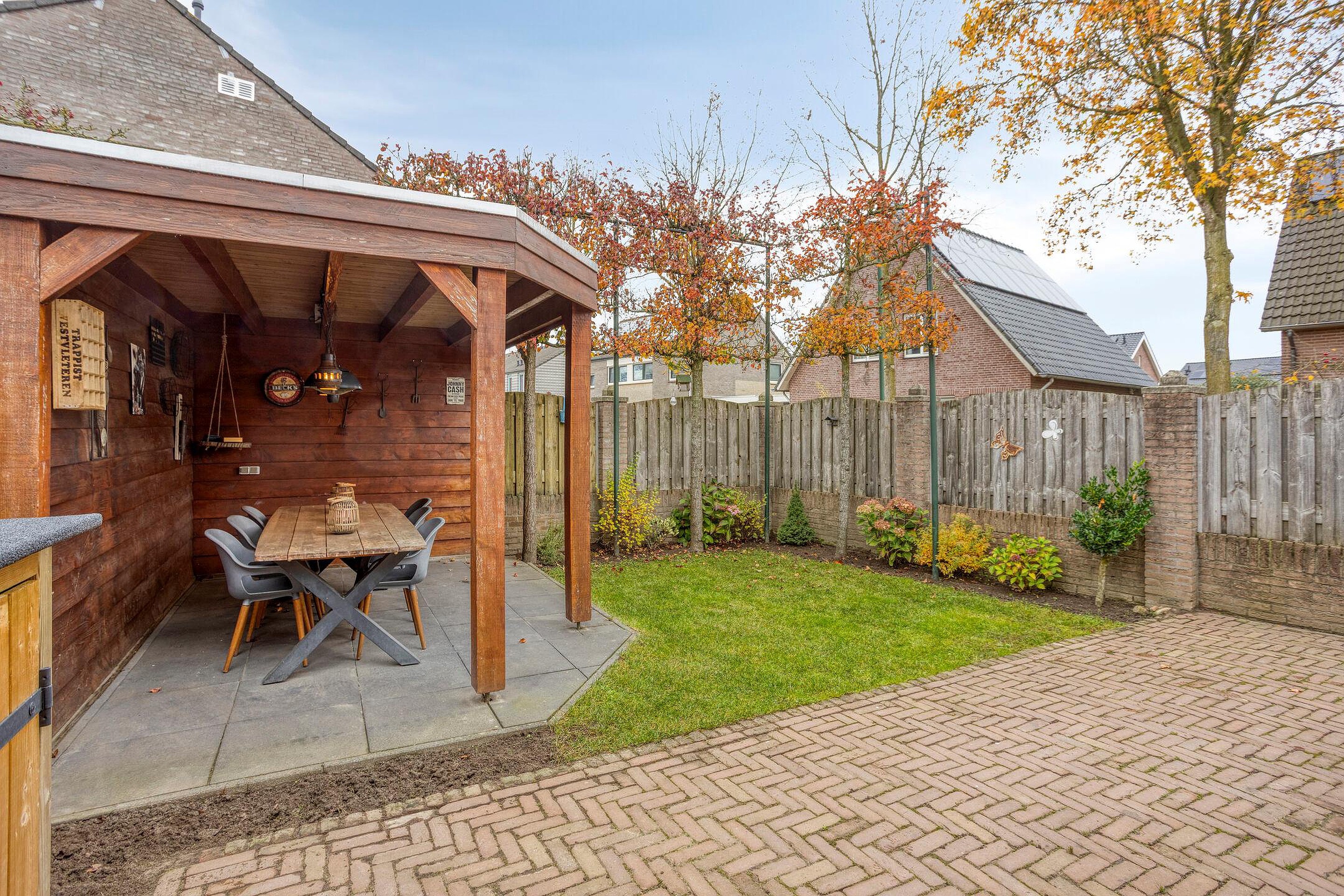 De achtertuin is gelegen op het noorden. De tuin is vrij gelegen en beschikt over een achterom en een fraaie veranda.