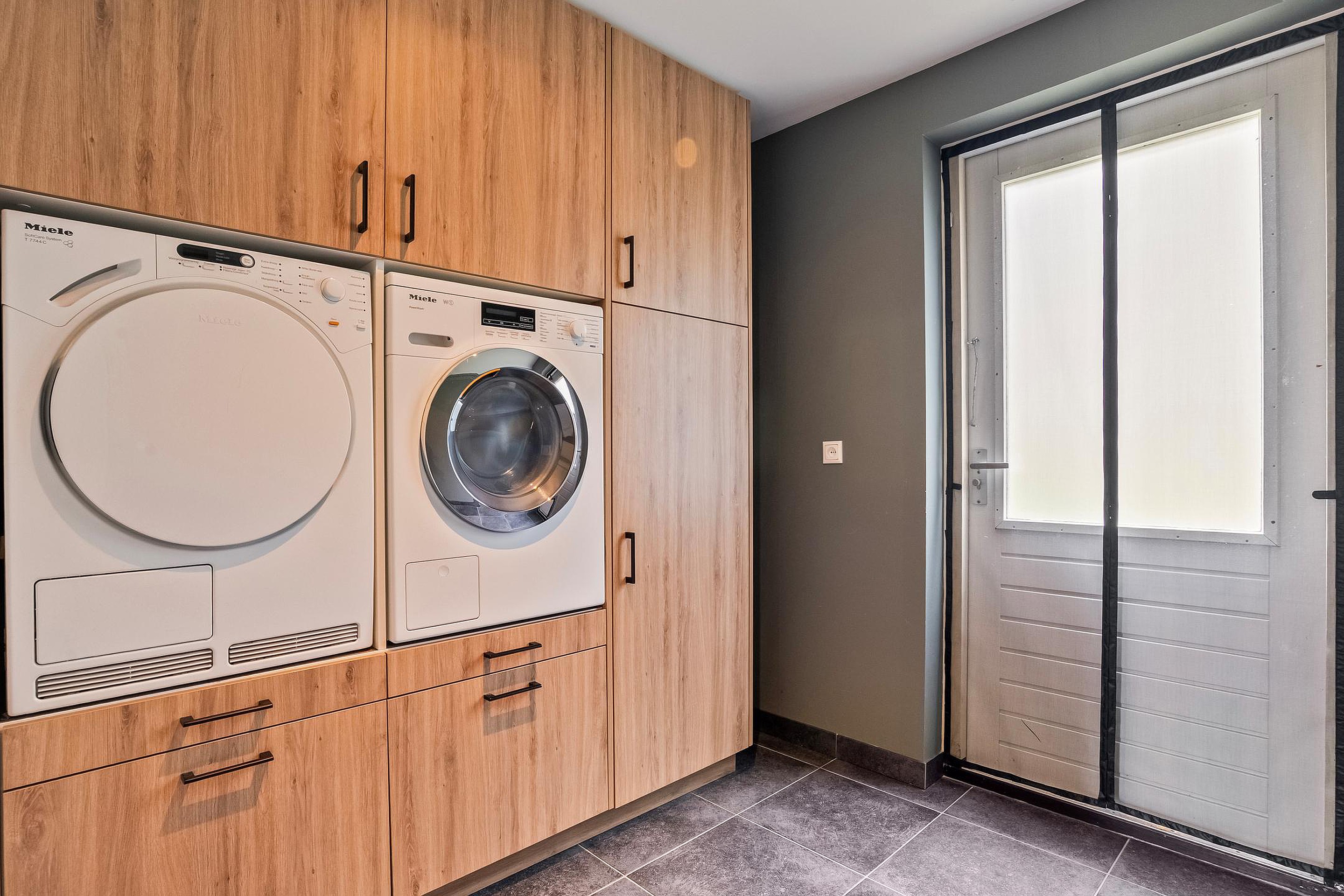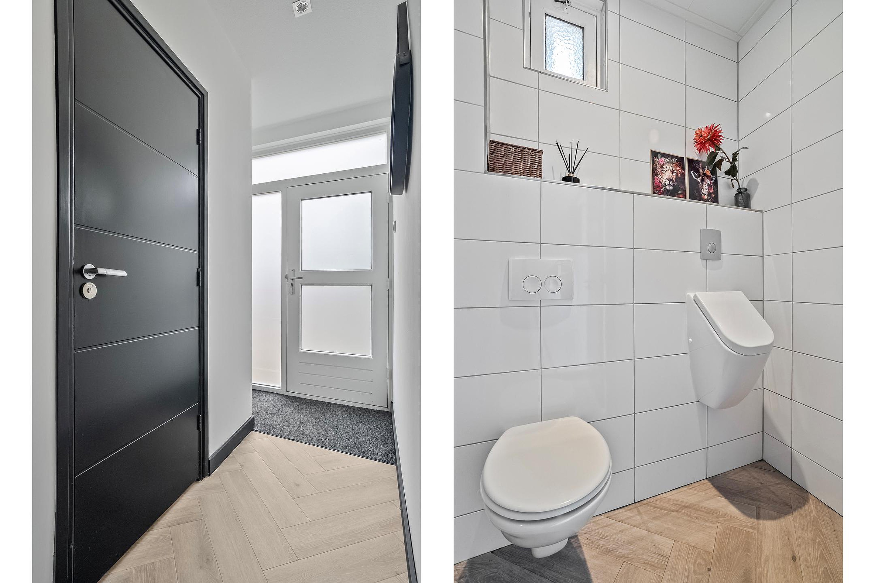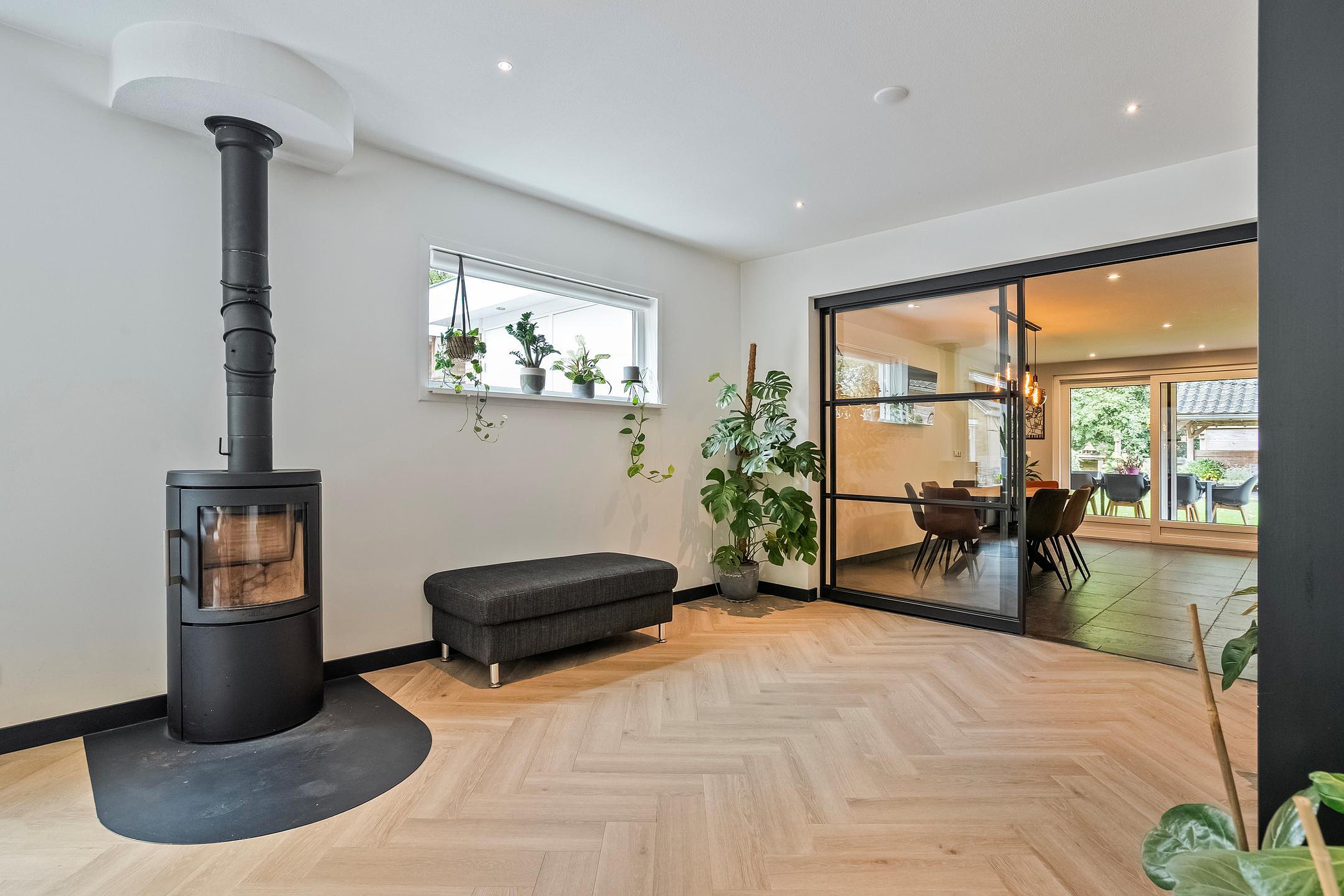 In de aangebouwde garage is slim nagedacht over comfort: hier vind je een extra separaat toilet en de omvormer van de zonnepanelen, zodat je die apparaten netjes uit het zicht hebt. Er is bovendien meer dan genoeg bergruimte voor fietsen, gereedschap of sportspullen.