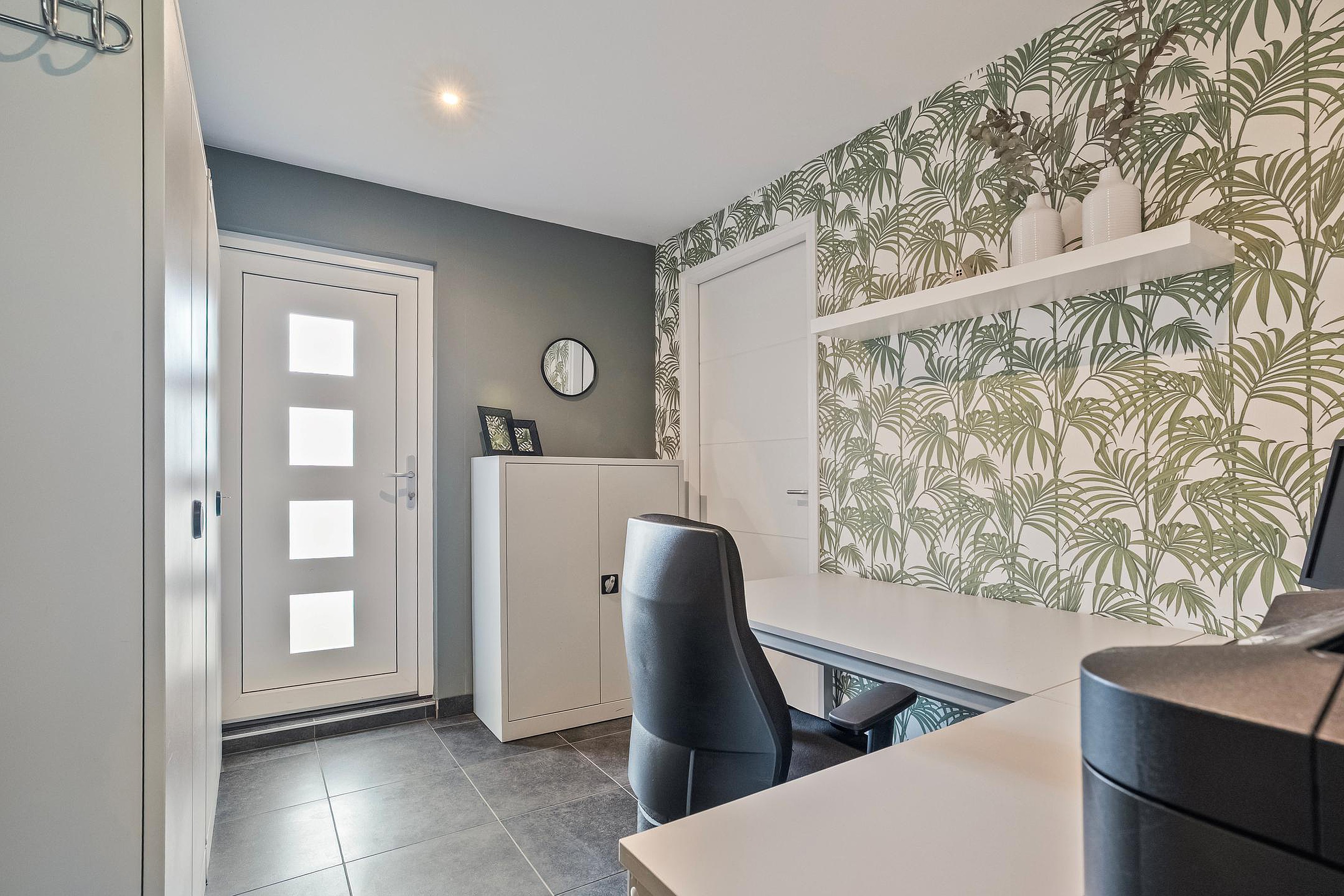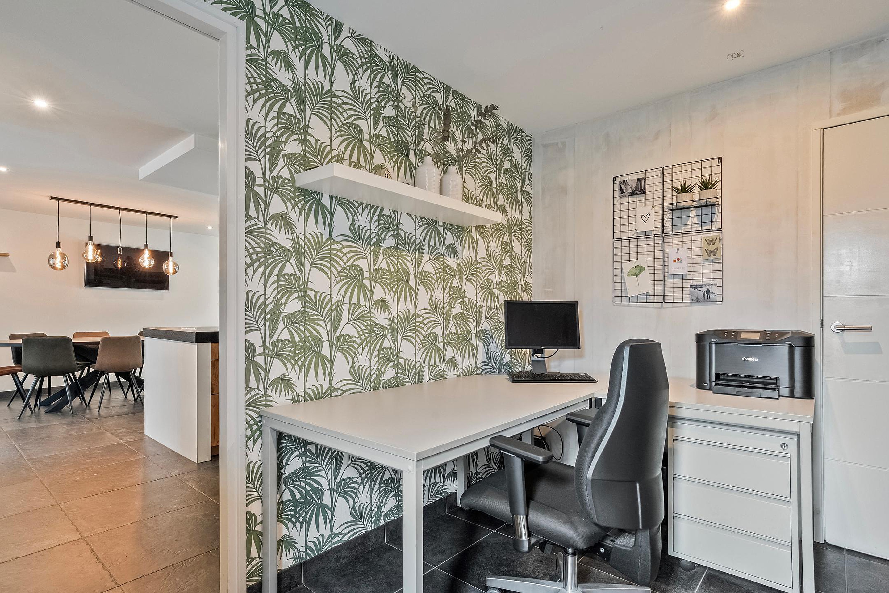 Via de keuken heeft men toegang tot o.a. de kantoor/praktijkruimte, bijkeuken en de aangebouwde garage, eveneens met separaat toilet.
