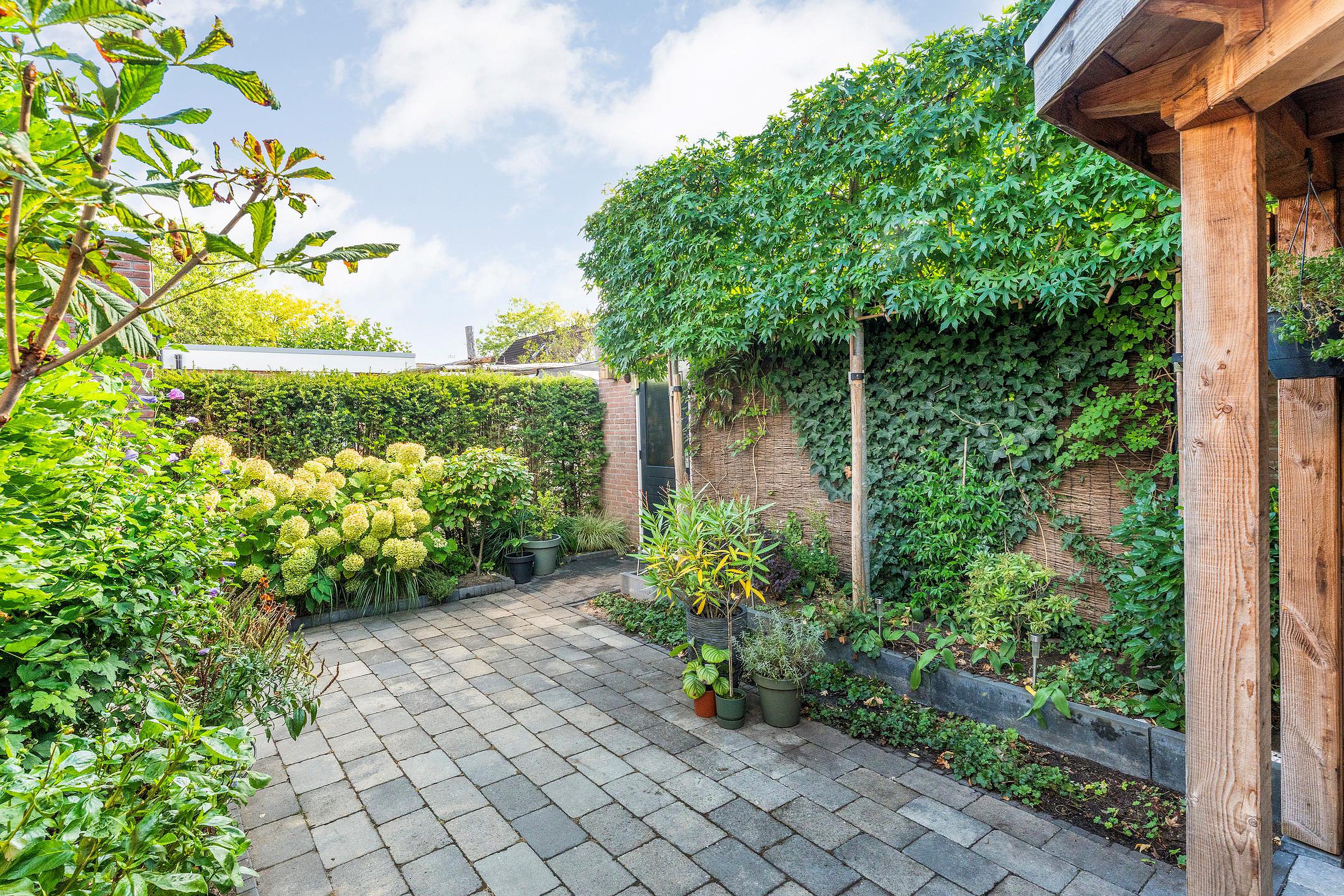De smaakvol aangelegde tuin rondom het huis ligt er zeer verzorgd bij. Met een grote diversiteit aan planten, struiken en bomen waan je je in je eigen paradijsje.