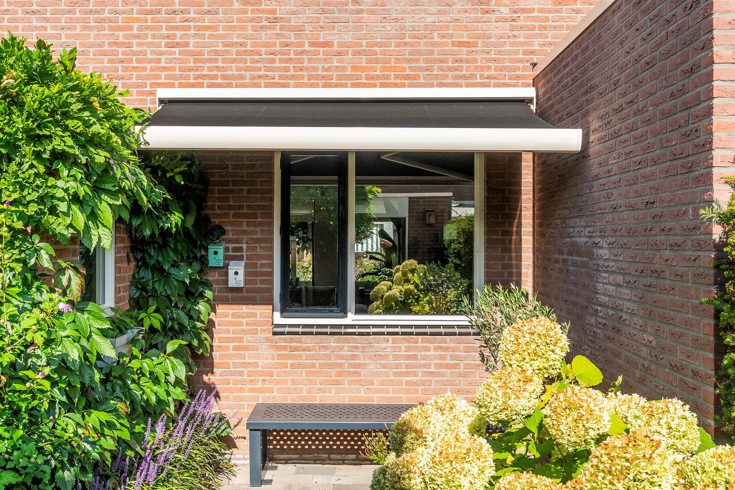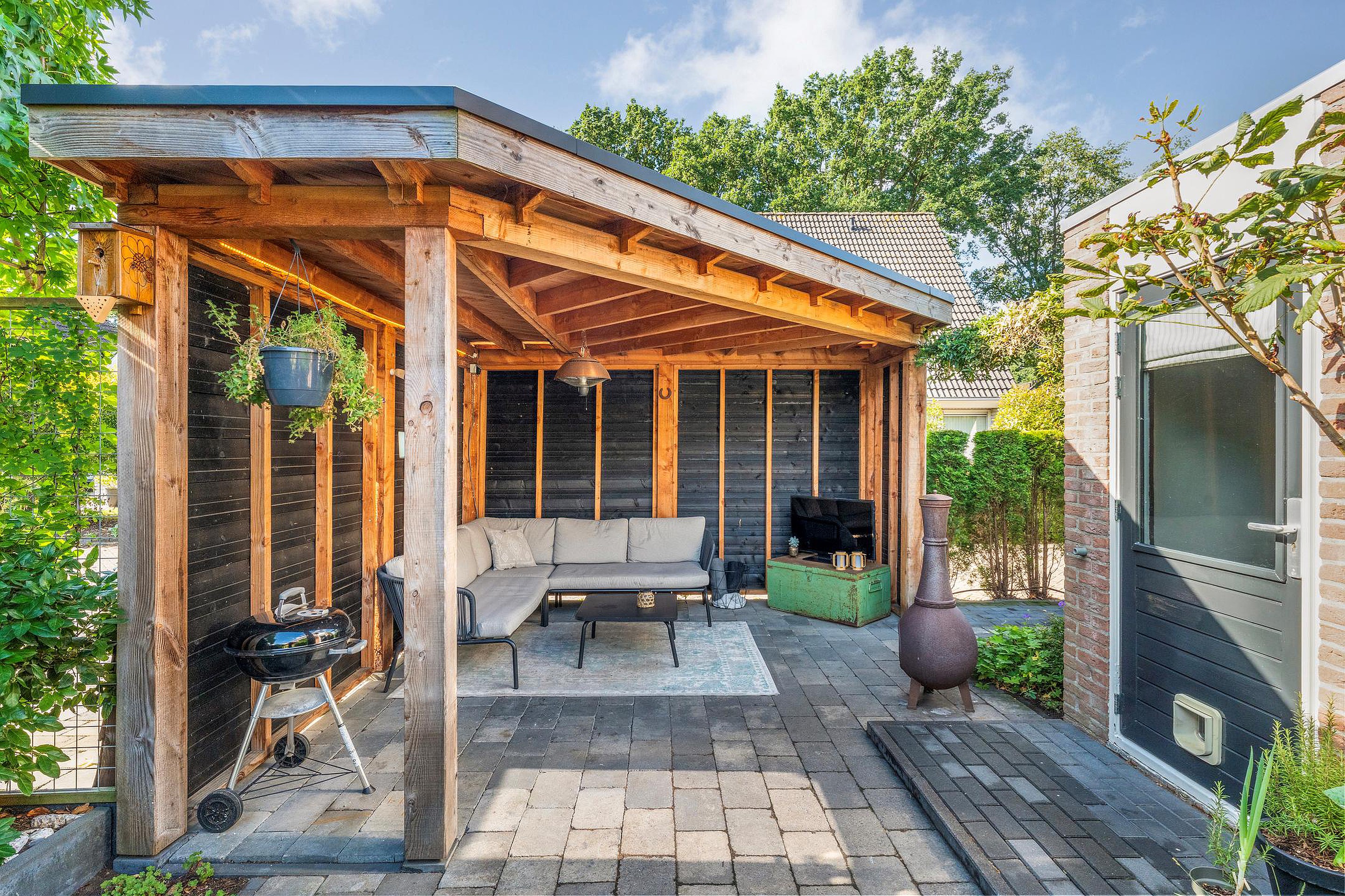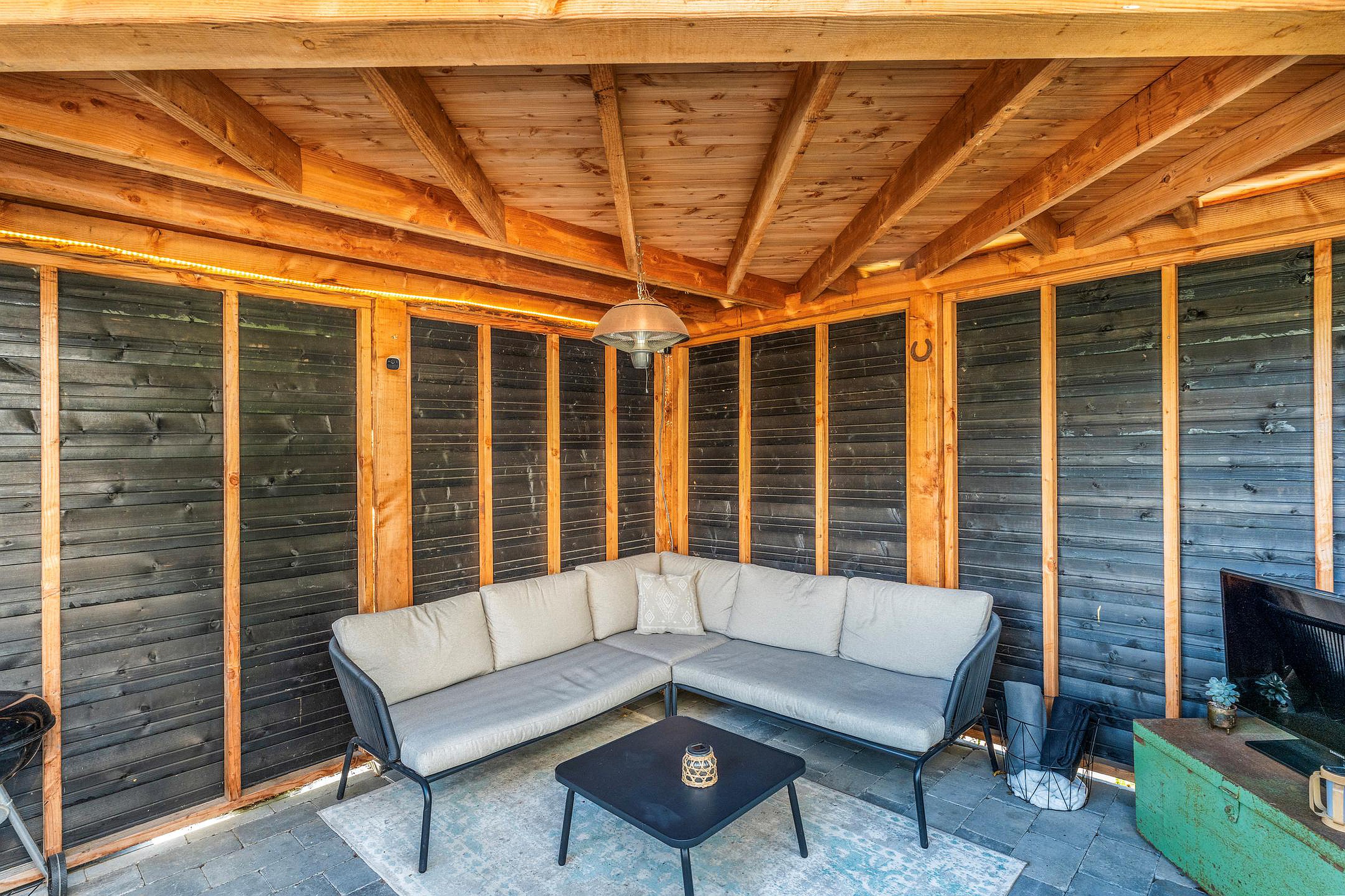 Kies je voor de schaduw onder de overkapping? Voor een zonnig plekje bij het zitje onder het uitvalscherm? Of neem je plaats aan de voorkant van het huis om de laatste zonnestralen van de dag mee te pakken? Waar je ook gaat zitten, hier is altijd een fijn plekje om te genieten.