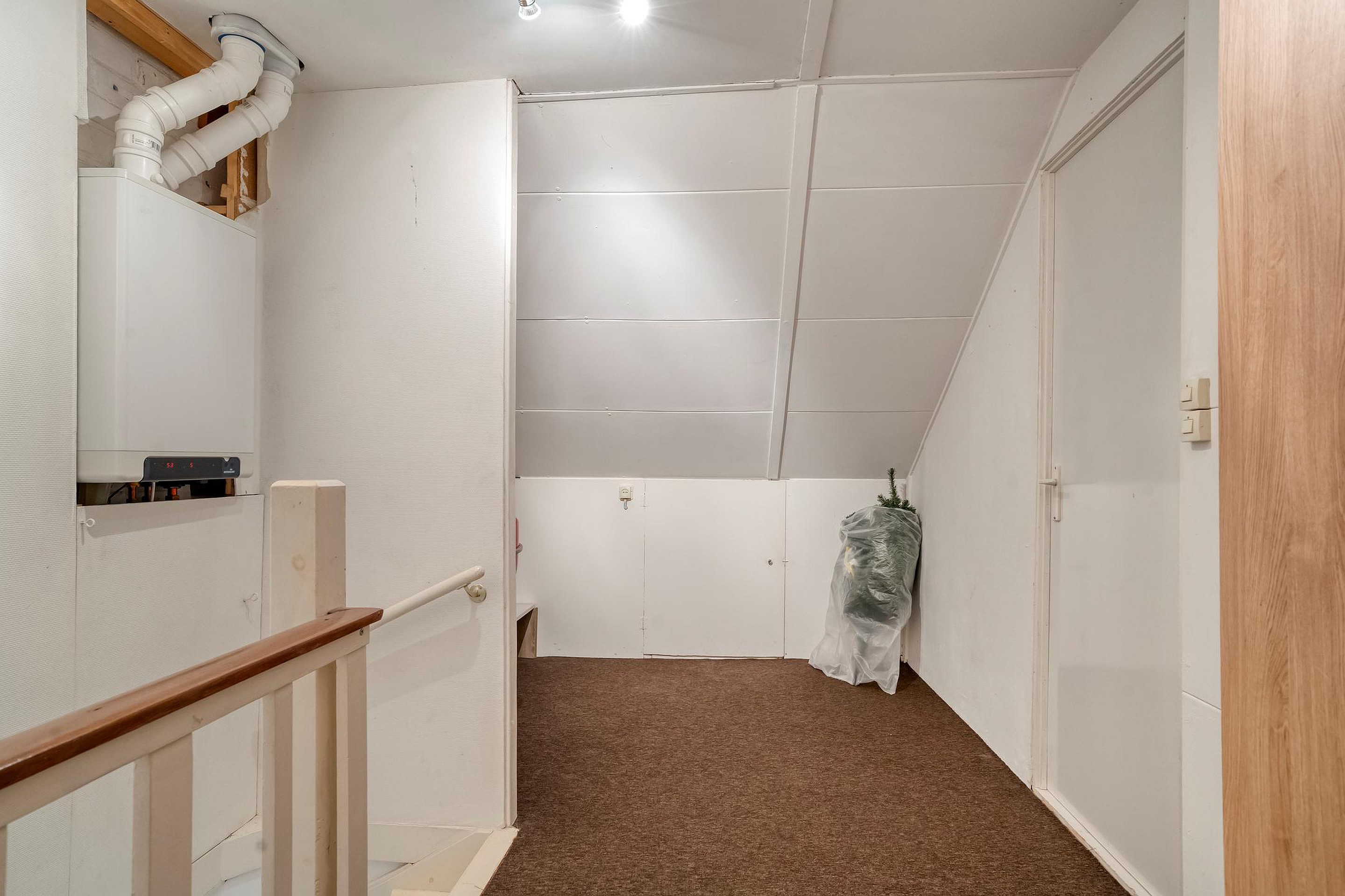 Overloop met c.v. installatie (Intergas HR, 2013) en vierde slaapkamer.