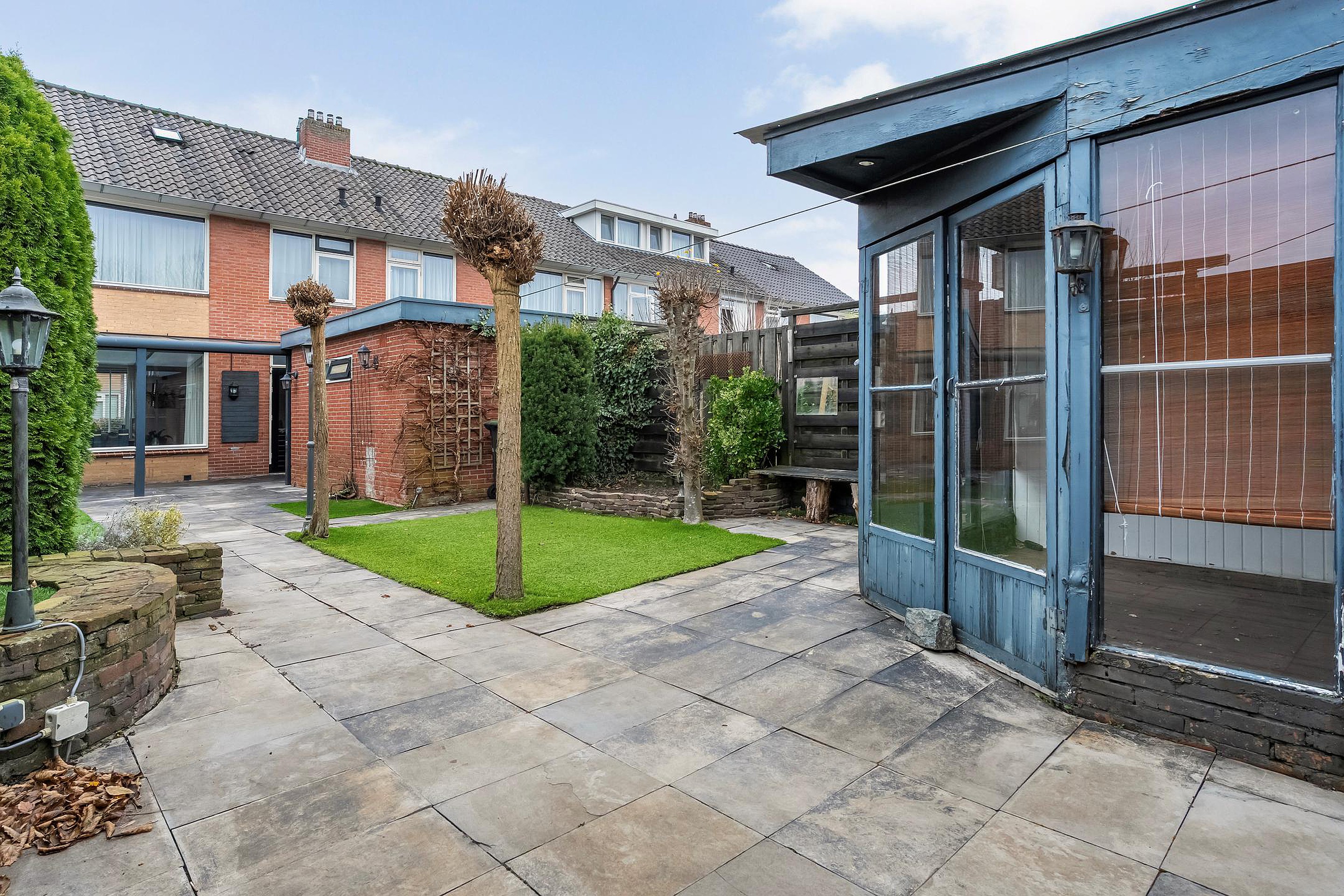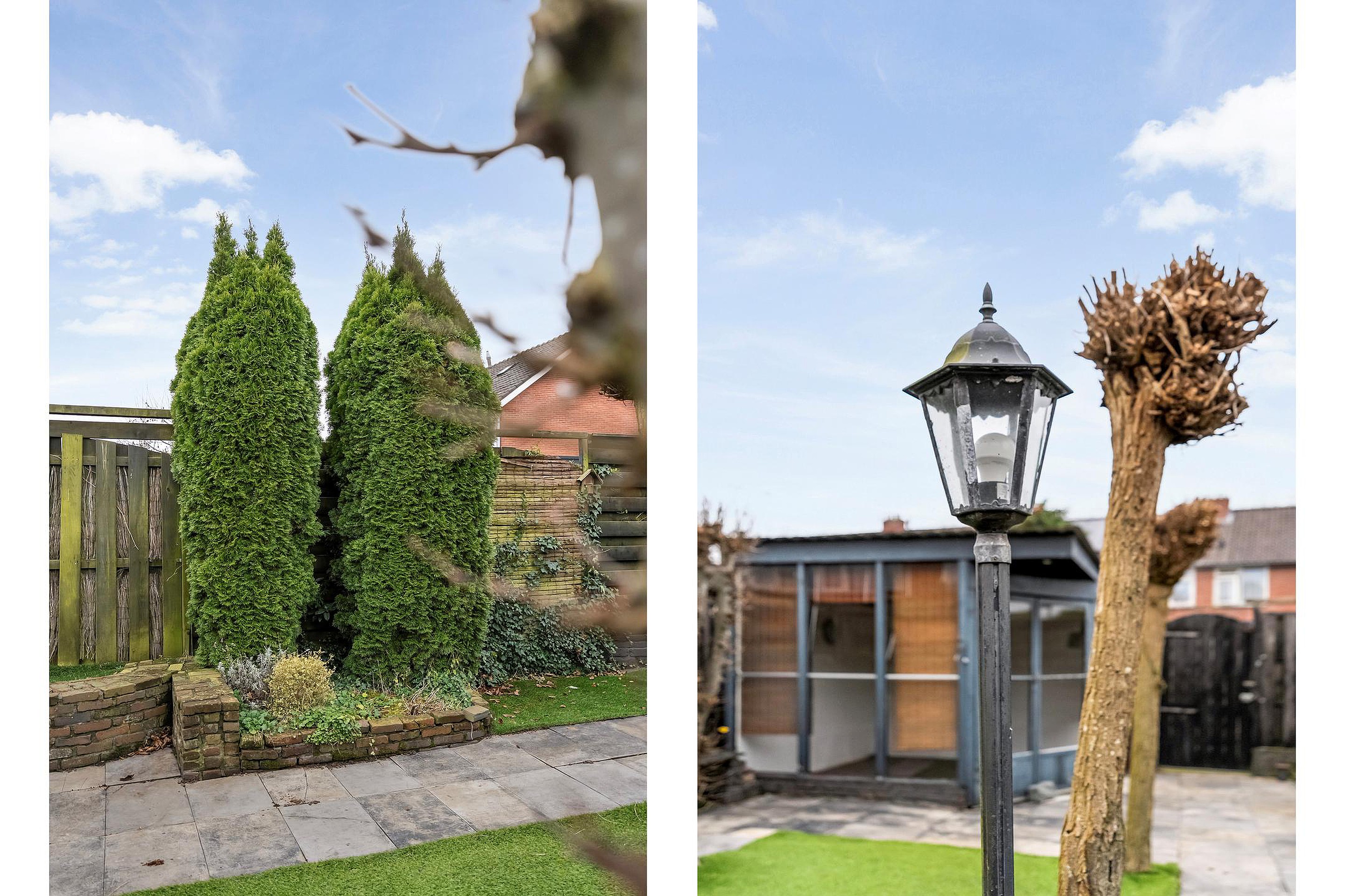 En dan die tuin... Wow! Je verwacht het misschien niet bij een tussenwoning, maar aan de achterzijde ligt een bijzonder diepe en vooral brede tuin. Hier is genoeg plek voor een loungeset, speelplek voor kinderen of een moestuin waar je groentes kweekt uit eigen bodem. En met die mooie houten berging annex prieel is er altijd plek voor je tuinspullen, fietsen of gewoon een gezellig plekje om te borrelen met vrienden. Hoe fijn: via de achterom ben je bovendien zó binnen of buiten, zonder door de woning te hoeven.