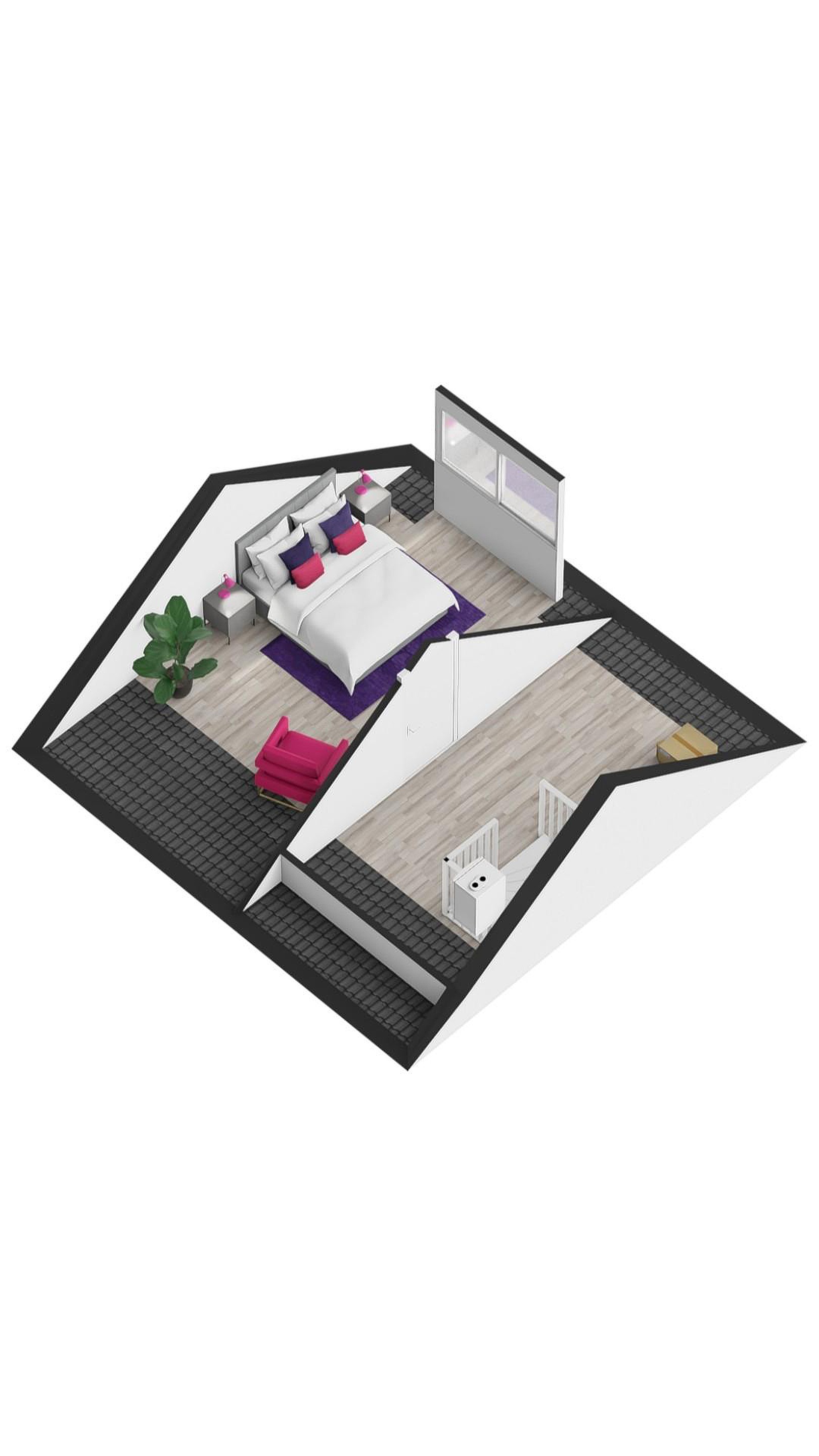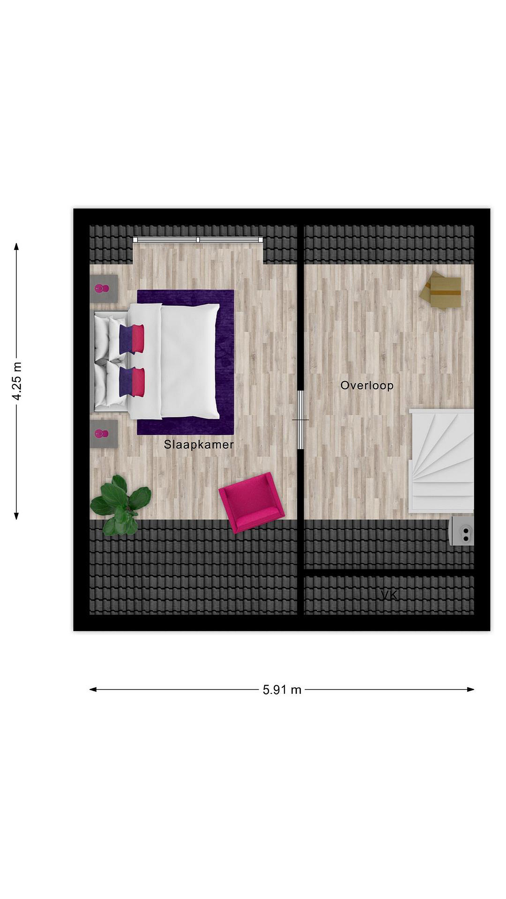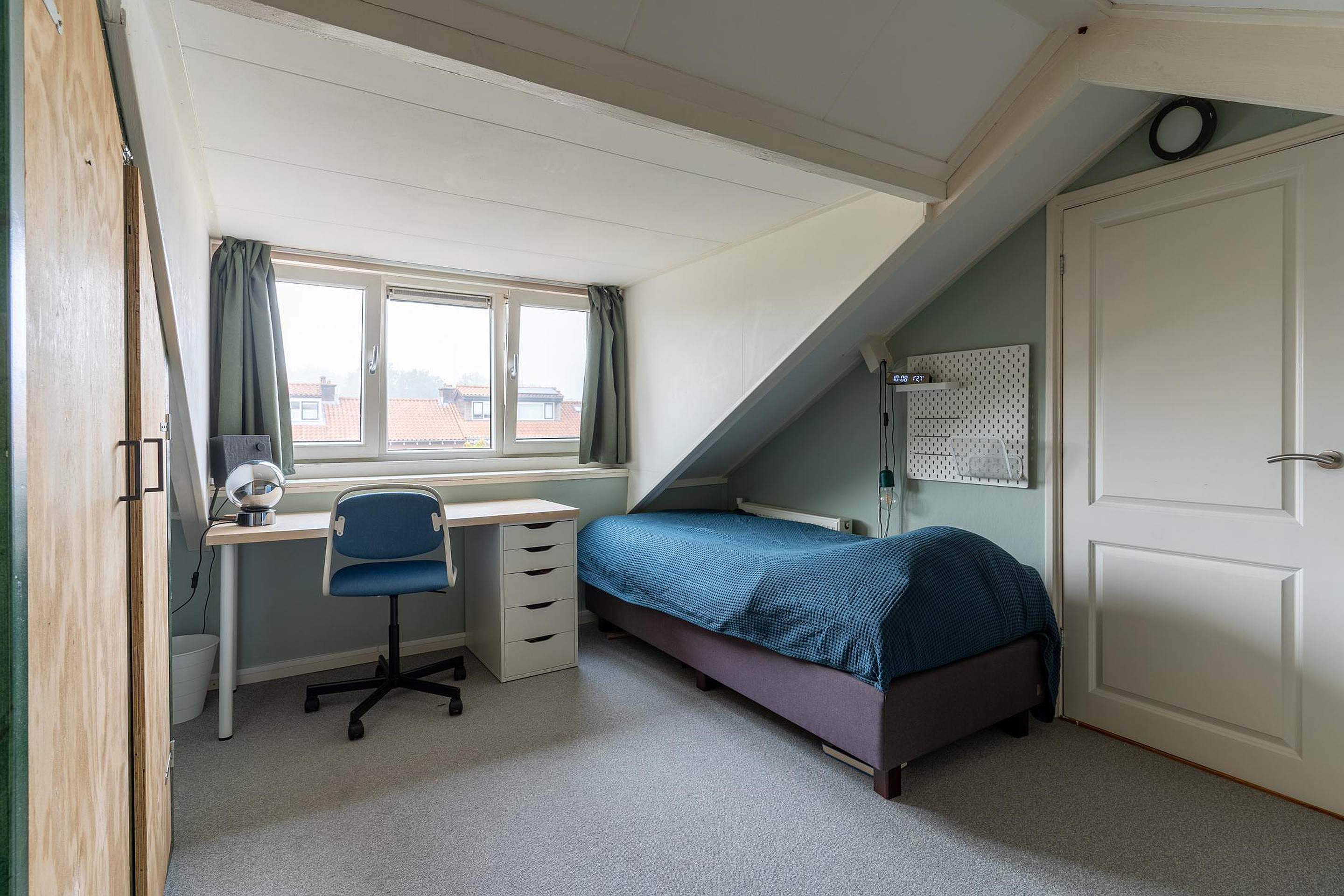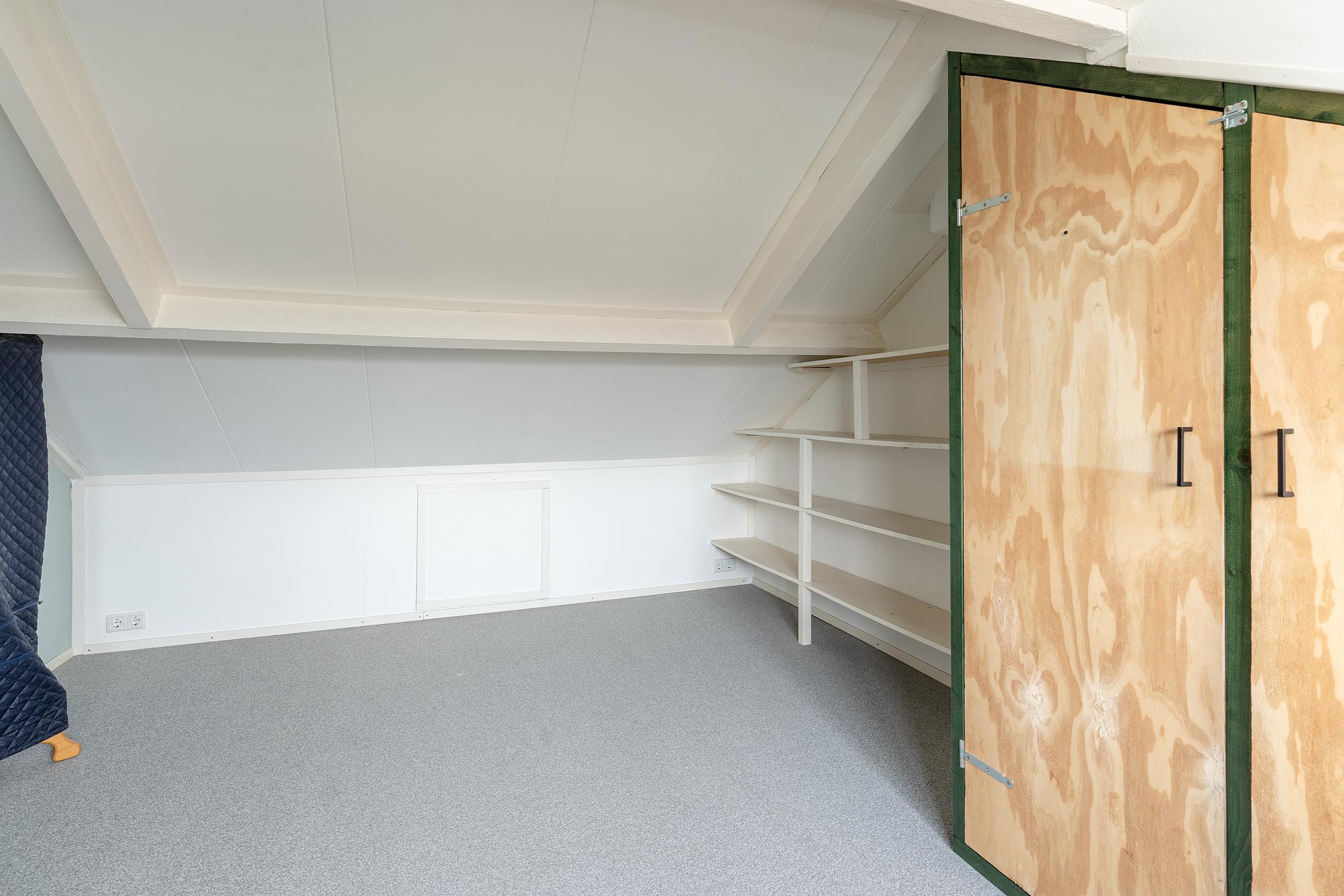 Tweede verdieping via een vaste trap bereikbare voorzolder met opstelplaats van de CV ketel, omvormer zonnepanelen en toegang tot de vierde slaapkamer met dakkapel.